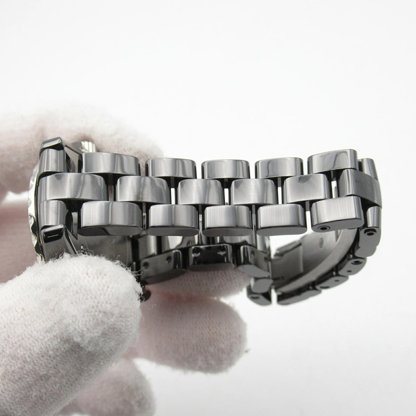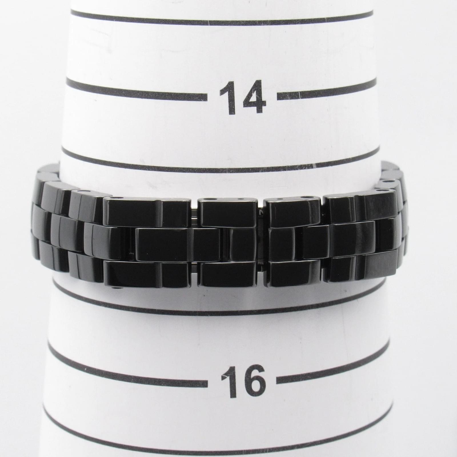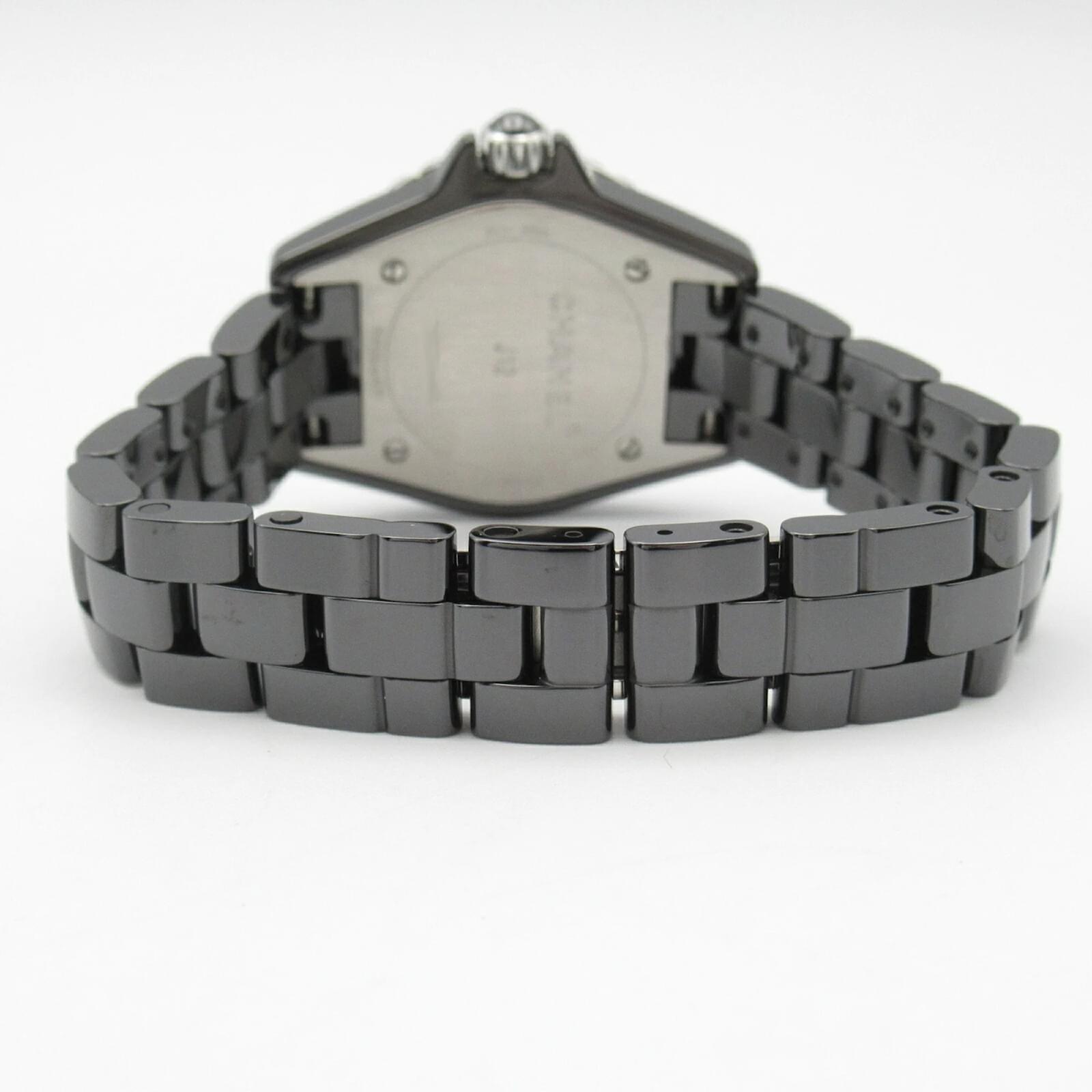 The Chanel J12 8P Diamond Watch is a stylish wristwatch designed for women, featuring a black ceramic case and band. It is powered by a reliable quartz movement and has a case diameter of 28.5mm, suitable for a wrist size of 15cm (5.9 inches). This pre-owned timepiece is in good condition, with insignificant scratches on the bezel and case, and slight scratches on the glass. The watch has been polished and had its battery replaced, ensuring it is in working order. Included with the watch is a guarantee card. For a detailed view of its condition, potential buyers are encouraged to refer to the provided images.