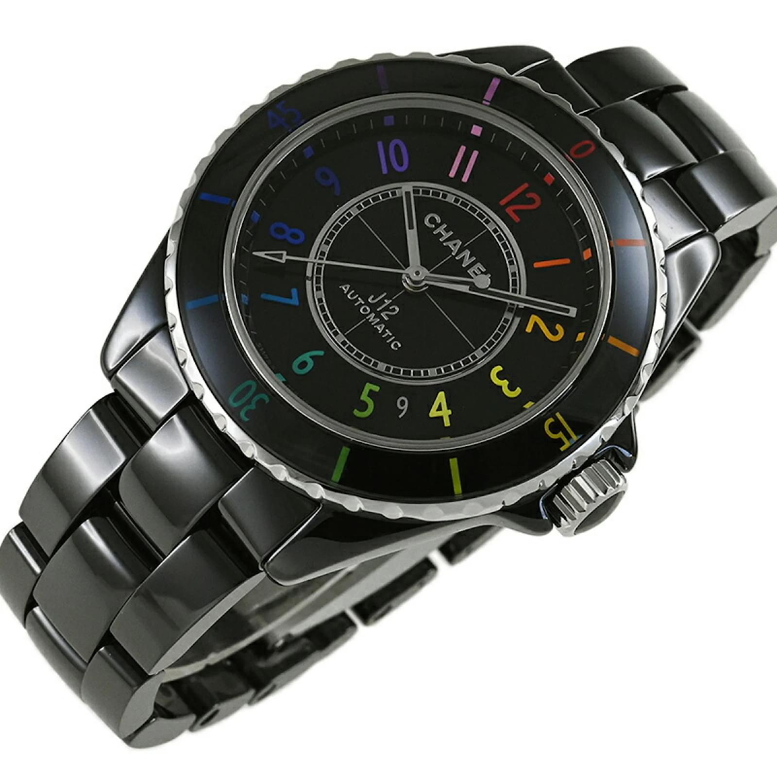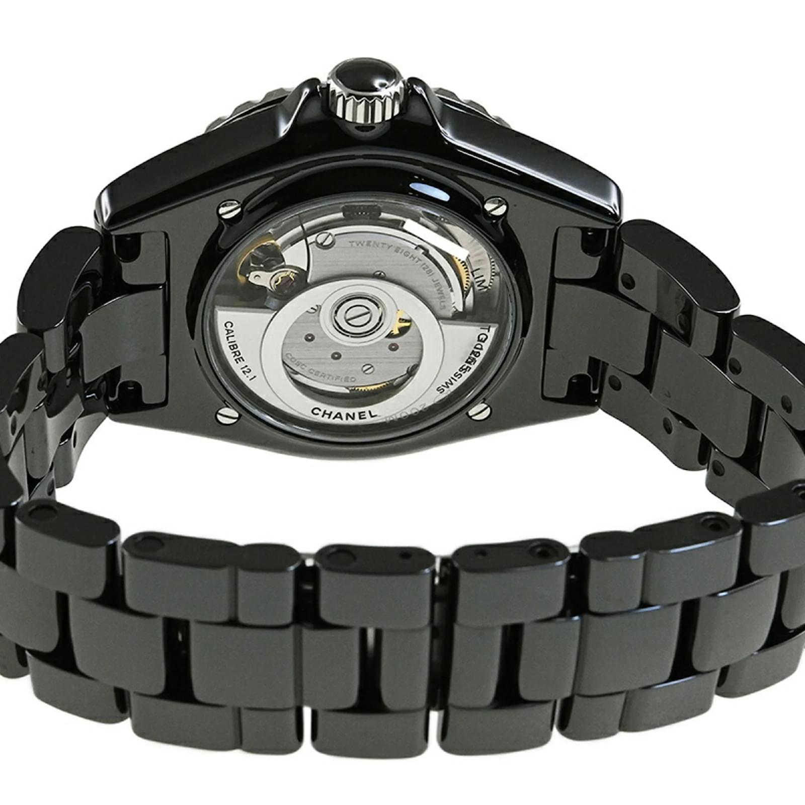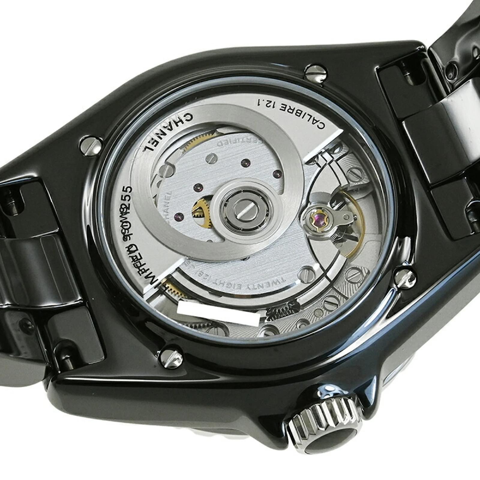 The Chanel J12 Black Electro Caliber 12.1 is a wristwatch that features a sleek black ceramic case and band. With a case diameter of 38mm and designed for a wrist size of 17.5cm (6.88 inches), this watch combines elegance with functionality. It operates on a self-winding automatic movement, ensuring reliable timekeeping. \n\nThis particular model is a world limited edition, numbered 1255 H7122, and is classified as used but in good condition, showing slight traces of wear such as minor scratches on the bezel and case. The dial and glass are in excellent condition with insignificant scratches. \n\nIncluded with the watch are a booklet, certificate, and both inner and outer boxes. Potential buyers are encouraged to review the provided images for a detailed view of the watch’s condition and included accessories.
