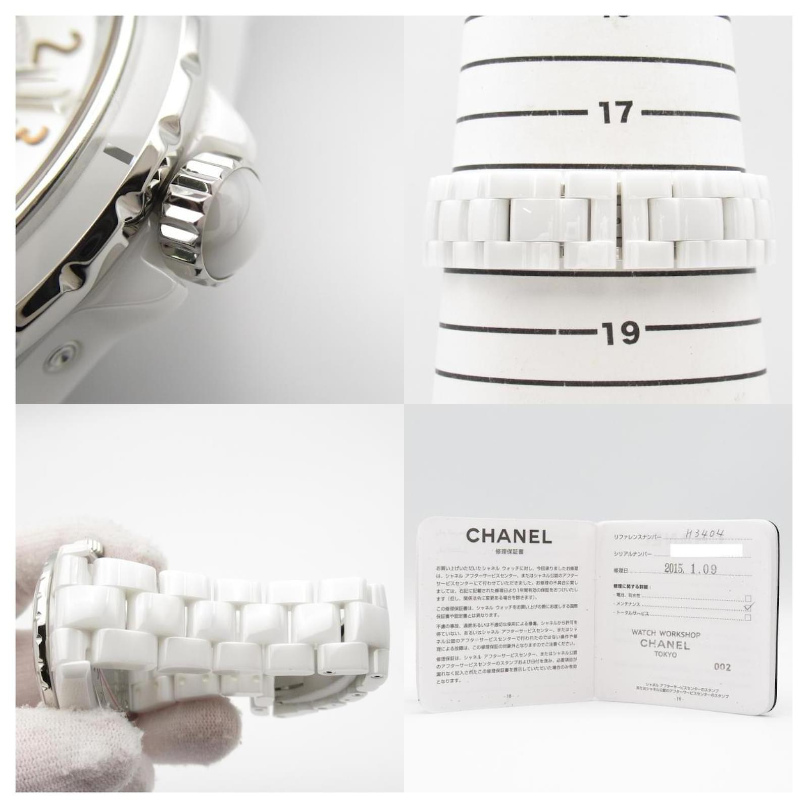 – General information – Brand : Chanel Item name : Chanel J12 Ceramic Automatic Watch H3404 Model number : H3404 – Design – Type : Automatic Material : Ceramic Color : Silver Gender : Male – Size – Size : Arm length : 18.0 Dial diameter : 3.9 Movement : Automatic – Inventory – Serial Number : null SKU : 120230007560000A0025474276 – Included Items – Accessories : null *Before purchasing, please refer to the images of the accessories included with the item. – Condition – Condition : Very Good Condition Rank : Used A Used condition with some scratches and stains. Condition Notice : Before purchasing, please refer to the images for the exact condition of the item.