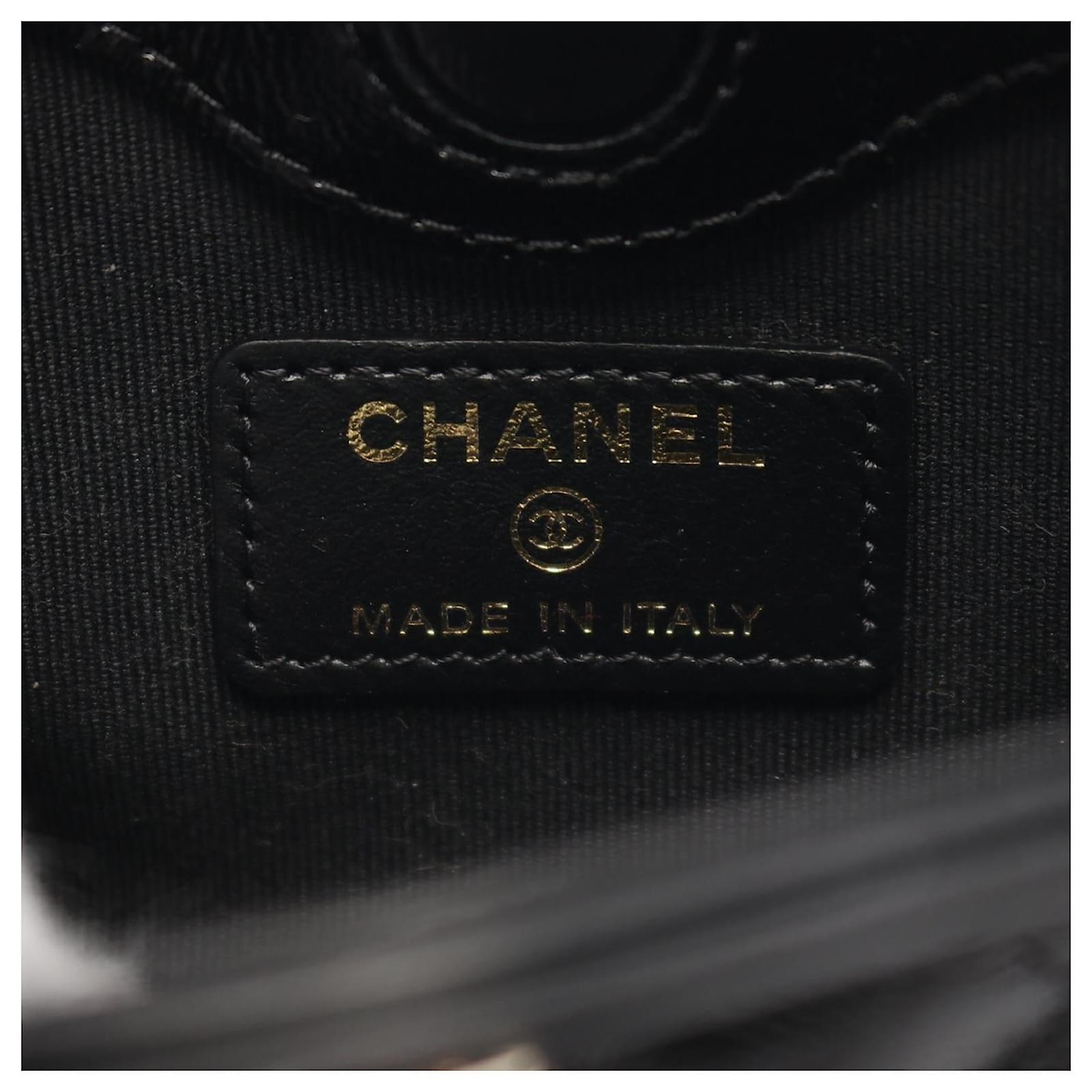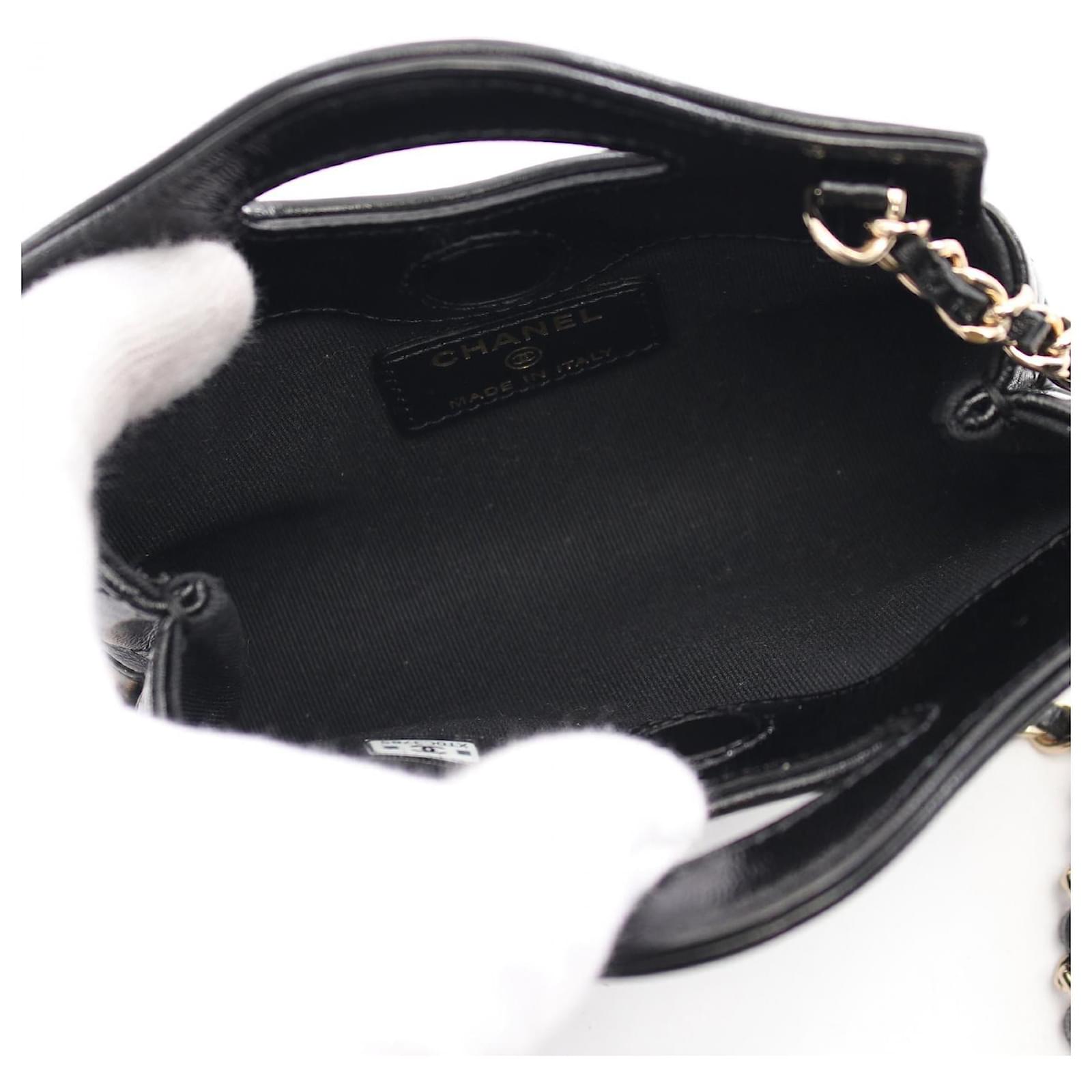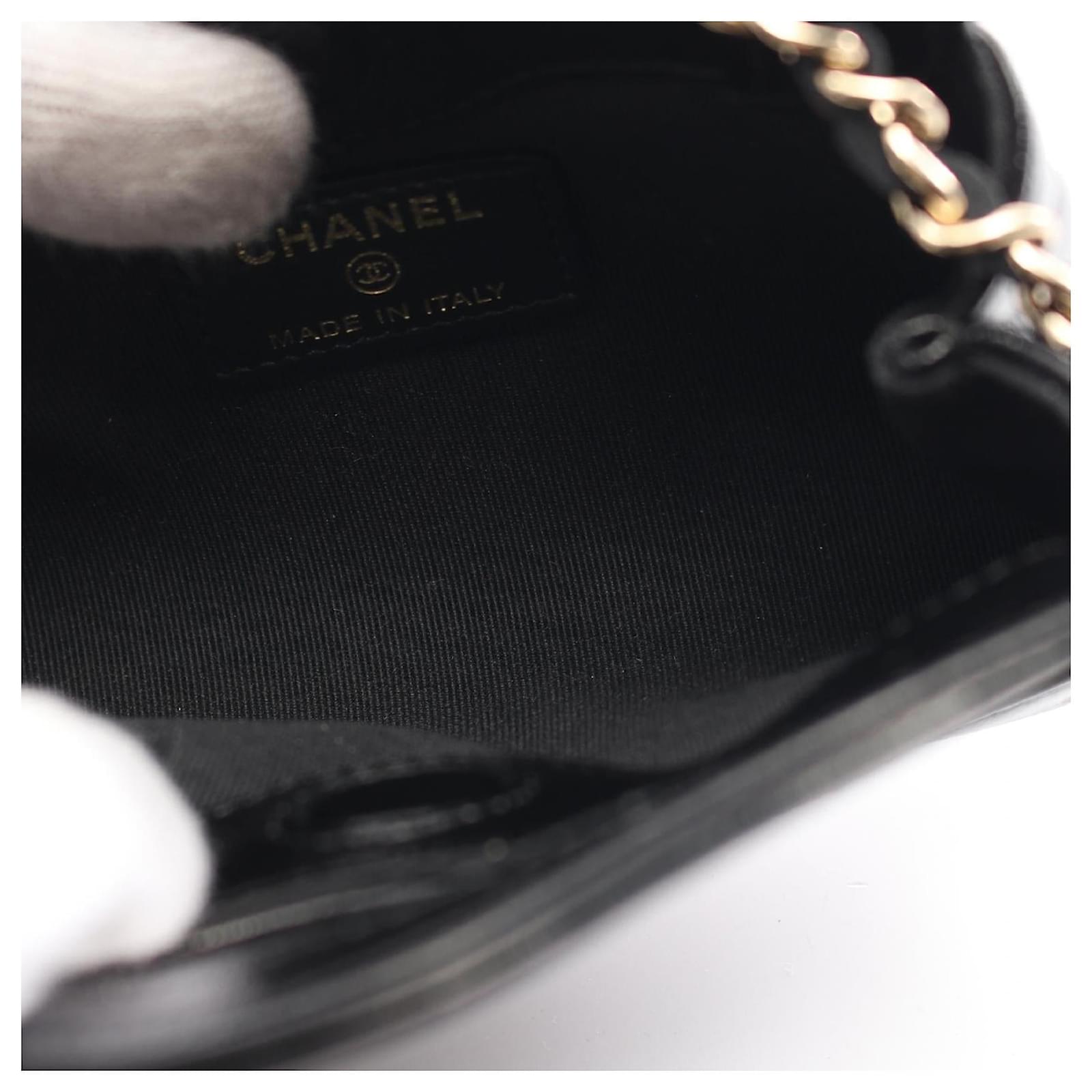 Brand Name: Chanel; Condition: Very Good; Category: Bag; SubCategory: Clutch Bag; Product Name: Chanel Leather Chain Clutch Shoulder Bag; Model Number: AP3875; Style: Ladies; Accessories: Dust Bag; Height (cm): 8.5; Width (cm): 3.5; Length (cm): 12.5; Color: Black; Material: Leather; Origin: France; Measurments: width: 35 mm length: 125 mm height: 85 mm \n Product Id: 523046 \n