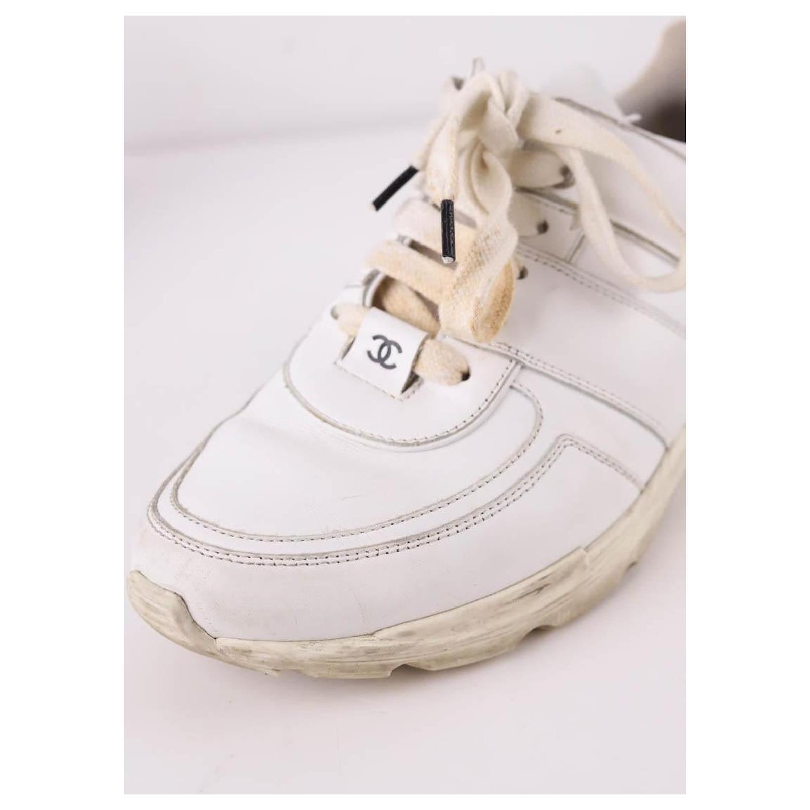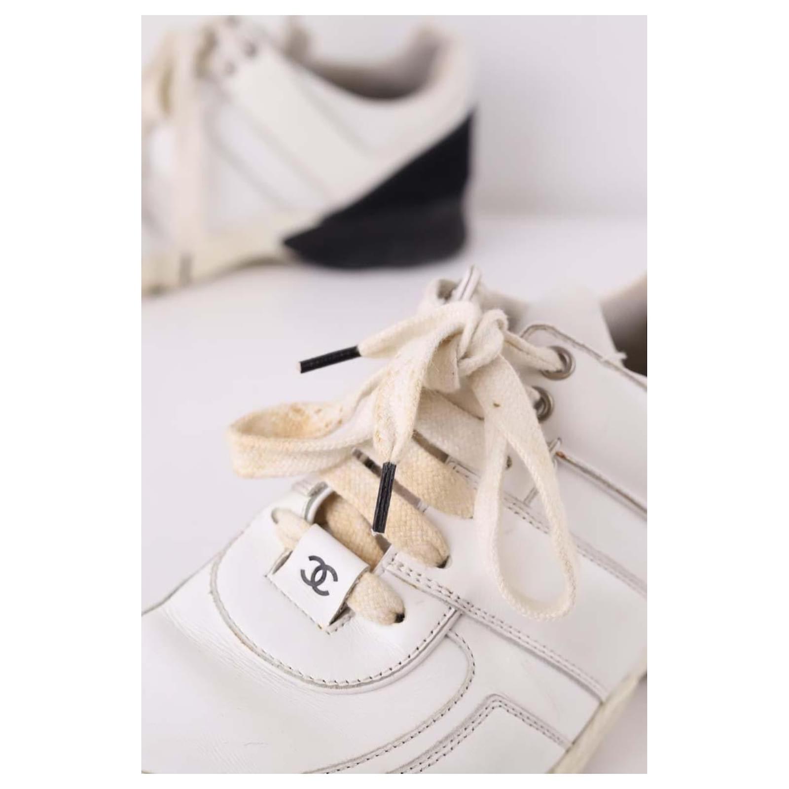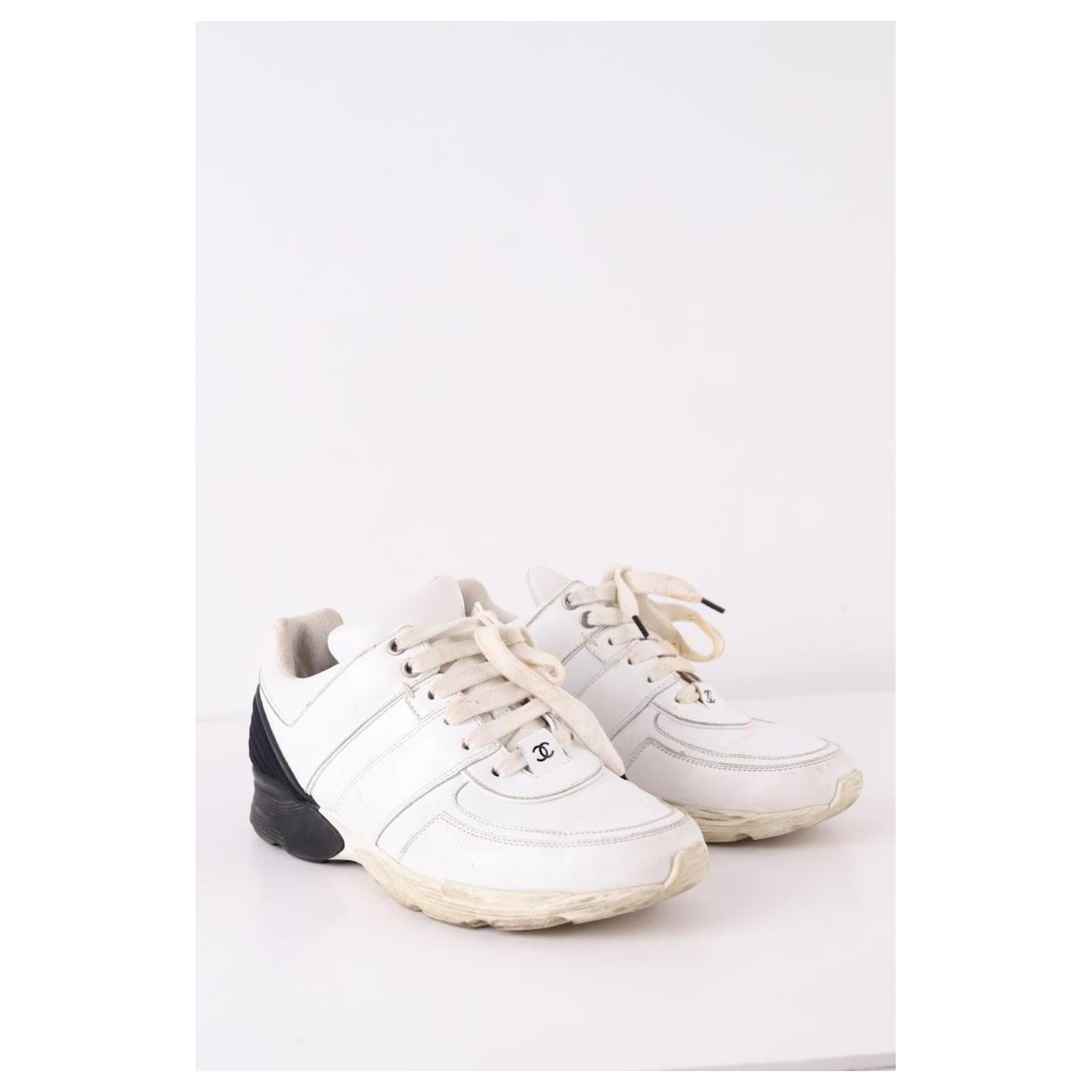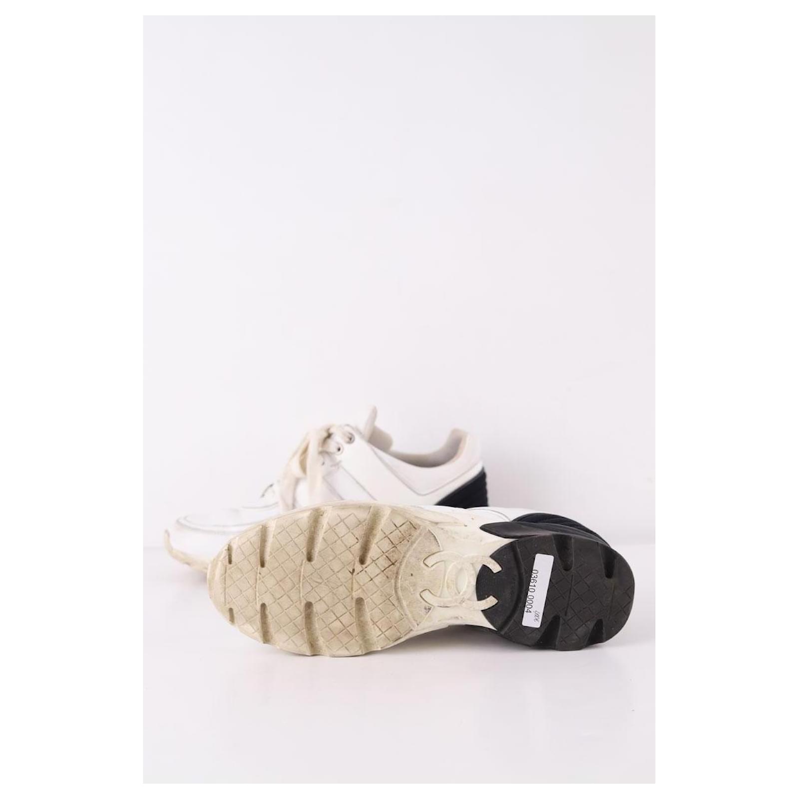 Second-hand white Chanel sneakers. Main material leather. Size 38. Label size: 38 1/2. Women’s collection. Good condition. Signs of wear. Reference: 036100004.