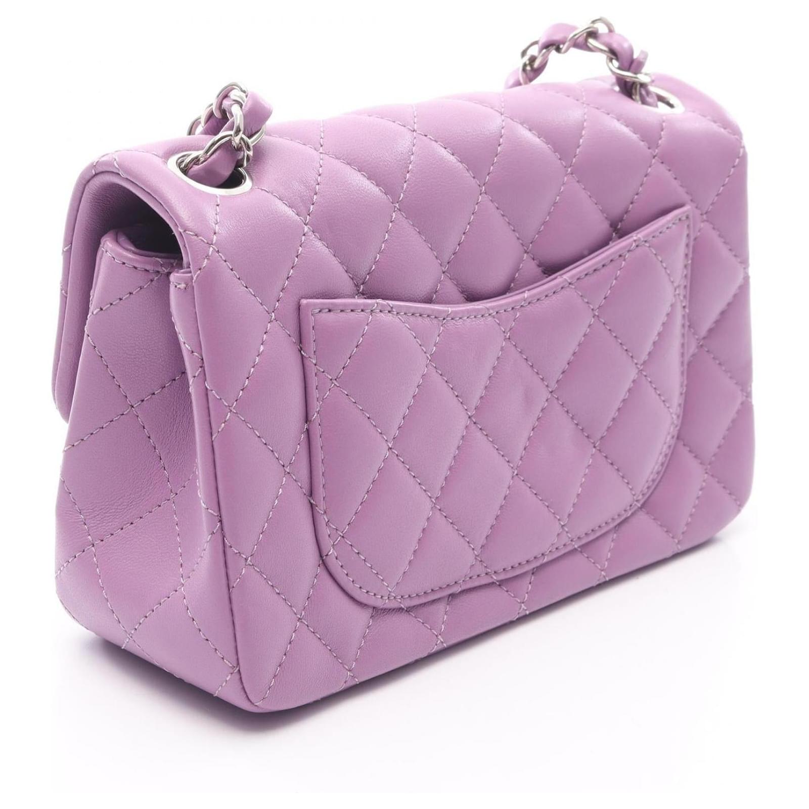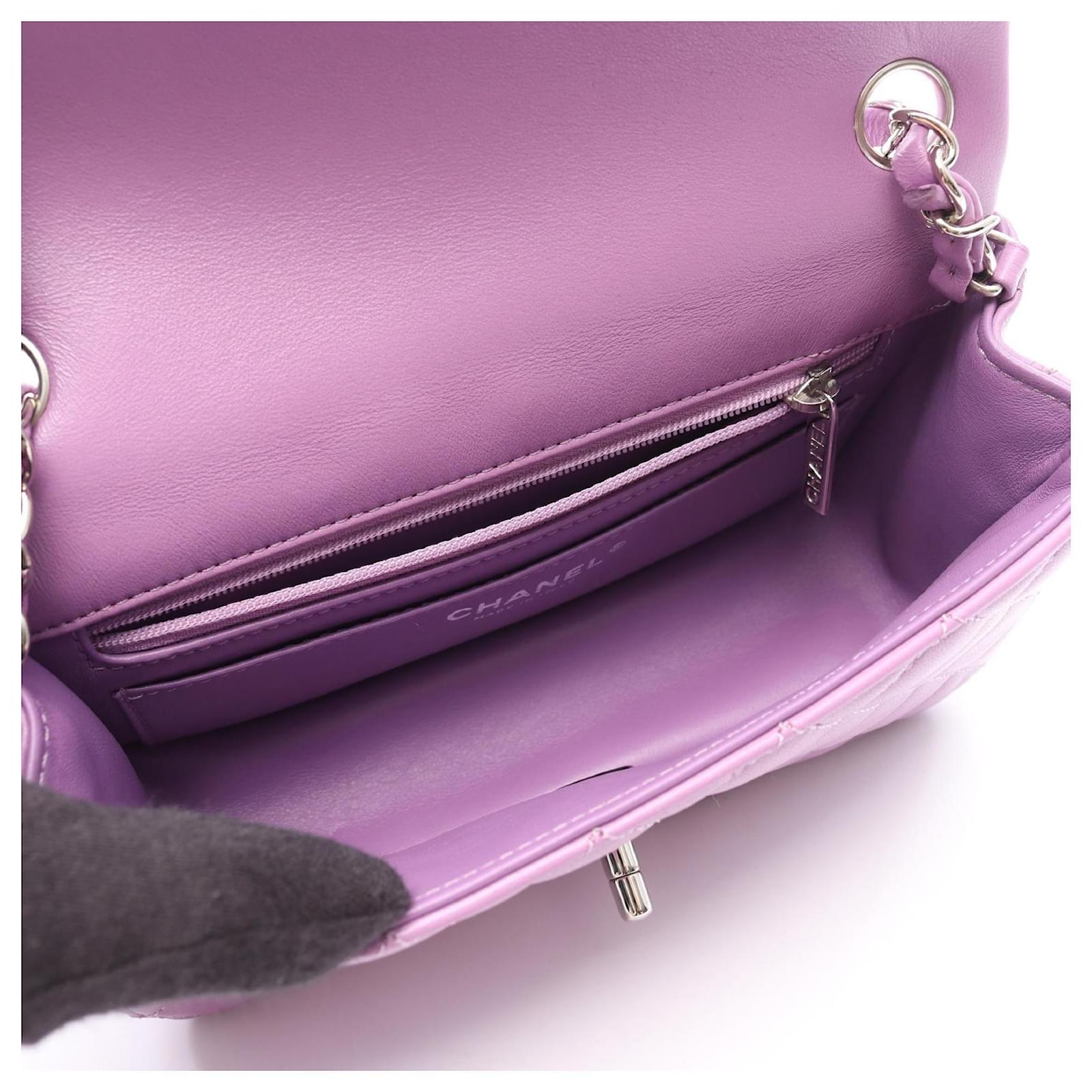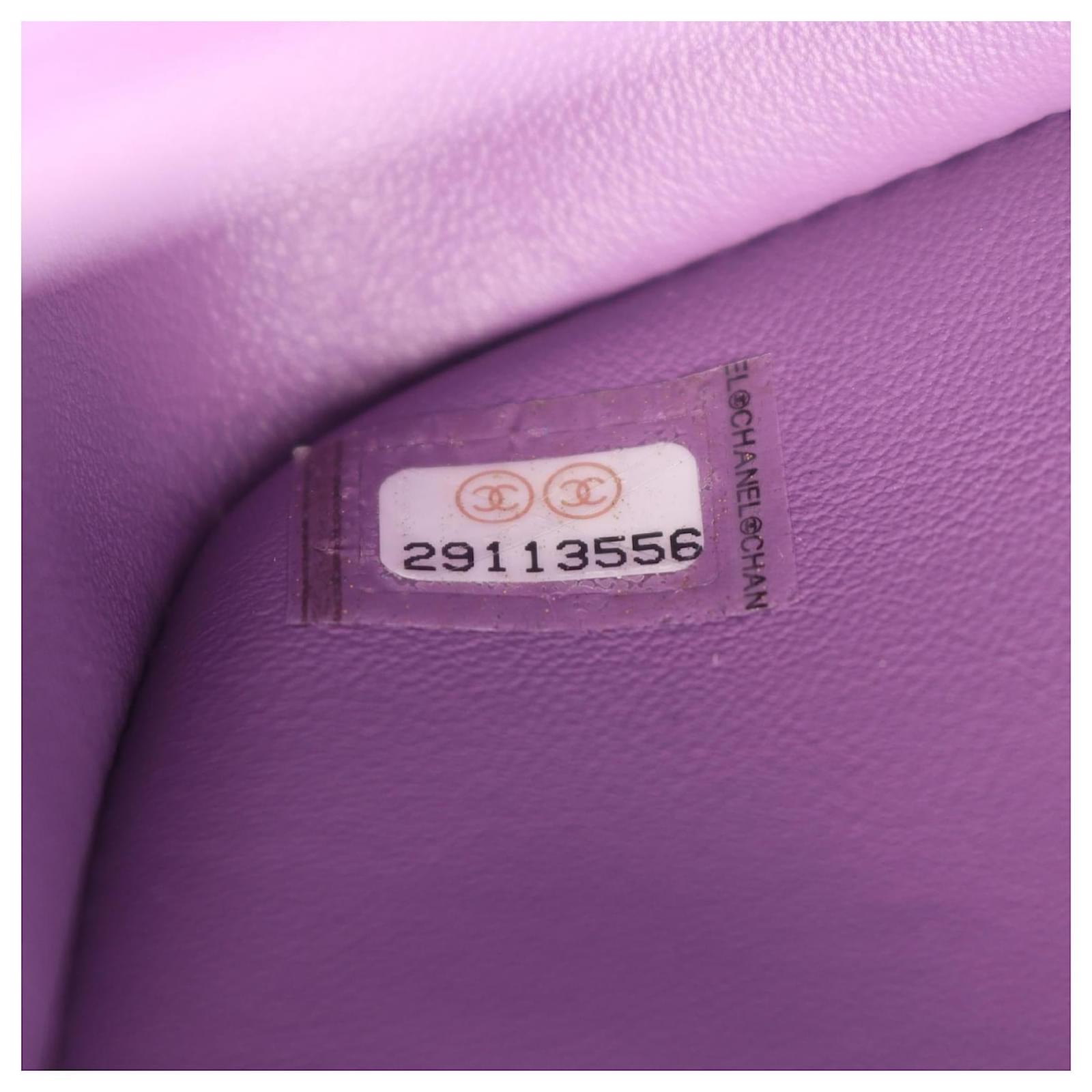 Brand Name: Chanel; Condition: Very Good; Category: Bag; SubCategory: Crossbody Bag; Product Name: Chanel Mini Matelassé 20 Shoulder Bag Purple Lambskin; Model Number: A69900; Style: Ladies; Accessories: Authenticity Card; Height (cm): 12; Width (cm): 6.5; Length (cm): 20; Color: Purple; Material: Lambskin; Origin: France; Measurments: width: 65 mm length: 200 mm height: 120 mm \n Product Id: 524659 \n