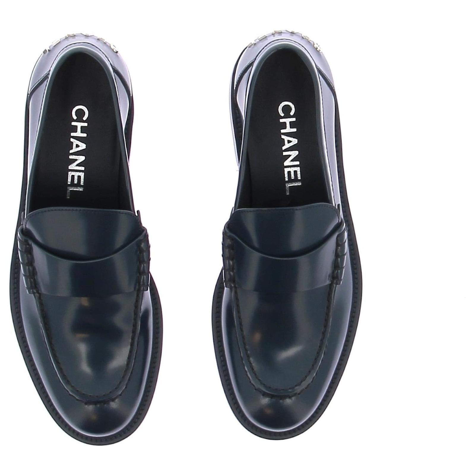 Mocassins en cuir bleu pétrole – CHANEL\nPointure : 38 EU\nÉtat : Jamais porté \nPackaging : Dust Bag