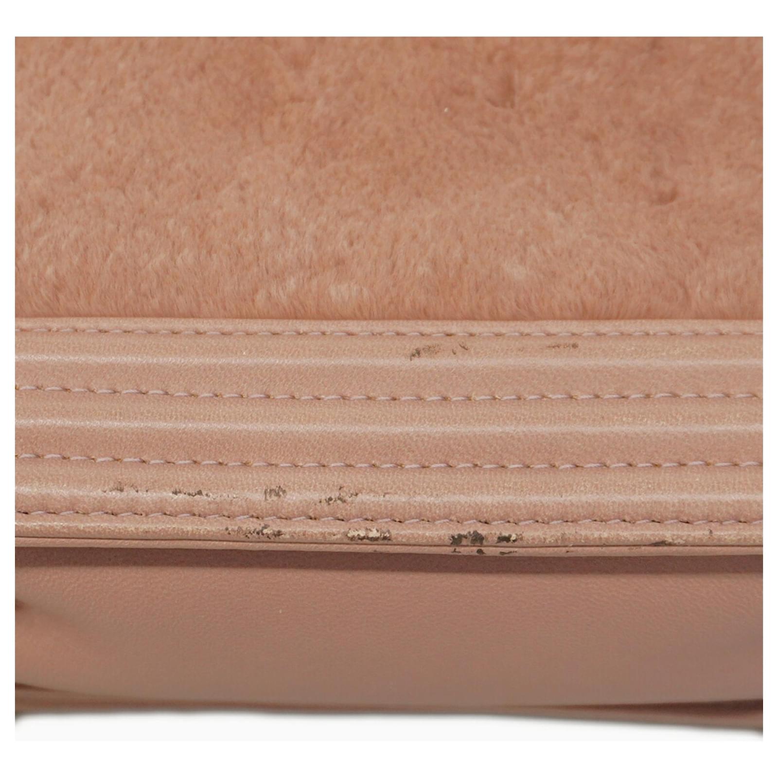 This Chanel shoulder bag features a stylish design in pink fur, complemented by silver hardware. Measuring 13cm in height, 20cm in width, and 7cm in depth, it is a compact accessory suitable for various occasions. The bag is classified as used but is in good condition, showing slight traces of use, including minor scratches and dirt. It comes with a guarantee card, and potential buyers are encouraged to review the images for a detailed view of its condition and included accessories.