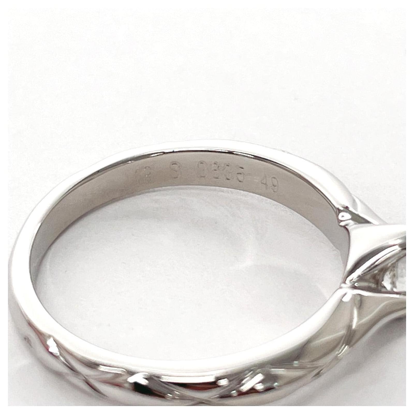 – General information -\nBrand : Chanel\nItem name : Chanel Platinum Diamond Ring\nModel number :\n- Design -\nType : Ring\nMaterial : Metal\nColor : Silver\nGender : Female\n- Size -\nSize :\nWeight : 4.5\nSize : 8.5\nMain stone material : Diamond\n- Inventory -\nSerial Number : null\nSKU : 120240002376000A0025486656\n- Included Items -\nAccessories : null\n*Before purchasing, please refer to the images of the accessories included with the item.\n- Condition -\nCondition : Great Condition\nRank : Used A Good used condition with slight scratches and stains.\nCondition Notice : Before purchasing, please refer to the images for the exact condition of the item.