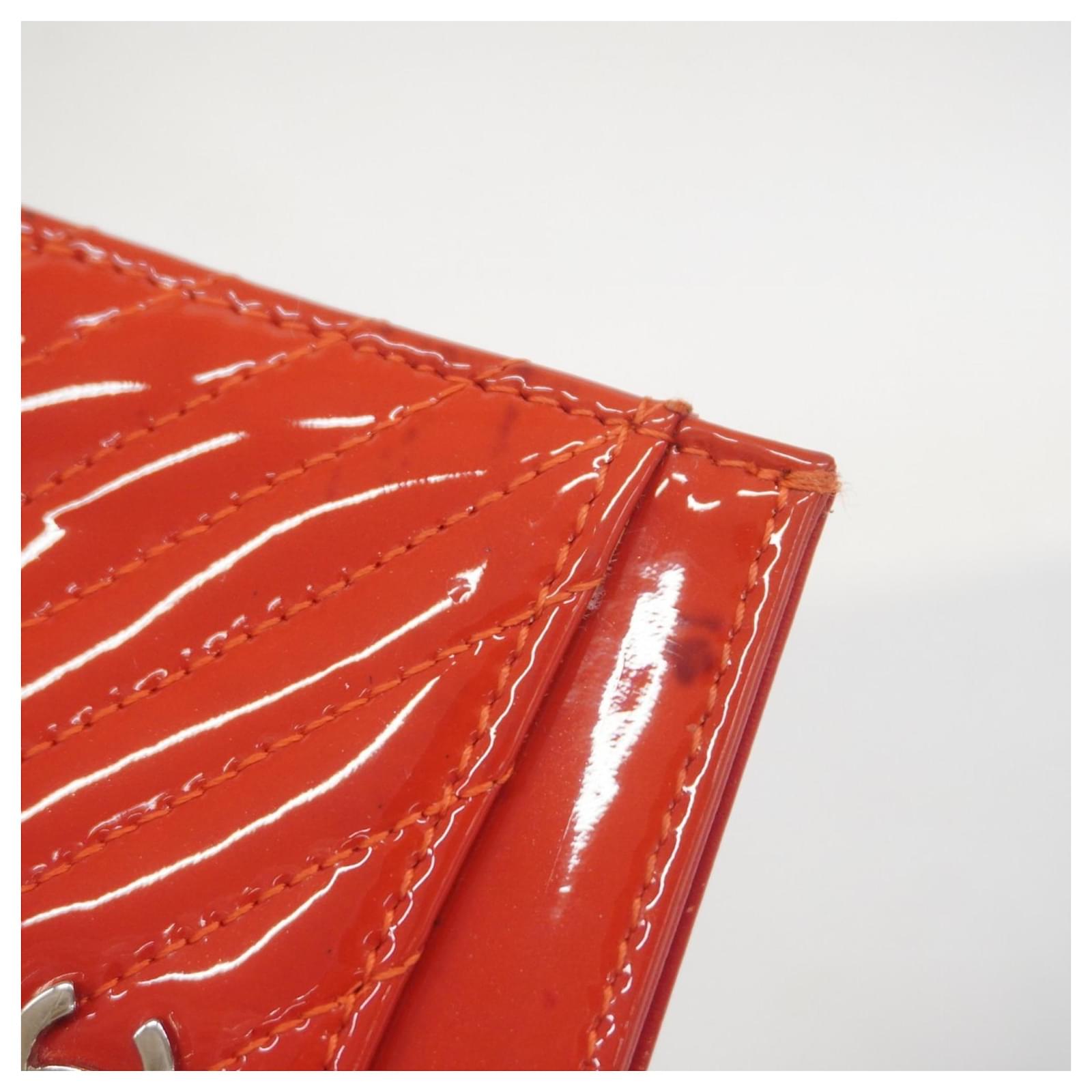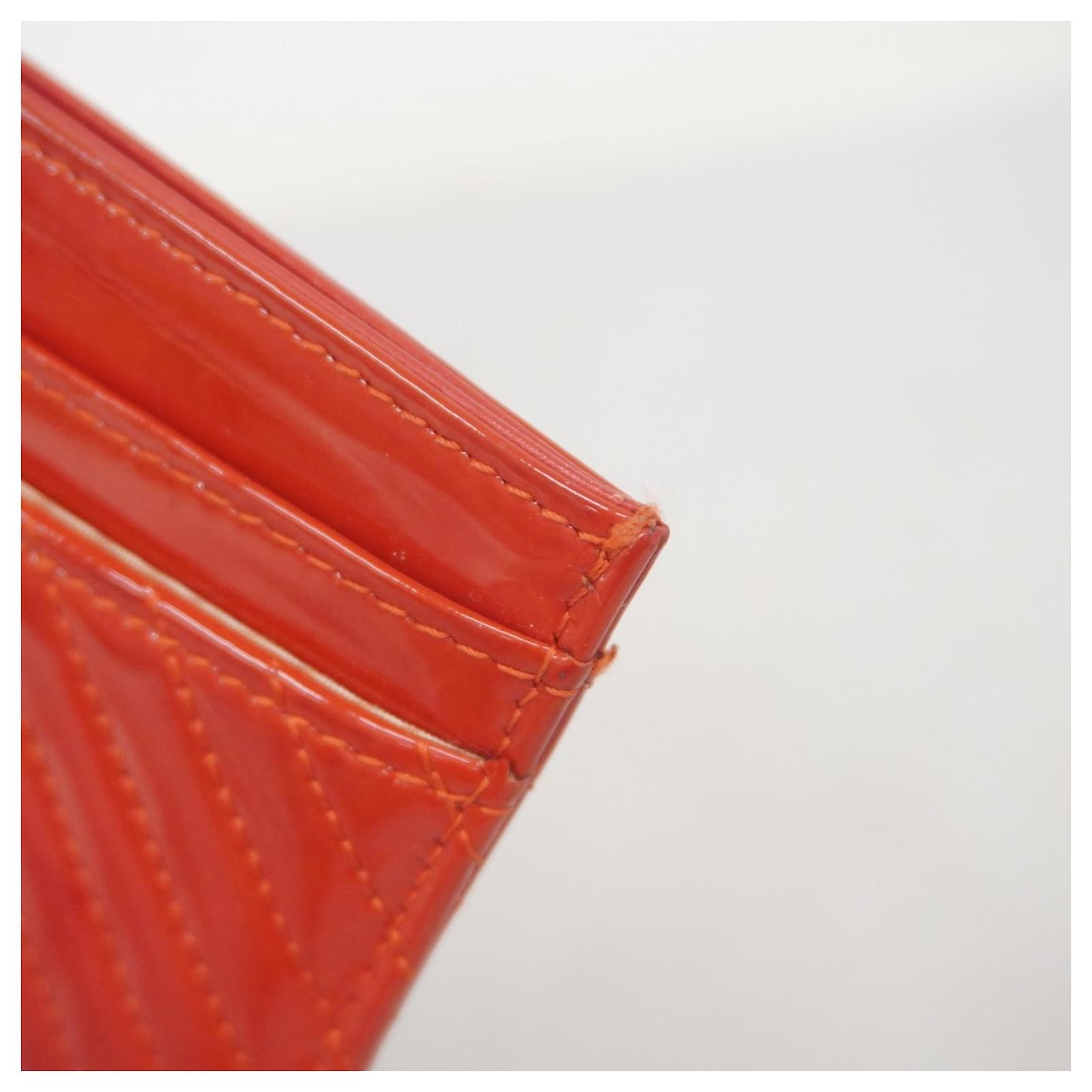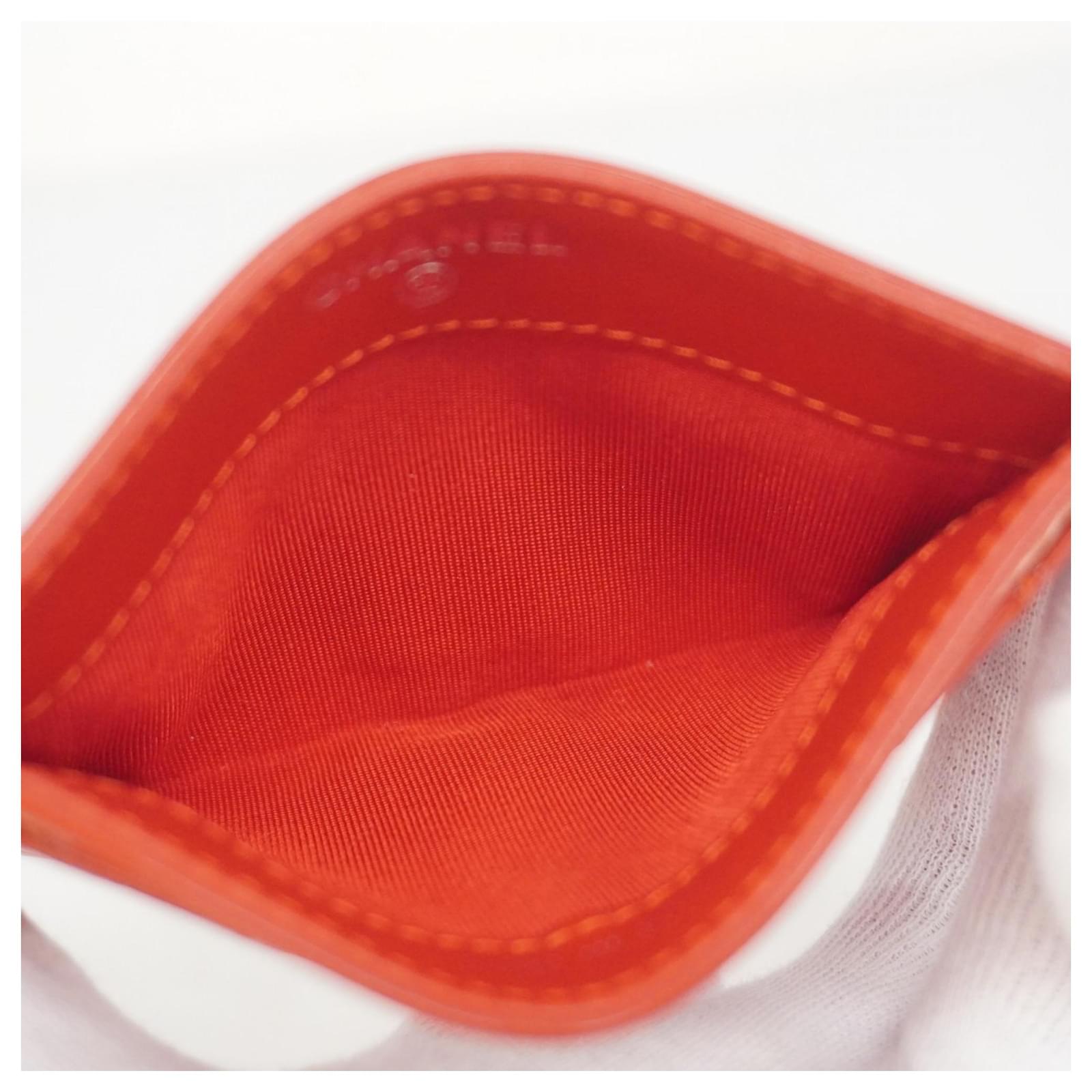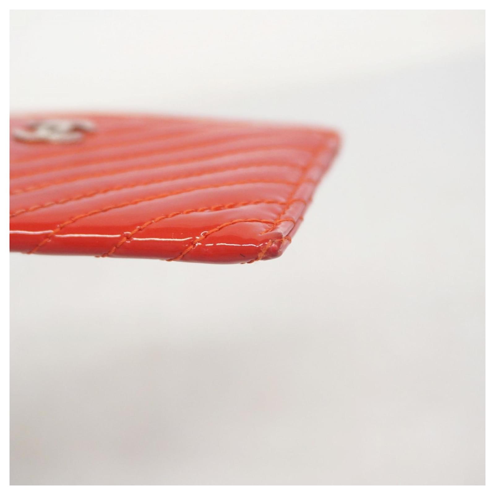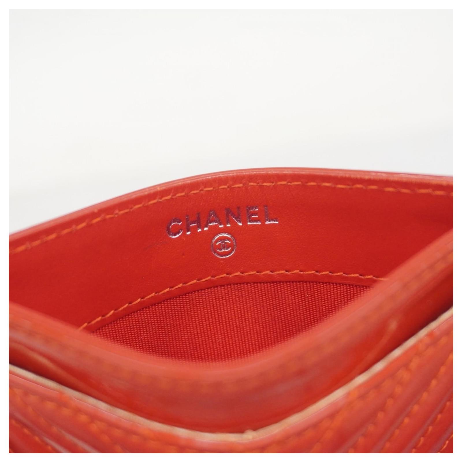 This Chanel card case is crafted from red patent leather, featuring a sleek design suitable for business use. Measuring 7.5cm x 11cm x 5mm, it is compact and easy to carry. The item is classified as used but remains in good condition, showing slight traces of use, including minor scratches and dirt. It comes with a dust bag and a guarantee card. Potential buyers are encouraged to review the images for a detailed view of the item’s condition and included accessories.