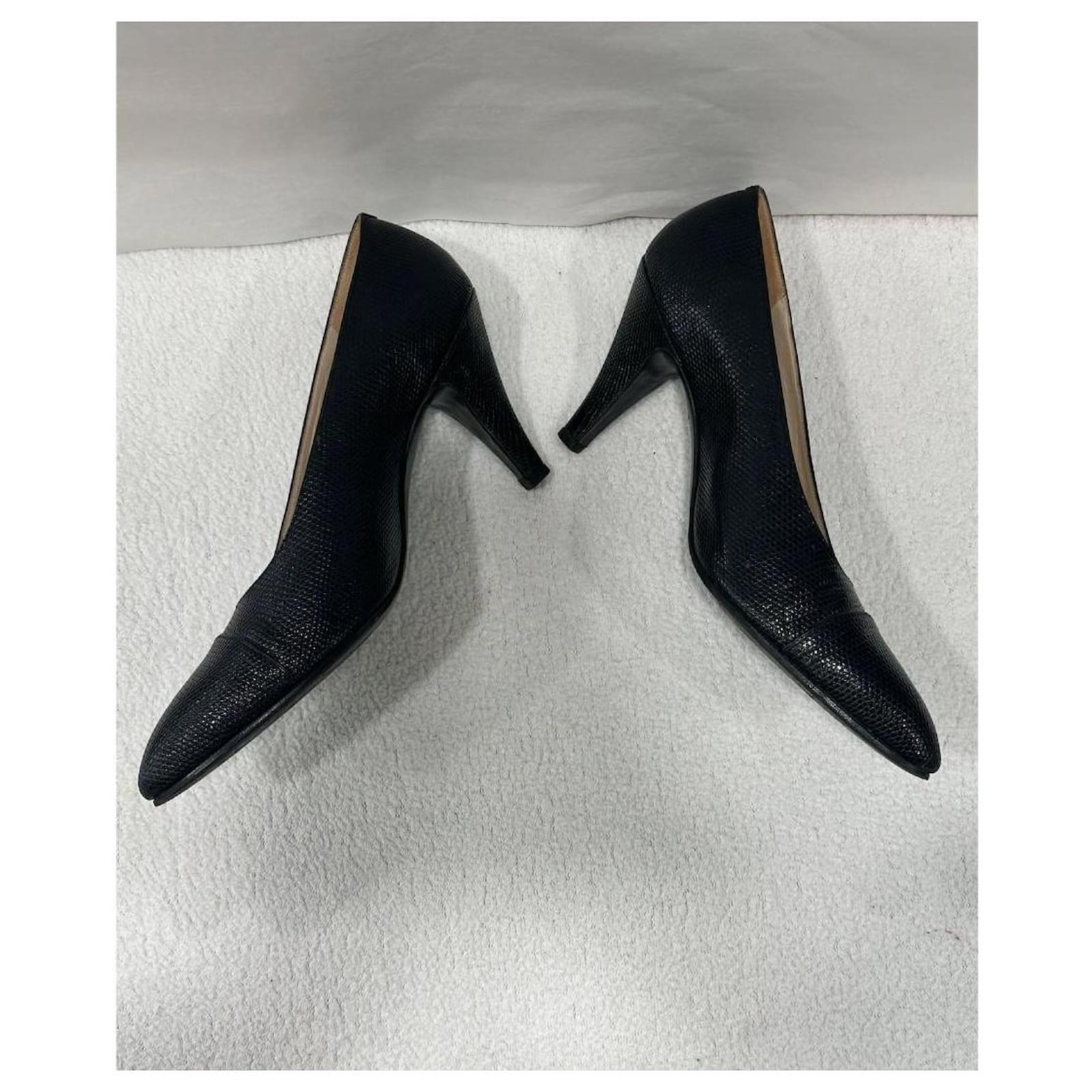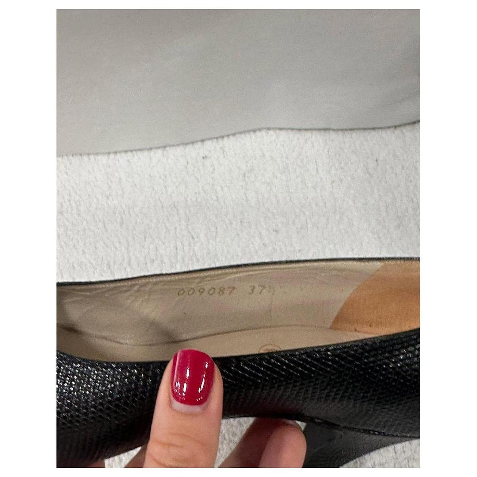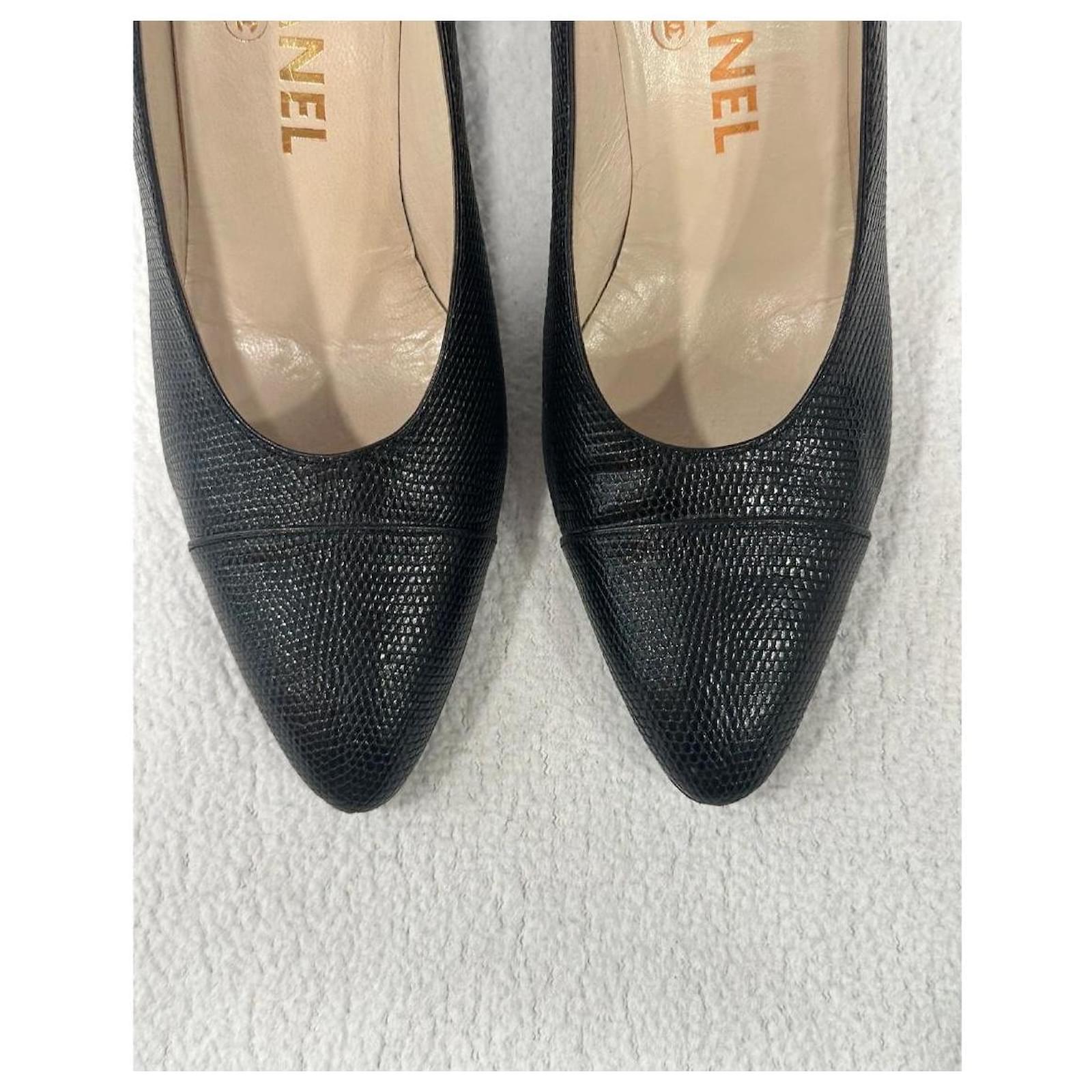 Chanel sandals in black lizard with a high heel of 8.5 cm. In good condition, the sole shows signs of wear. Please observe the photos carefully. Size 37.5.