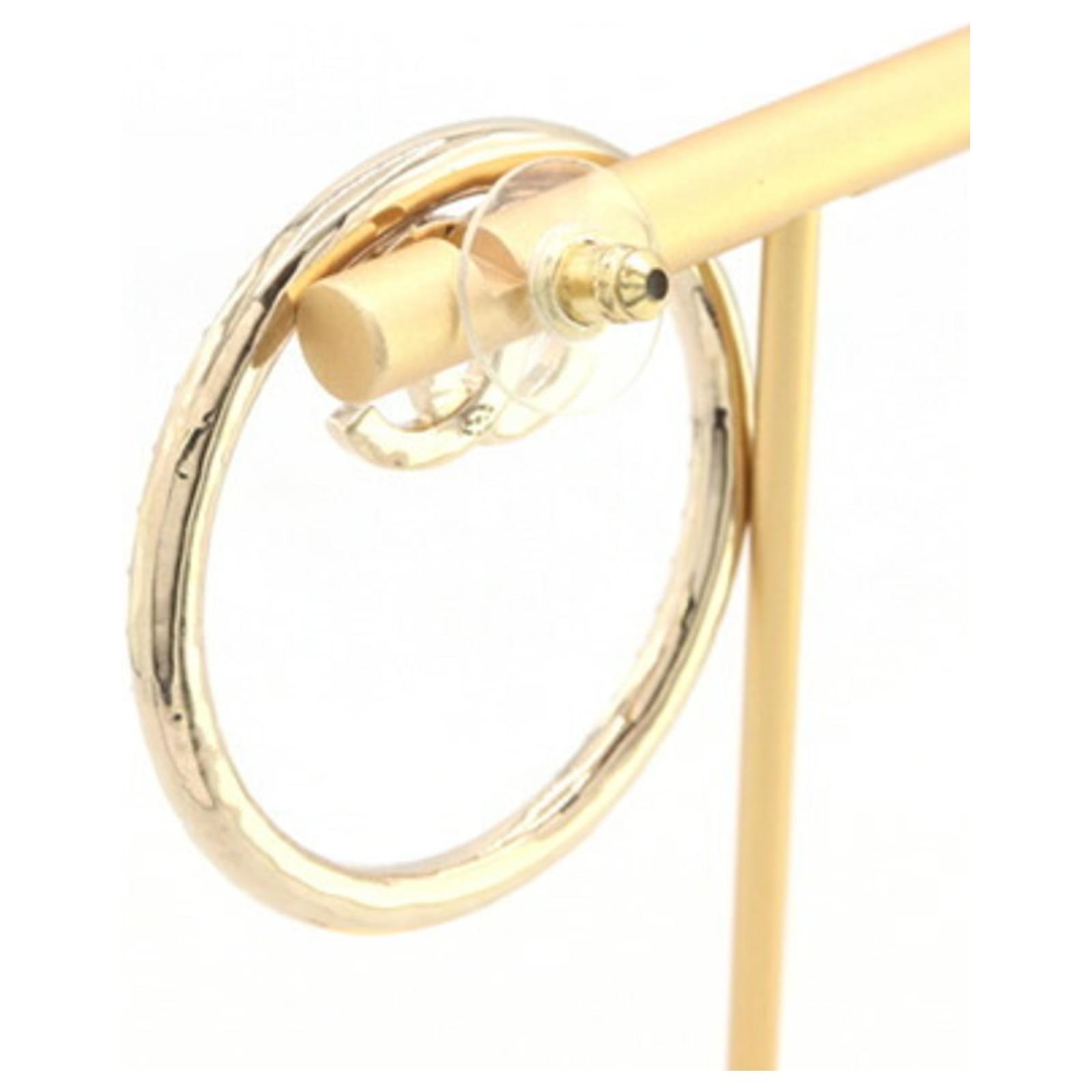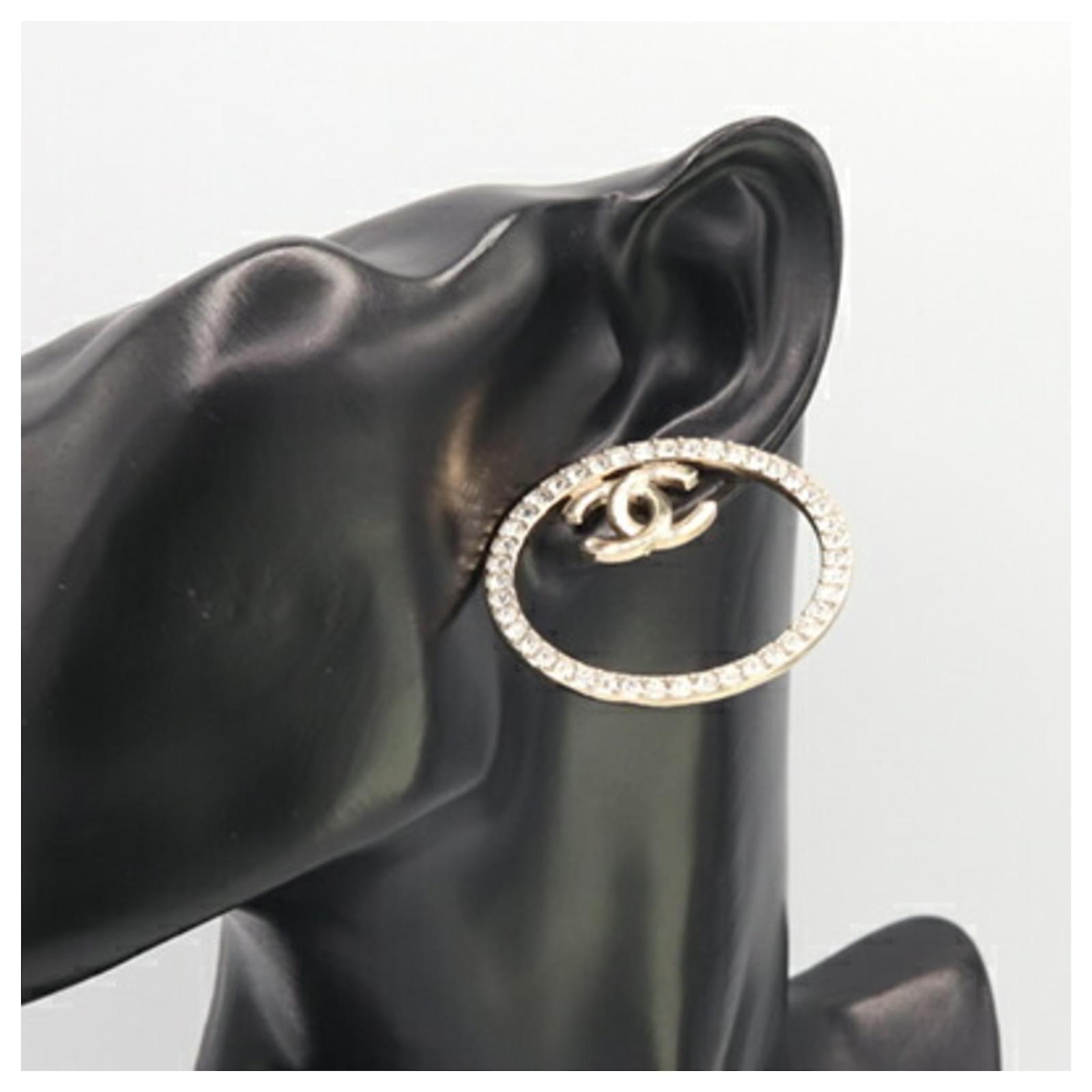 This Chanel single earring, model AB9086, features a champagne gold color and is crafted from metal and rhinestone. Designed as a stud earring, it showcases the iconic Coco mark, making it a notable accessory for women. The earring is classified as used but remains in very good condition, with a seller ranking of Rank A. There are slight traces of usage, including minor scratches and dirt, and a slight distortion in the clasp. Potential buyers are encouraged to review the provided images for a detailed view of the item’s condition. No additional accessories are included with this piece.