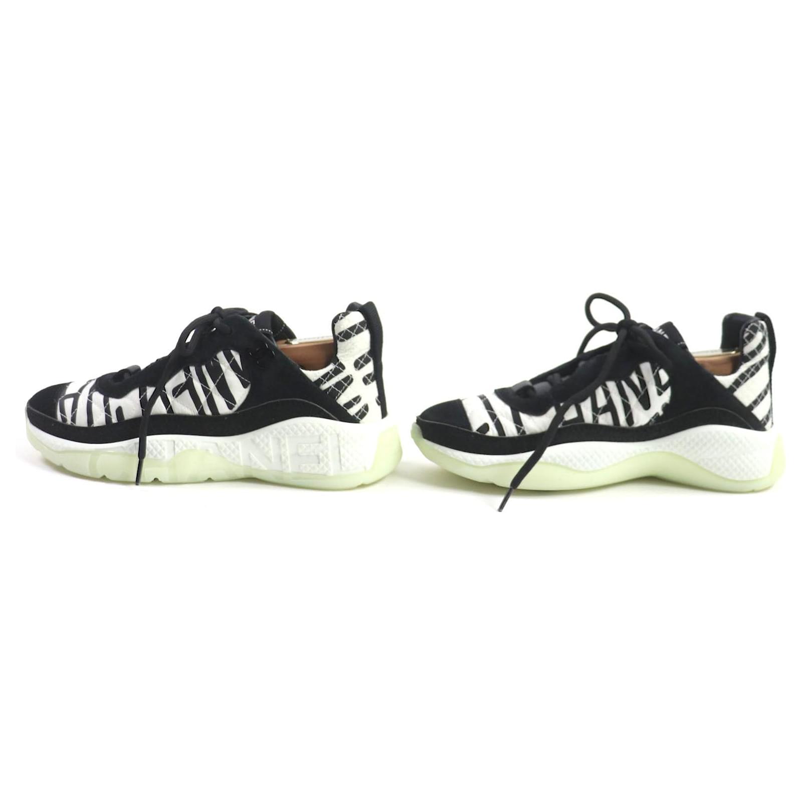 – General information – Brand : Chanel Item name : Chanel Graphic Logo Suede Sneakers Black White Model number : G38290 – Design – Type : Shoes Material : Canvas Color : Black Gender : Female – Size – Size : Instep width : 10 Insole total length : 26 Shoe size(JP) : 36 Color : Black White Material : Suede, Nylon – Inventory – Serial Number : null SKU : 120250001452000A0025471311 – Included Items – Accessories : null *Before purchasing, please refer to the images of the accessories included with the item. – Condition – Condition : Excellent Condition Rank : Used A Slightly used condition, no visible wear. Condition Notice : Before purchasing, please refer to the images for the exact condition of the item.
