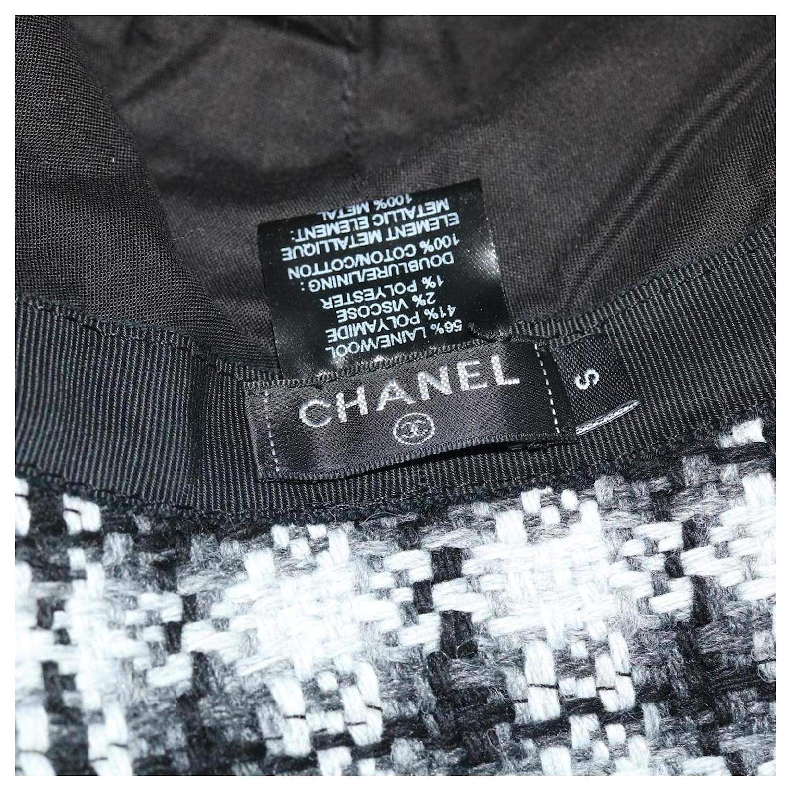Stylish CHANEL COCO Mark Hat S size White / Black color Made from high quality wool Surface has slight rubbing Odorless Comes without a box or dust bag Product number and serial number are not available Material: Wool
