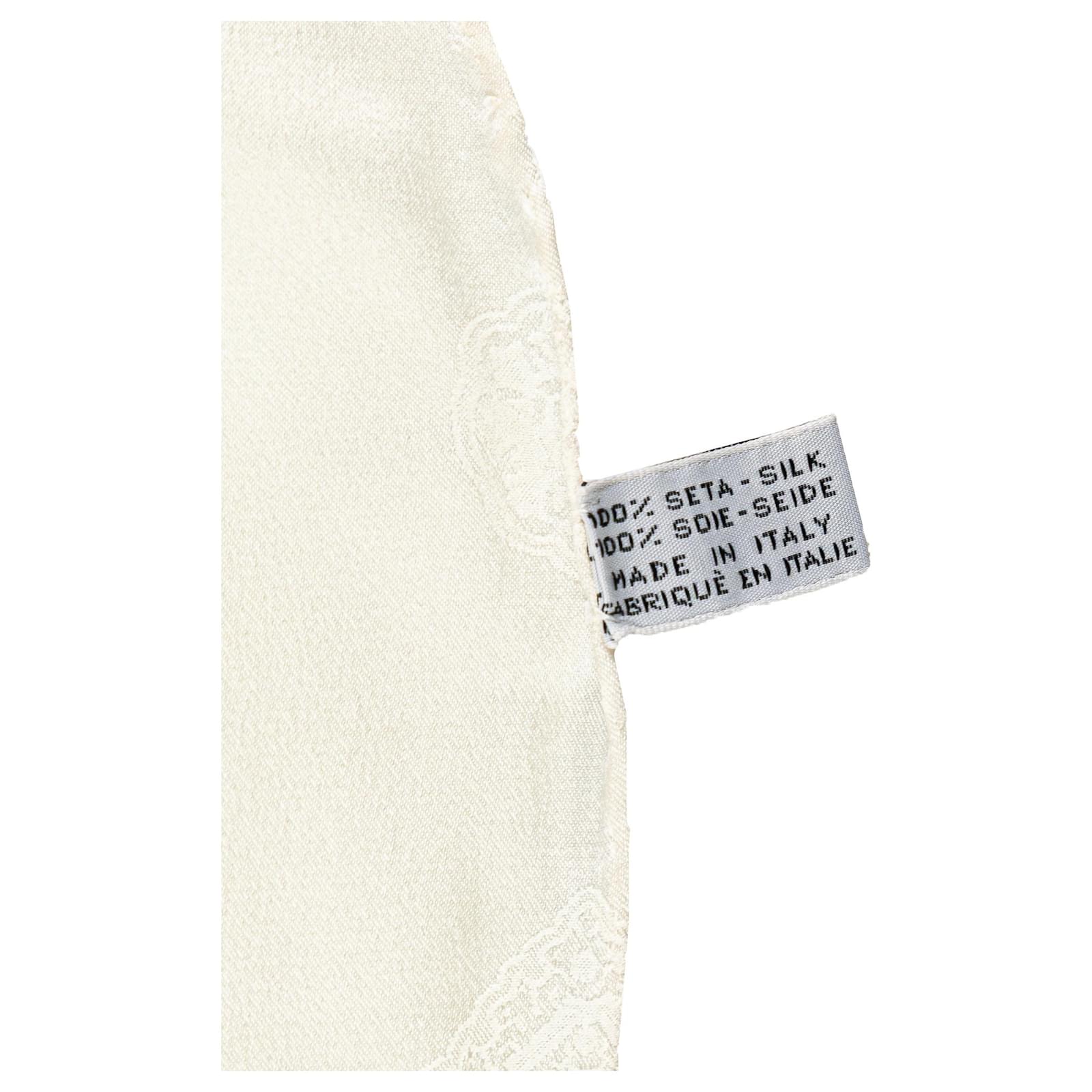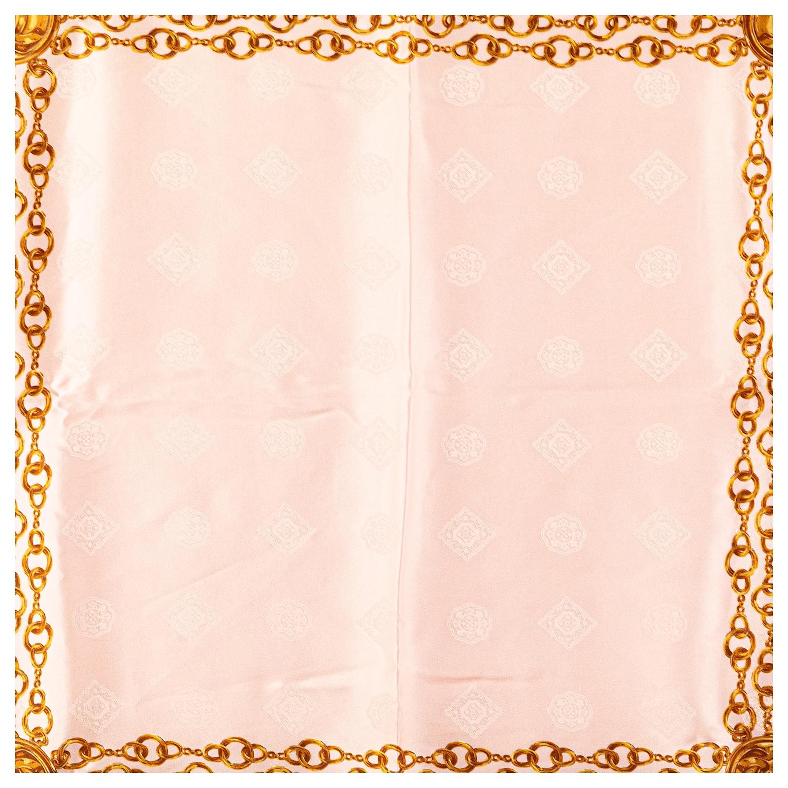 This scarf features chain print on 100% silk. It carries an AB condition rating.\r\n\r\nExterior Back Loose Stitching. Exterior Back stained with Other. Exterior Front stained with Other. \r\n\r\nDimensions: \r\nLength: 89 cm\r\nWidth: 87 cm cm\r\n\r\nInclusions: No longer comes with original accessories.\r\n\r\nColor: White x Multi\r\n\r\nMaterial: Fabric x Silk\r\n\r\nCountry of Origin: Italy\r\n\r\nBoutique Reference: PJC317909F956 \r\n