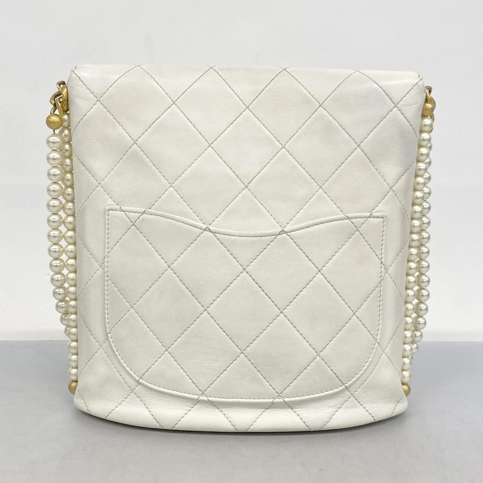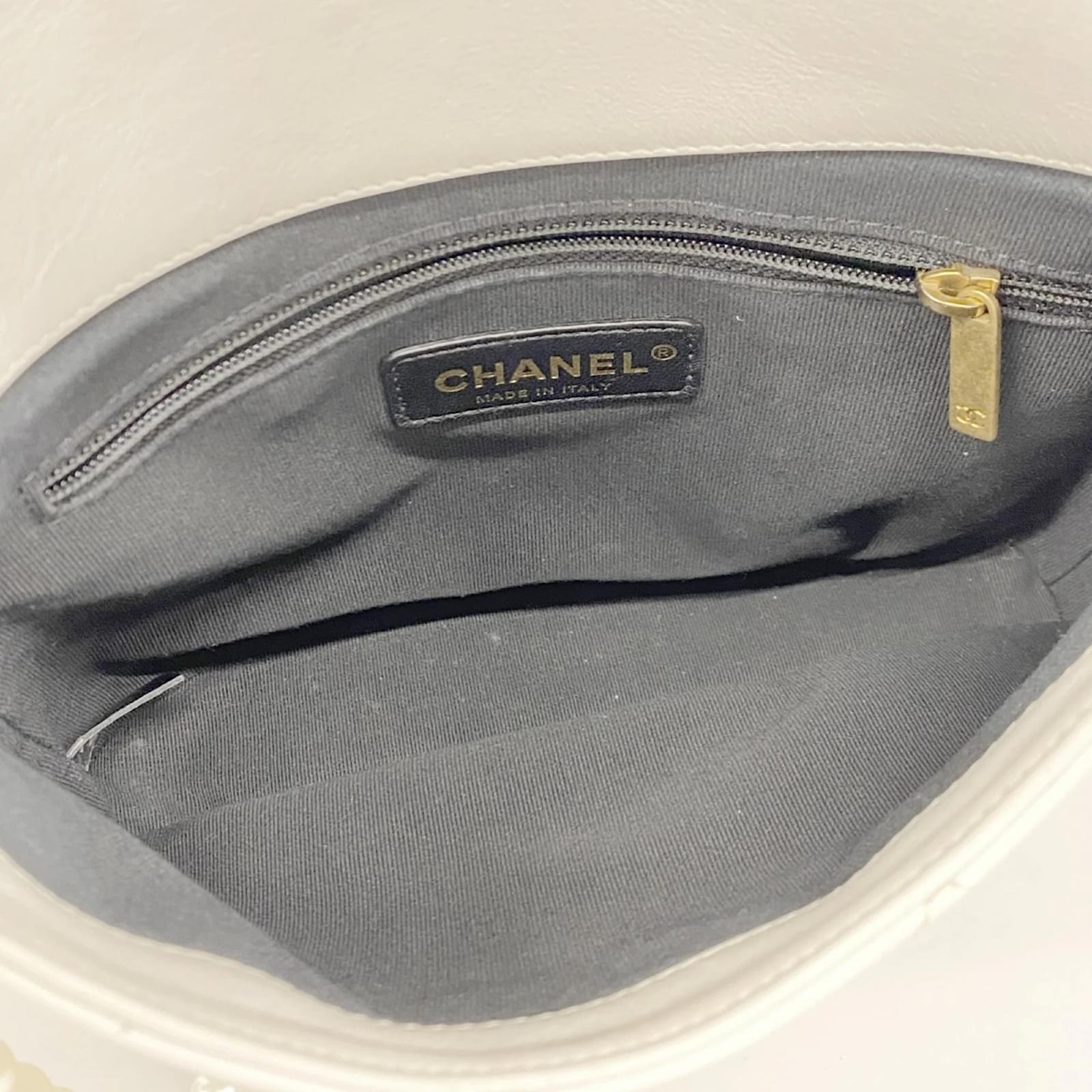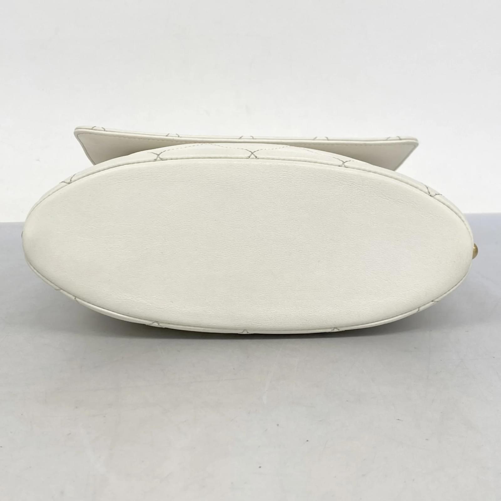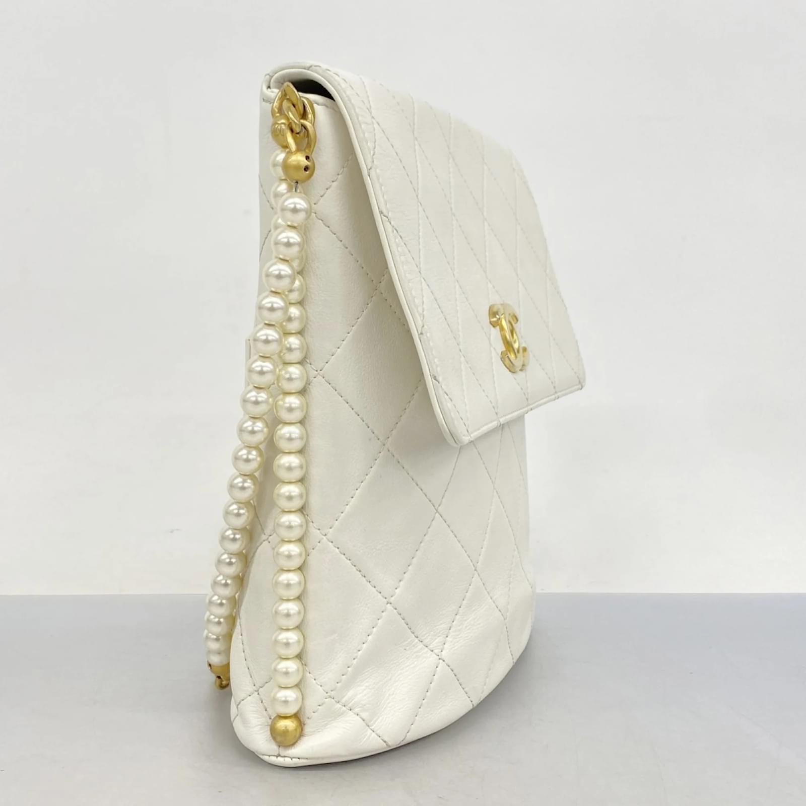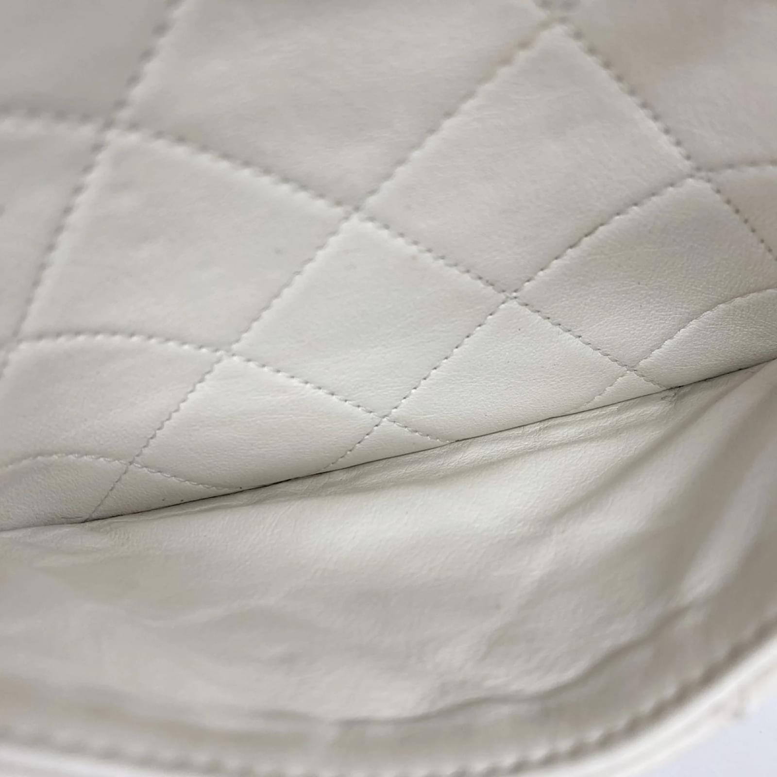 This Chanel shoulder bag is crafted from white matelasse leather and features gold hardware. With dimensions of 22cm x 22cm x 8cm, it offers a compact yet stylish option for everyday use. The bag is classified as used but is in good condition, showing slight traces of use, including minor scratches and dirt. It has been repainted by the seller to maintain its appearance. Please refer to the images for a detailed view of the item’s condition and note that no additional accessories are included.