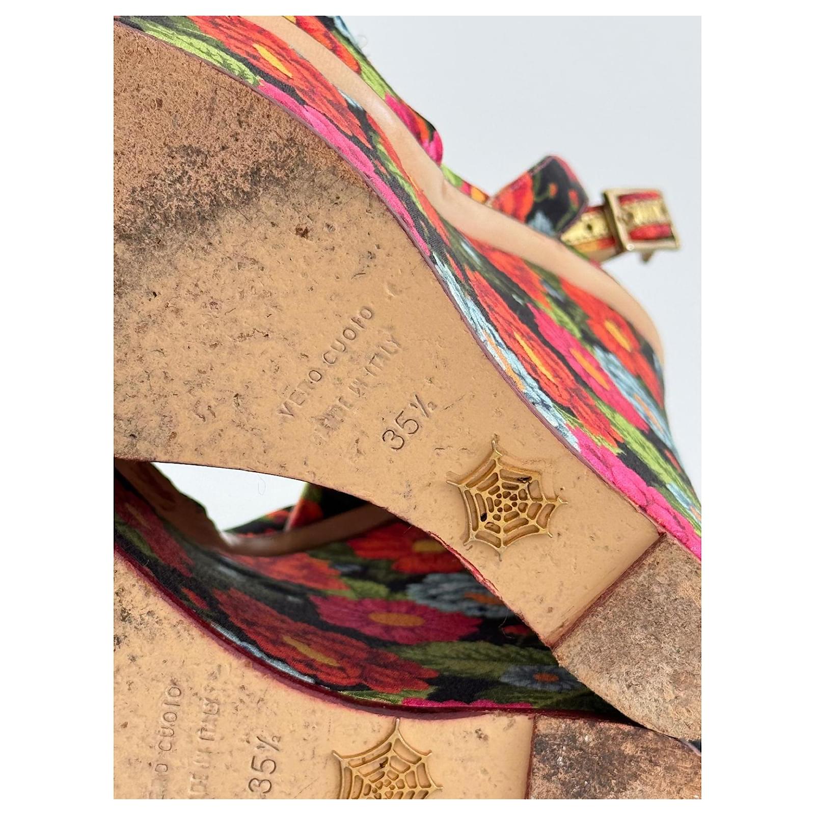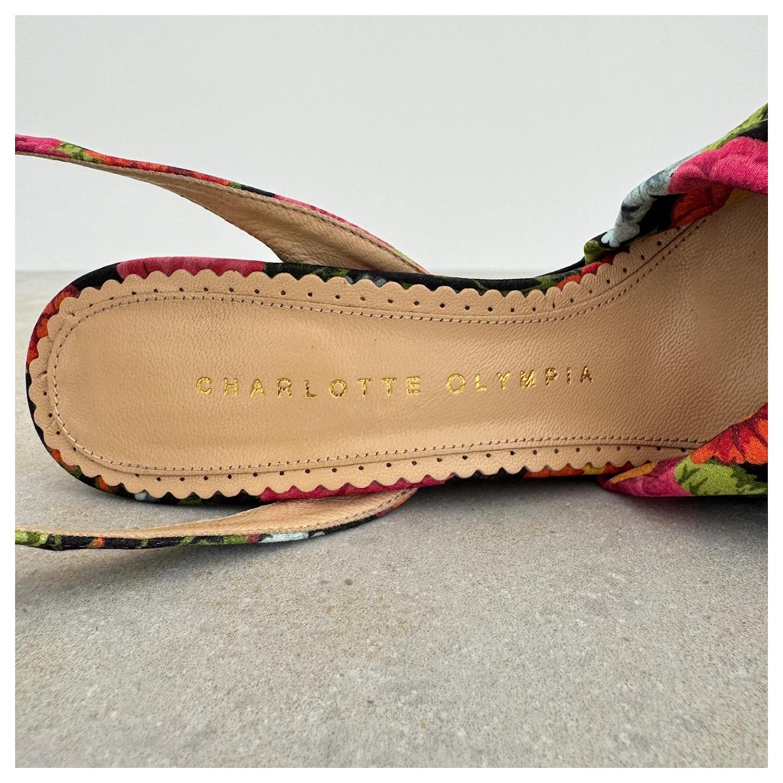 Charlotte Olympia Melody floral wedges in very good condition, used twice.\r\nPerfect for the summer, this pair features a multicolor floral print throughout and gold tone details.\r\n\r\nHeel 16 cm\r\nPlatform 5 cm\r\nInsole 23,5 cm