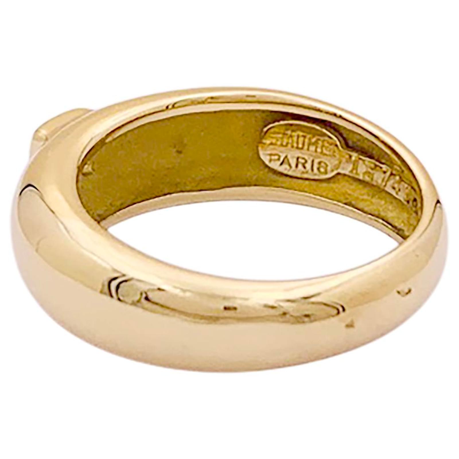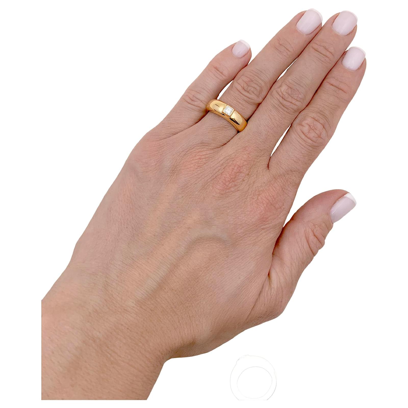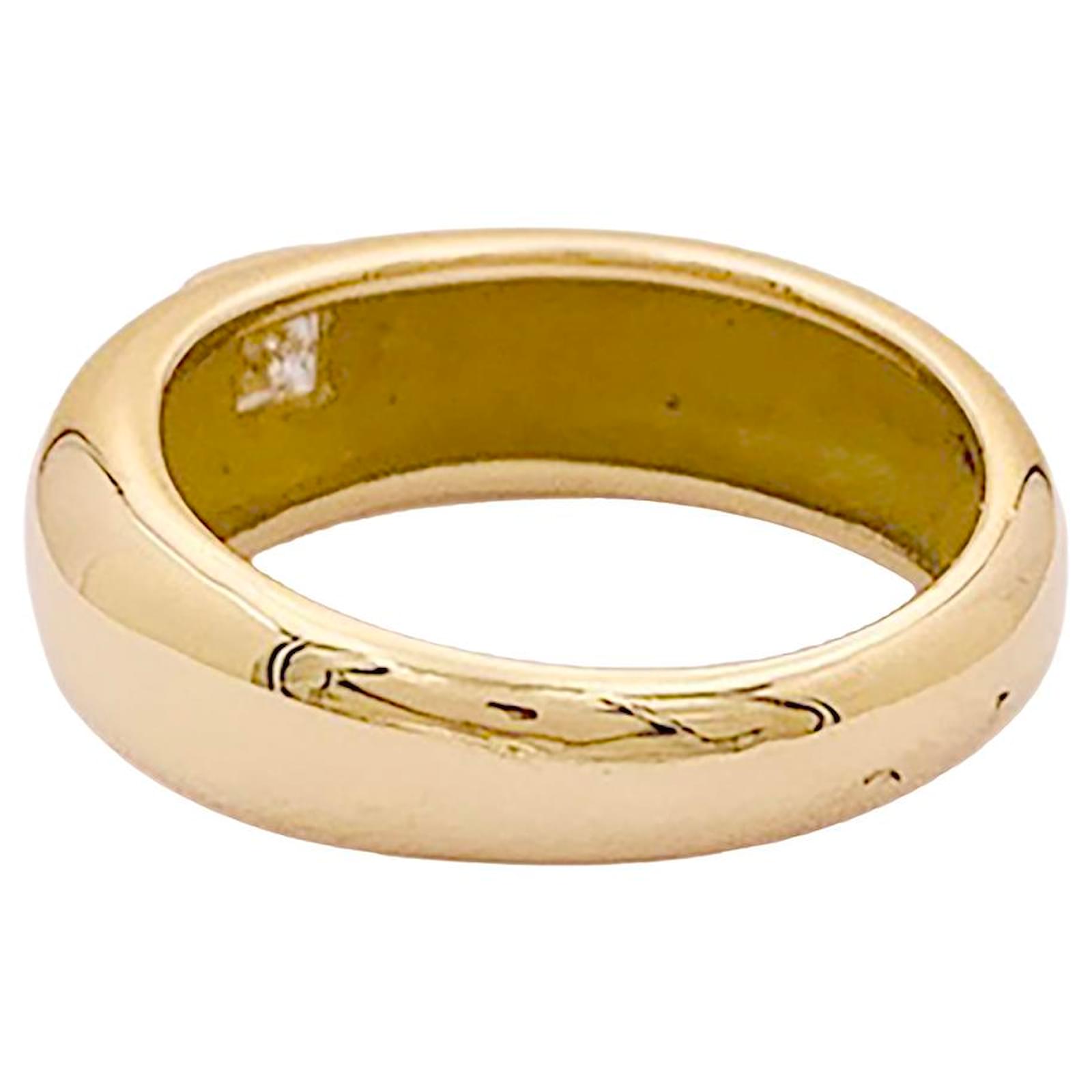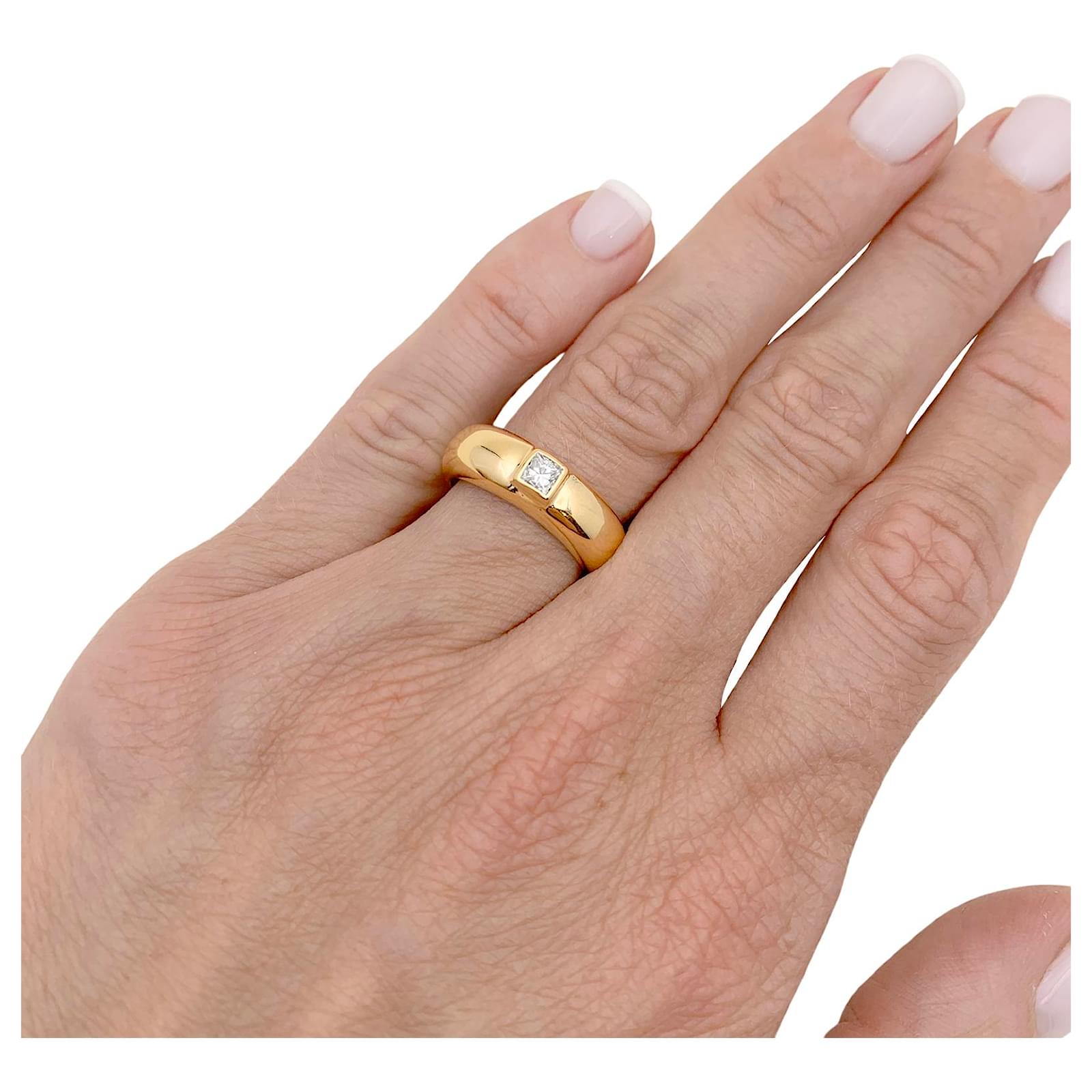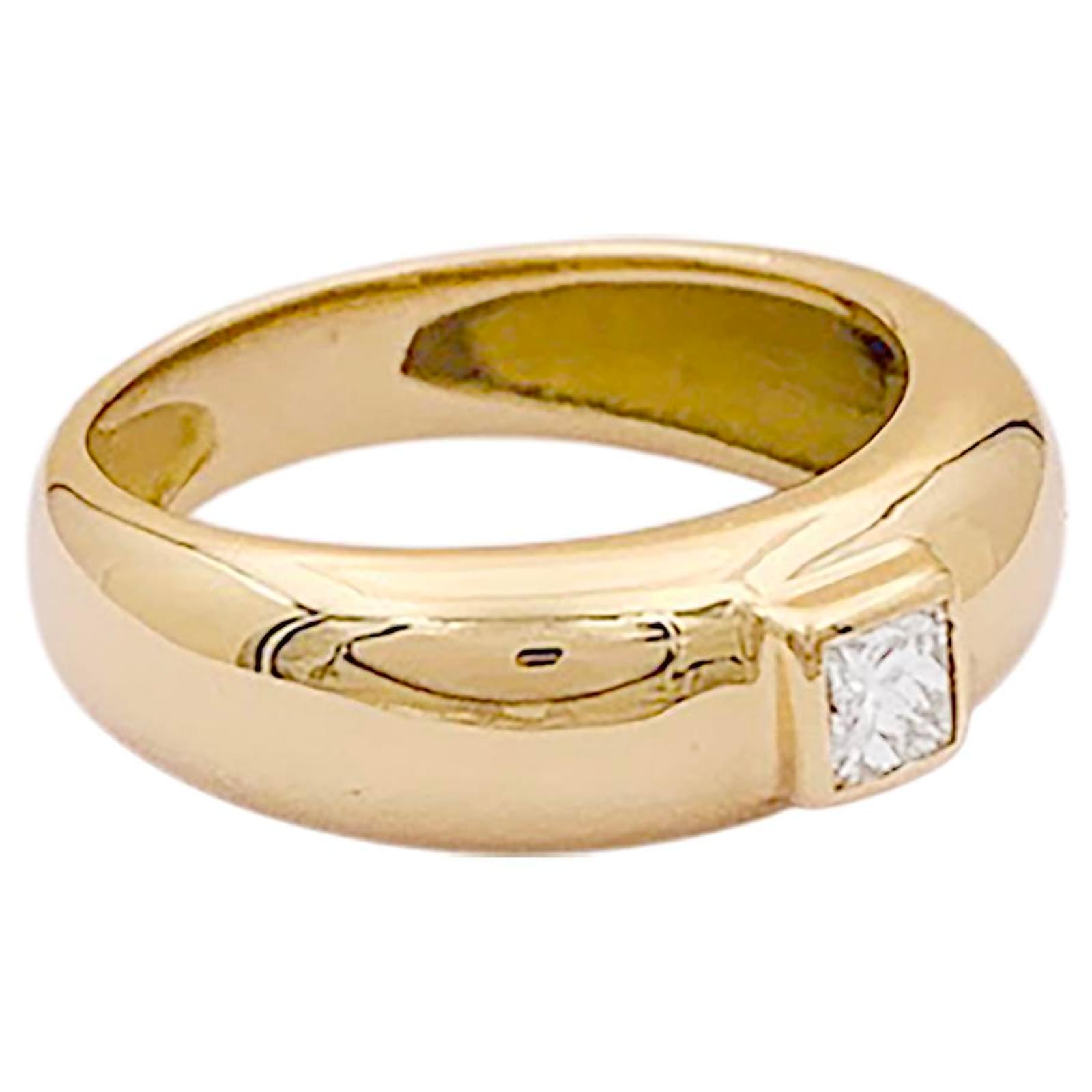 A ring signed by the House of Chaumet, \”Anneau\”, in the form of a domed band set with a princess-cut diamond.
