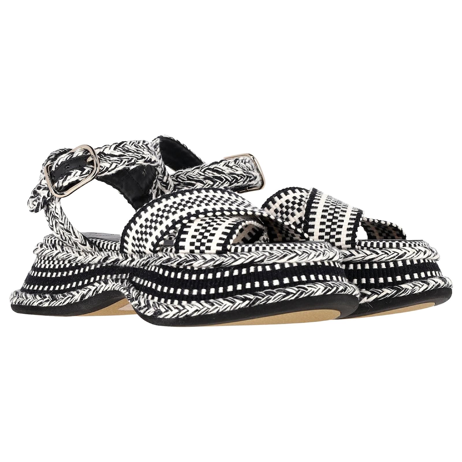 Step into refined sophistication with the Chloé Meril Weaved Sandals in Black Cotton. These sandals feature a beautifully crafted woven design that adds texture and depth to the classic black cotton fabric. The sleek and stylish silhouette offers a modern twist on casual elegance, perfect for dressing up summer outfits or adding a chic touch to your everyday look. With their blend of comfort and high fashion, these sandals are a versatile choice for any occasion.\n\nChloé Meril Weaved Sandals in Black Cotton\n\nCondition: Excellent\nSigns of wear: Include Box., No visible sign of wear. No Mark at insole., Unused or used once, but as good as new. Very light mark at soles.\nPackaging: Box, Dust bag\nColor: Black\nMaterial: Cotton | cotton \nSize: EU37/UK4/US7\nMeasurements: Insole length: 320\nSKU: NAPPUGBSH378187W \n Product Id: 378187 \n