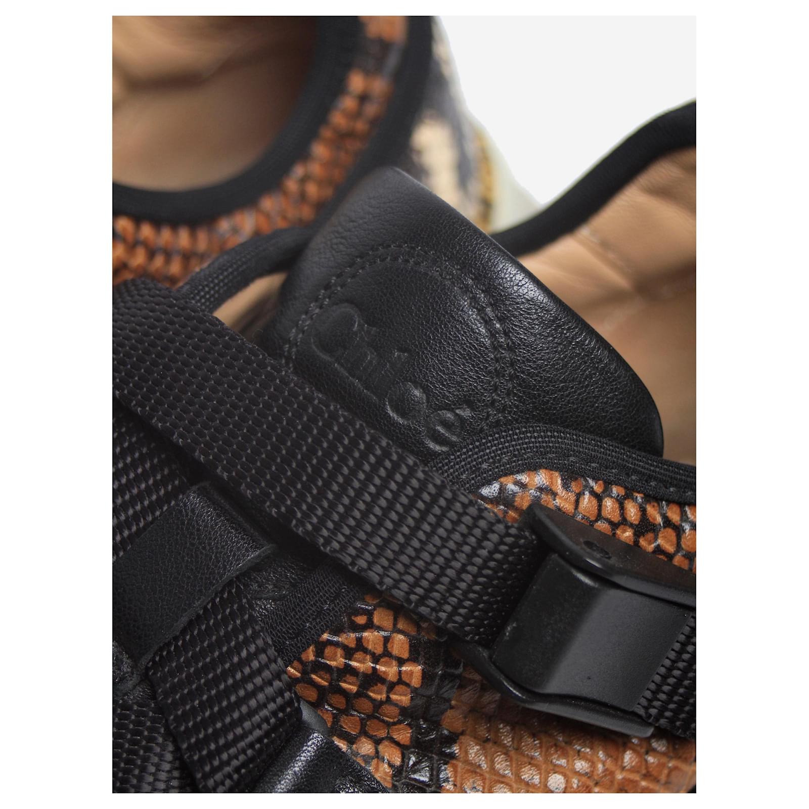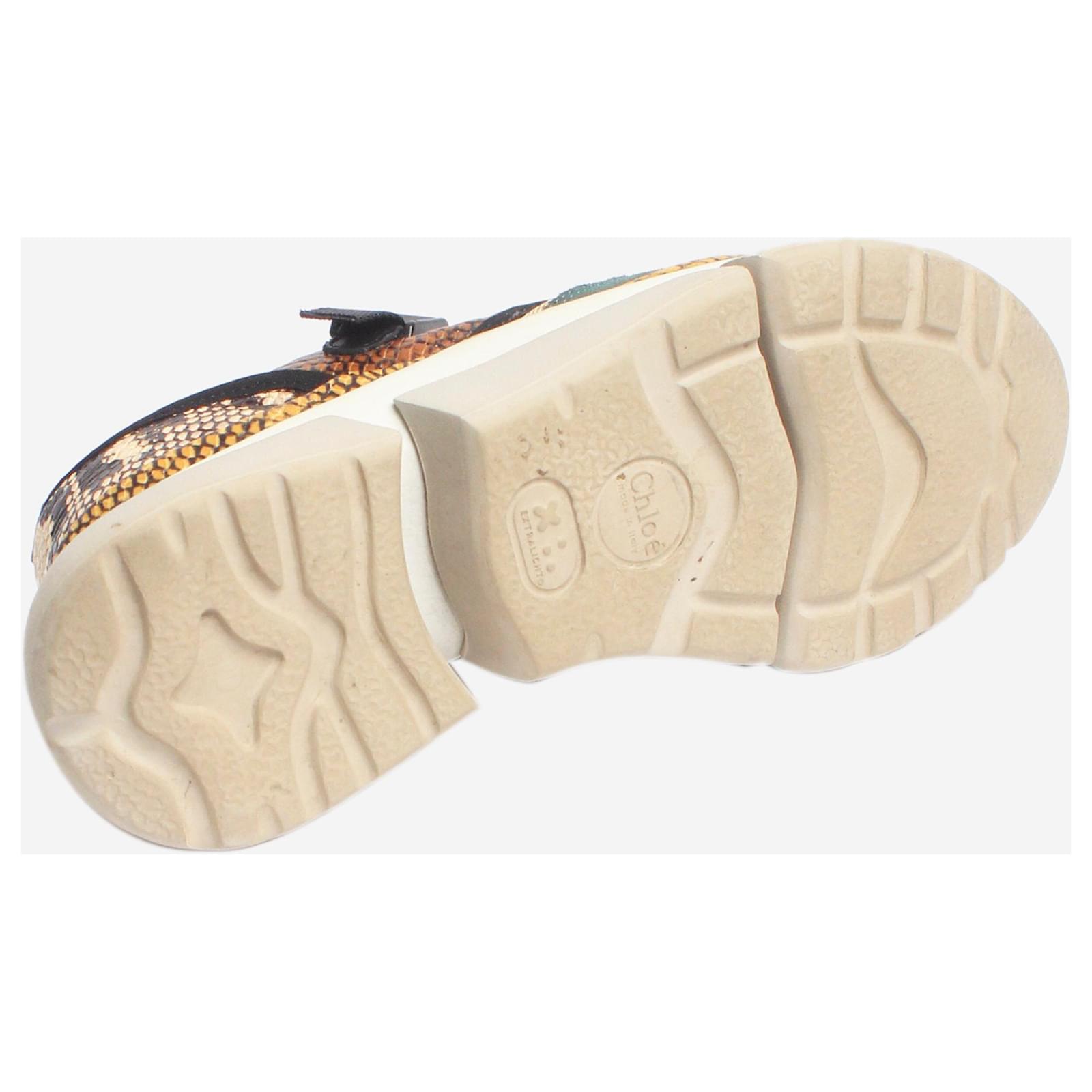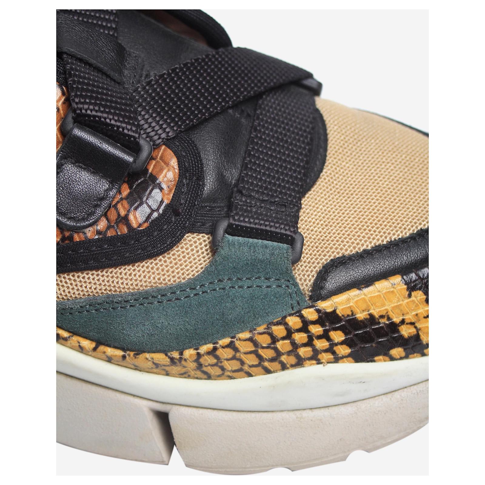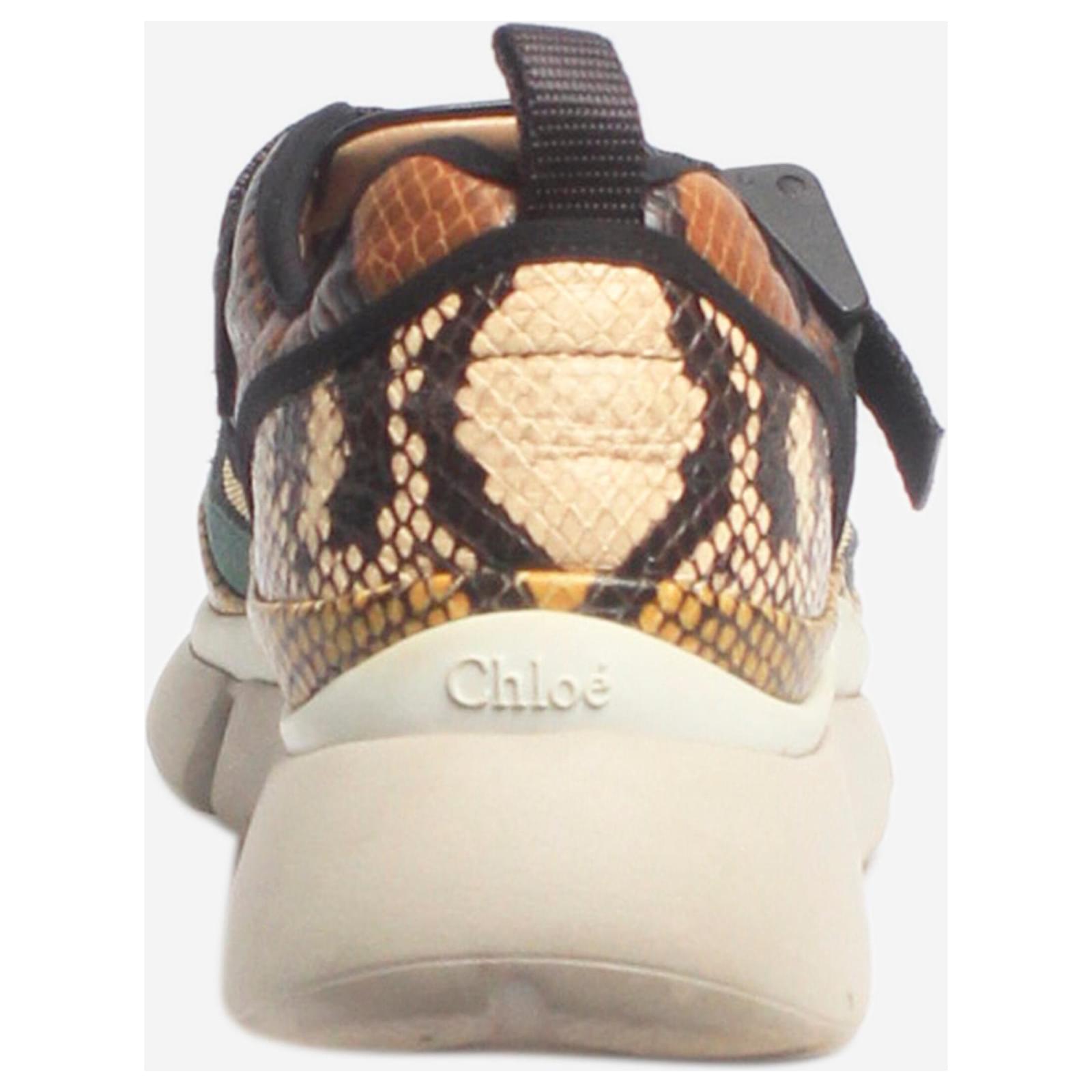 Chloe multicolour snakeskin and mesh trainers with an adjustable strap closure.\nCondition: This item is in very good pre-owned condition, showing no significant signs of wear.\nSize: EU 37 (UK 4)\nHeel height: 4 cm\n