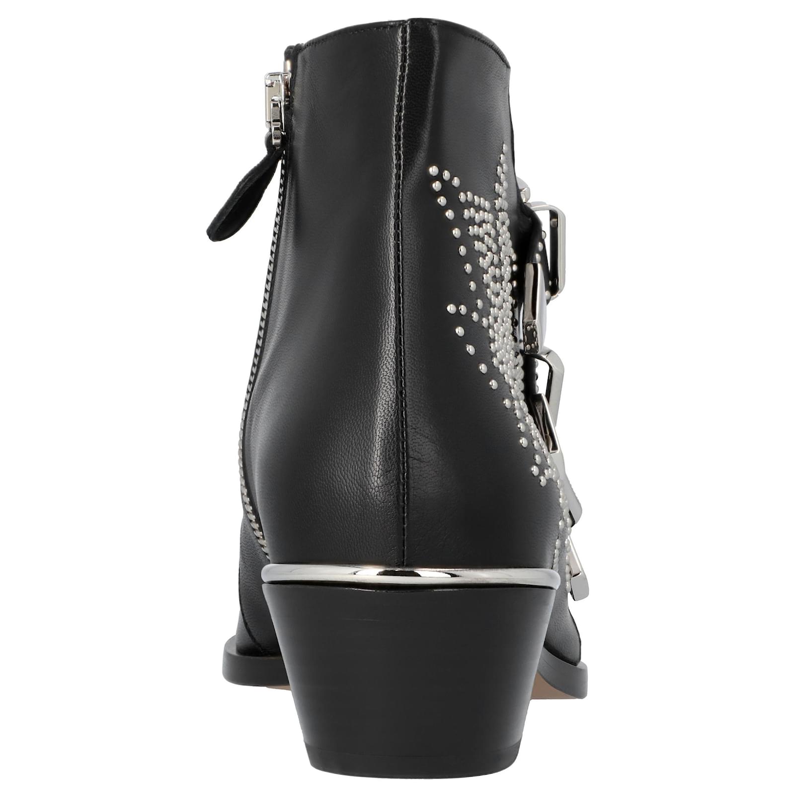 Ankle boot Heel height: 4 cm\nEffective heel height: 3 cm\n\n- Upper: Nappa sheepskin\n- Heel: multi-layered calf leather\n- Sole: Calf leather\n- Lining: Calf leatherMeasurments: \n Product Id: 422897 \n