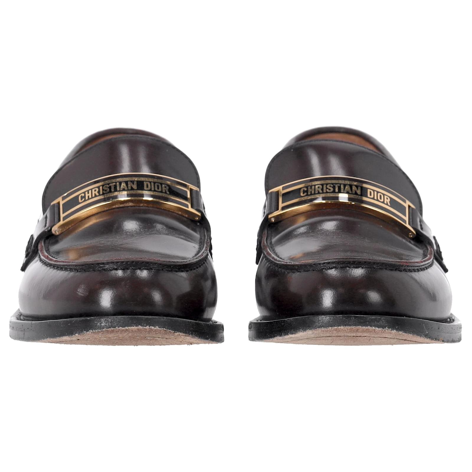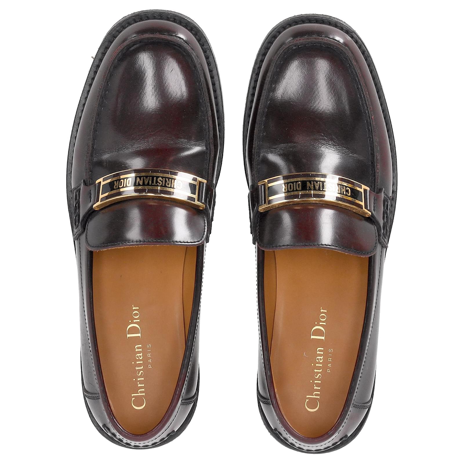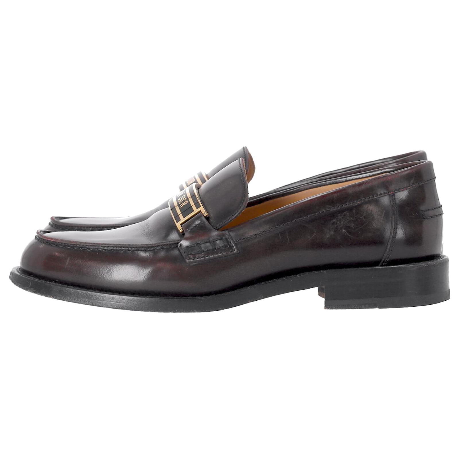 Elevate your footwear collection with the Dior Code Loafers in brown brushed calfskin. This timeless reinterpretation of a classic men’s model is a luxurious fusion of comfort and style. The enamel plate adorned with the gold-colored “CHRISTIAN DIOR” signature adds a sophisticated touch that echoes the iconic Dior Book Tote. With a soft and comfortable design, and a leather sole, these loafers are the perfect blend of practicality and high-fashion luxury.\n\n\nwith Box, Dust bag\n\nDior Code Loafers in Brown Leather \nCondition: good\nSigns of wear: Include Box., No visible sign of wear. No Mark at insole., Lightly used but very well maintained. Minor mark at soles & creasing, light scuffing at the soles and heels.\nPackaging: Box, Dust bag\nColor: Brown \nMaterial: Leather \nSize: EU | 38\nMeasurements: Heel height: 30; Insole length: 240\nSKU: NAPPUDESH466130W \n Product Id: 466130 \n