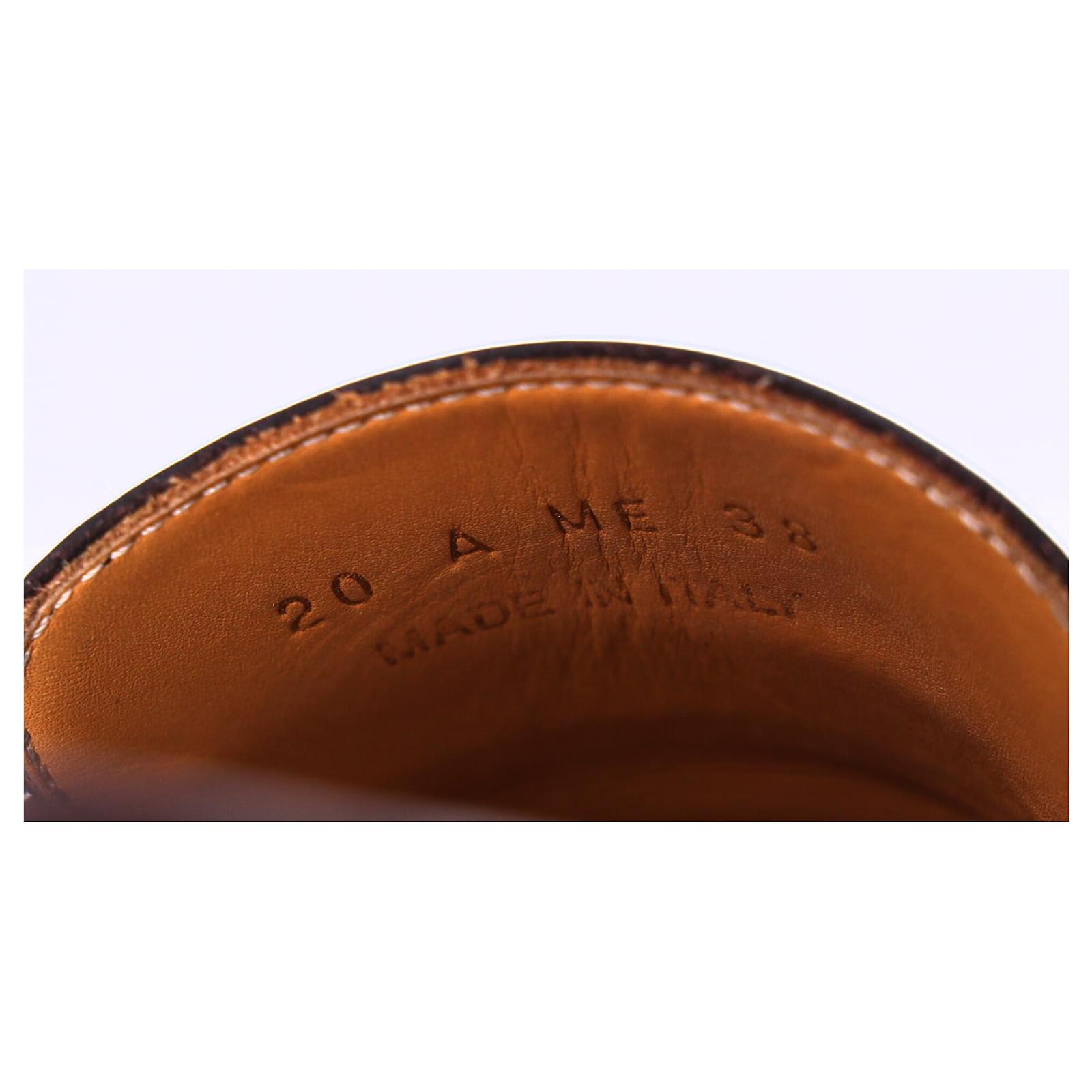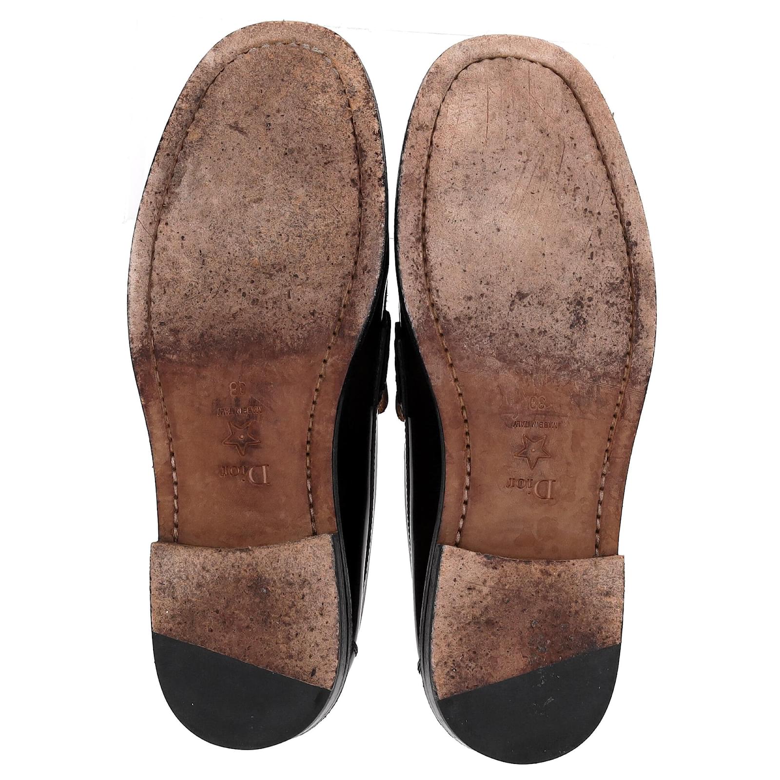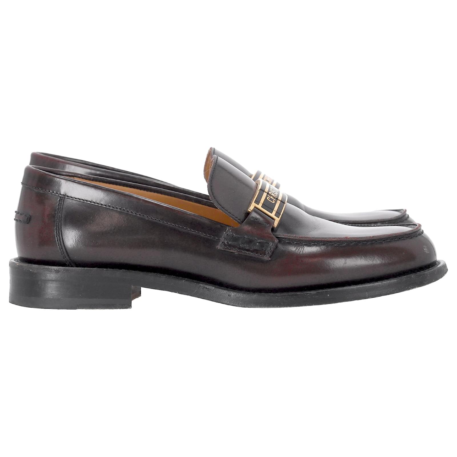 Elevate your footwear collection with the Dior Code Loafers in brown brushed calfskin. This timeless reinterpretation of a classic men’s model is a luxurious fusion of comfort and style. The enamel plate adorned with the gold-colored “CHRISTIAN DIOR” signature adds a sophisticated touch that echoes the iconic Dior Book Tote. With a soft and comfortable design, and a leather sole, these loafers are the perfect blend of practicality and high-fashion luxury.\n\n\nwith Box, Dust bag\n\nDior Code Loafers in Brown Leather \nCondition: good\nSigns of wear: Include Box., No visible sign of wear. No Mark at insole., Lightly used but very well maintained. Minor mark at soles & creasing, light scuffing at the soles and heels.\nPackaging: Box, Dust bag\nColor: Brown \nMaterial: Leather \nSize: EU | 38\nMeasurements: Heel height: 30; Insole length: 240\nSKU: NAPPUDESH466130W \n Product Id: 466130 \n