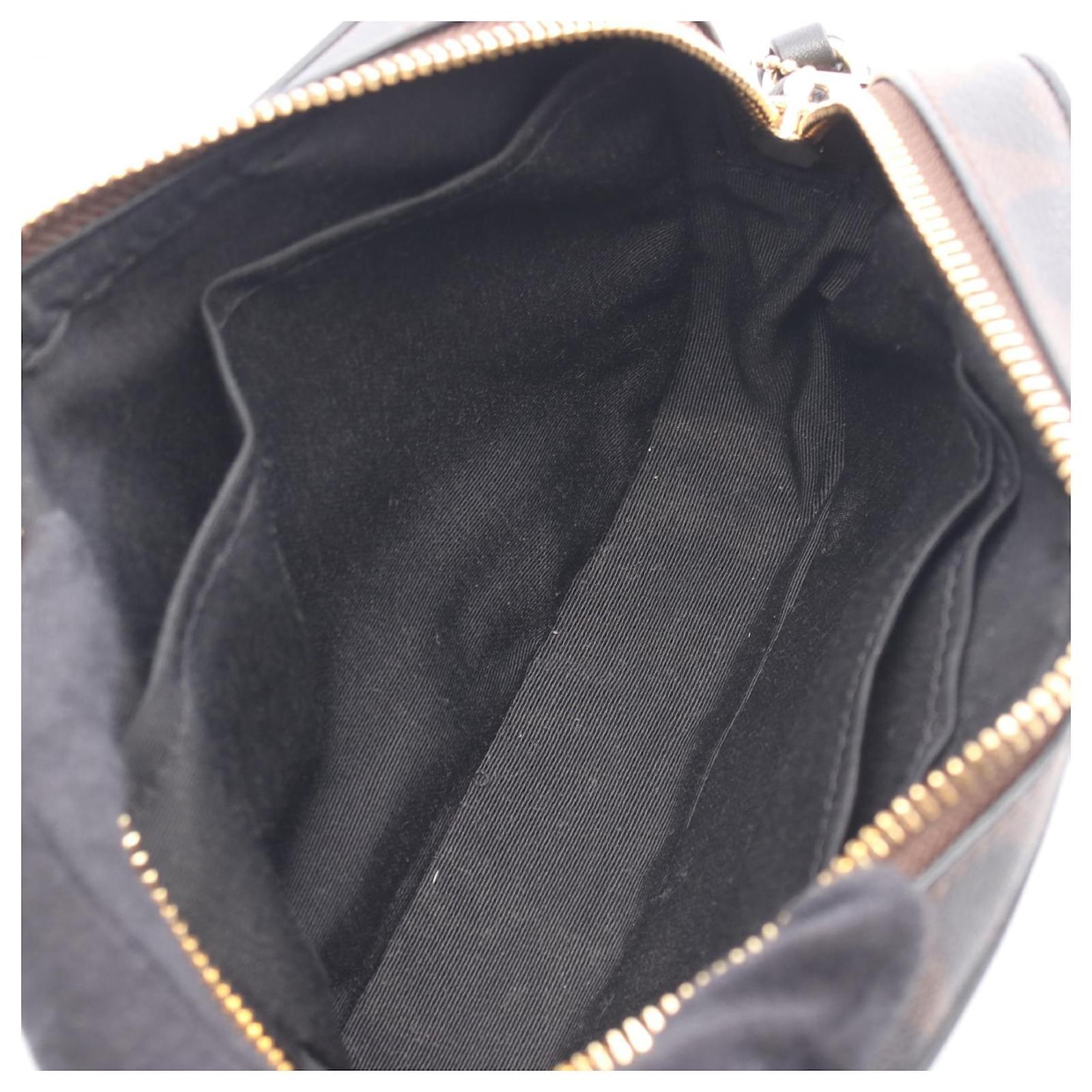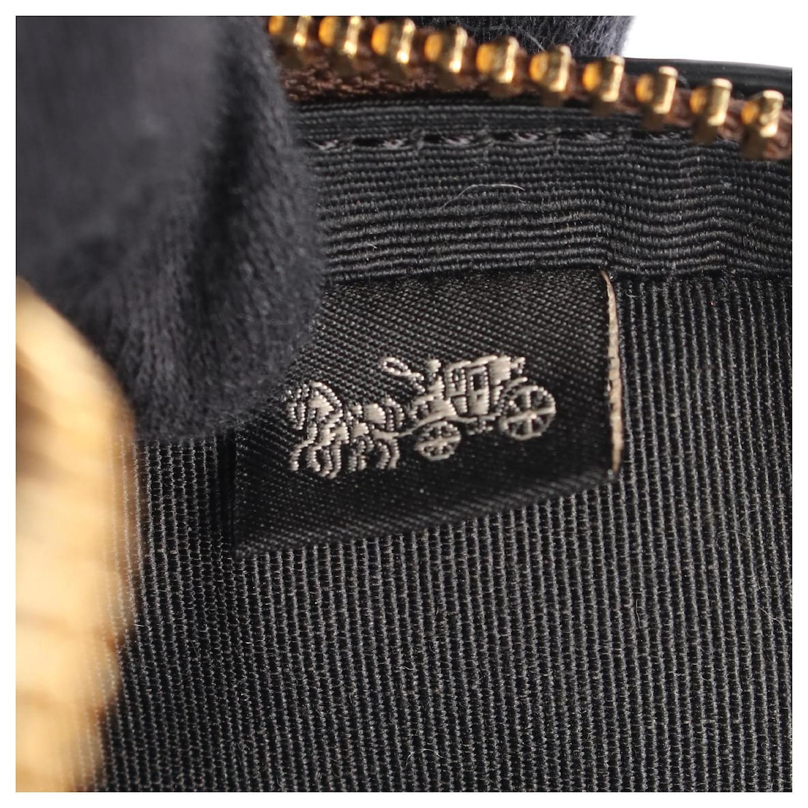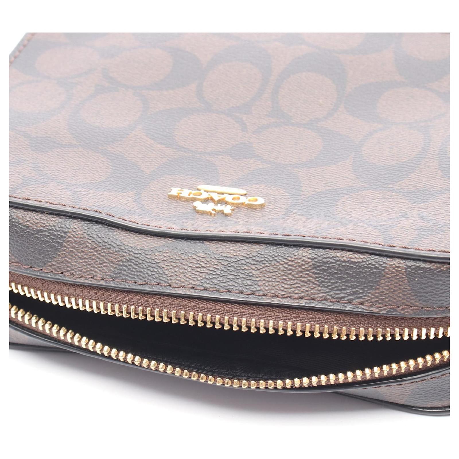 Brand Name: Coach; Condition: Very Good; Category: Bag; SubCategory: Crossbody Bag; Product Name: Coach Signature Mini Camera Shoulder Bag 91677; Model Number: 91677; Style: Ladies; Height (cm): 13; Width (cm): 5; Length (cm): 18; Color: Brown; Material: PVC coated canvas, leather; Measurments: width: 50 mm length: 180 mm height: 130 mm \n Product Id: 522990 \n