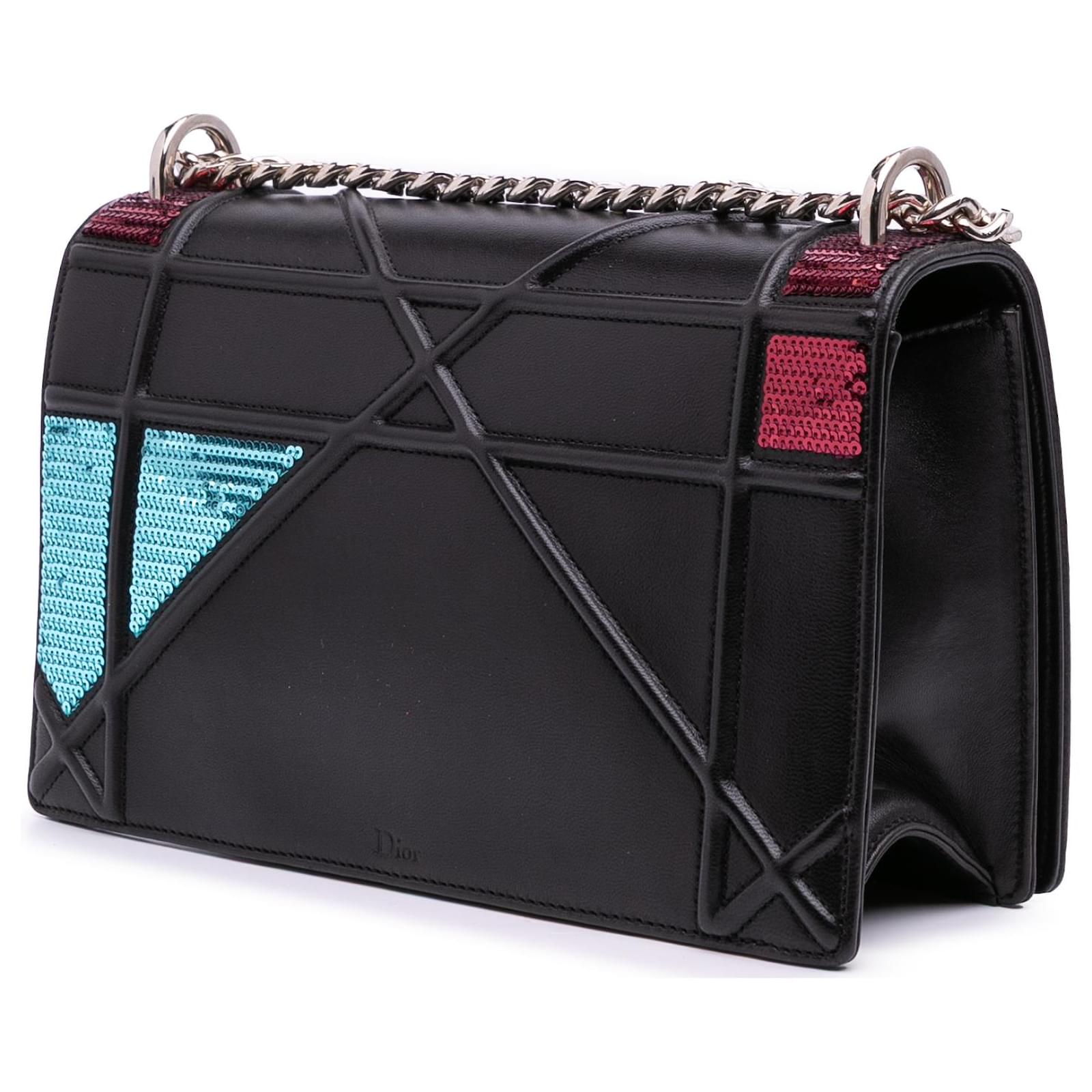 The Diorama features a leather body with sequin details, a chain link strap, a front flap with a push lock closure, and interior zip and slip pockets. It carries a B+ condition rating.\r\n\r\nExterior Back Creased, Scratched, Worn. Exterior Bottom Creased, Worn. Lock Scratched. Exterior Corners Worn. Exterior Front Scratched. Exterior Handle Creased, Worn. Interior Pocket stained with Other. Interior Lining Creased, Scratched. Practical Attachment Scratched. Exterior Side Creased. Zipper Scratched. \r\n\r\nDimensions: \r\nLength: 15 cm\r\nWidth: 25 cm\r\nDepth: 8 cm\r\nShoulder Drop: 57\r\n\r\nInclusions: No longer comes with original accessories.\r\n\r\nColor: Black x Multi\r\n\r\nMaterial: Leather x Lambskin Leather\r\n\r\nCountry of Origin: Italy\r\n\r\nSerial: 09-BO-0145\r\n\r\nBoutique Reference: PJC320500F956 \r\n
