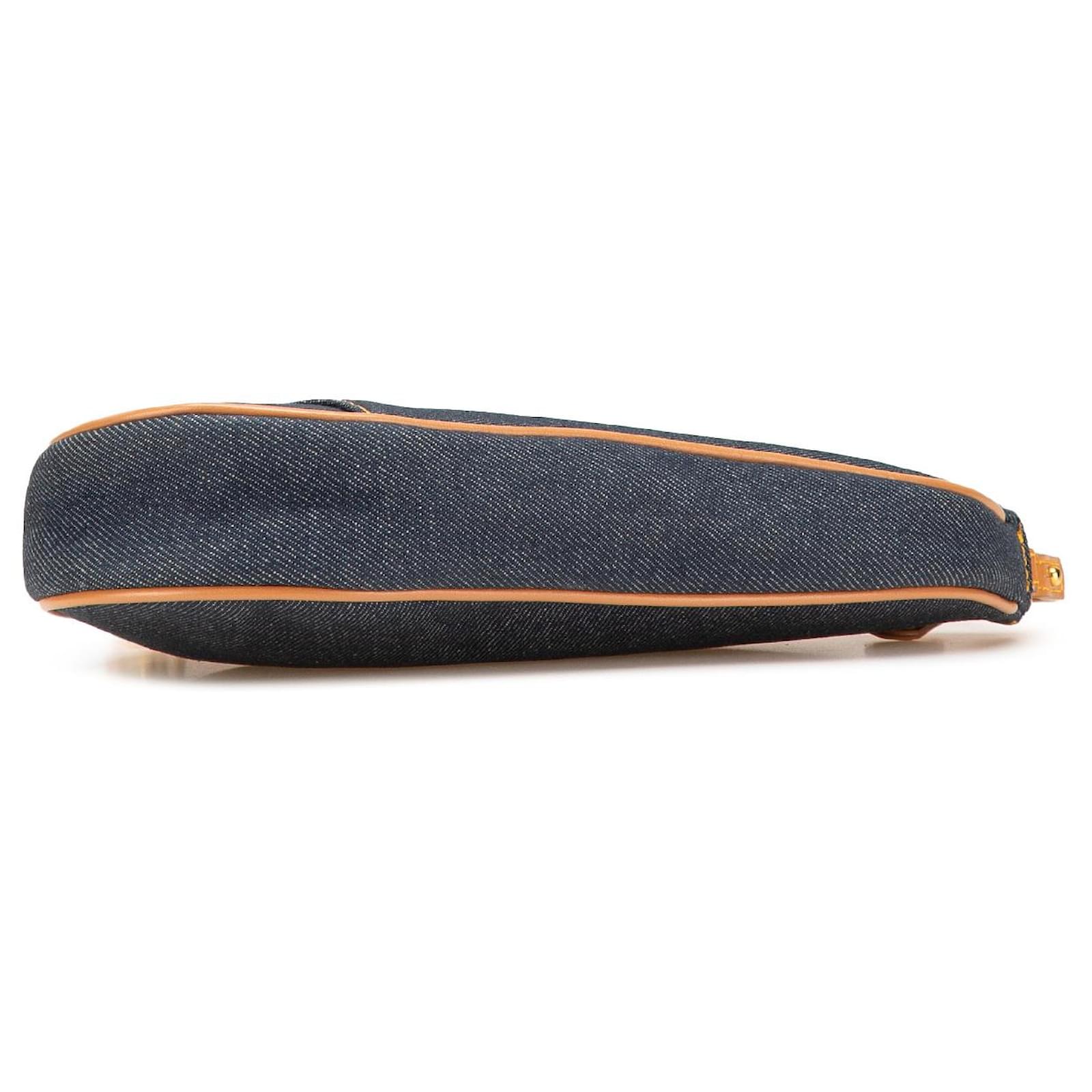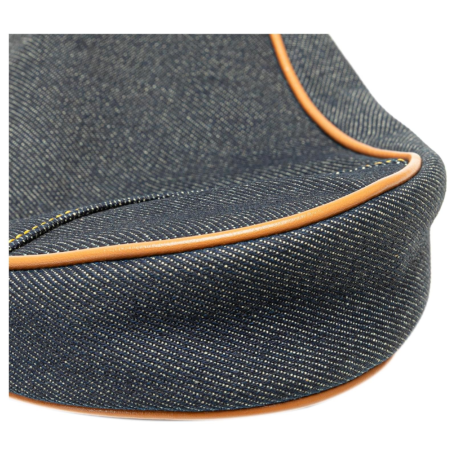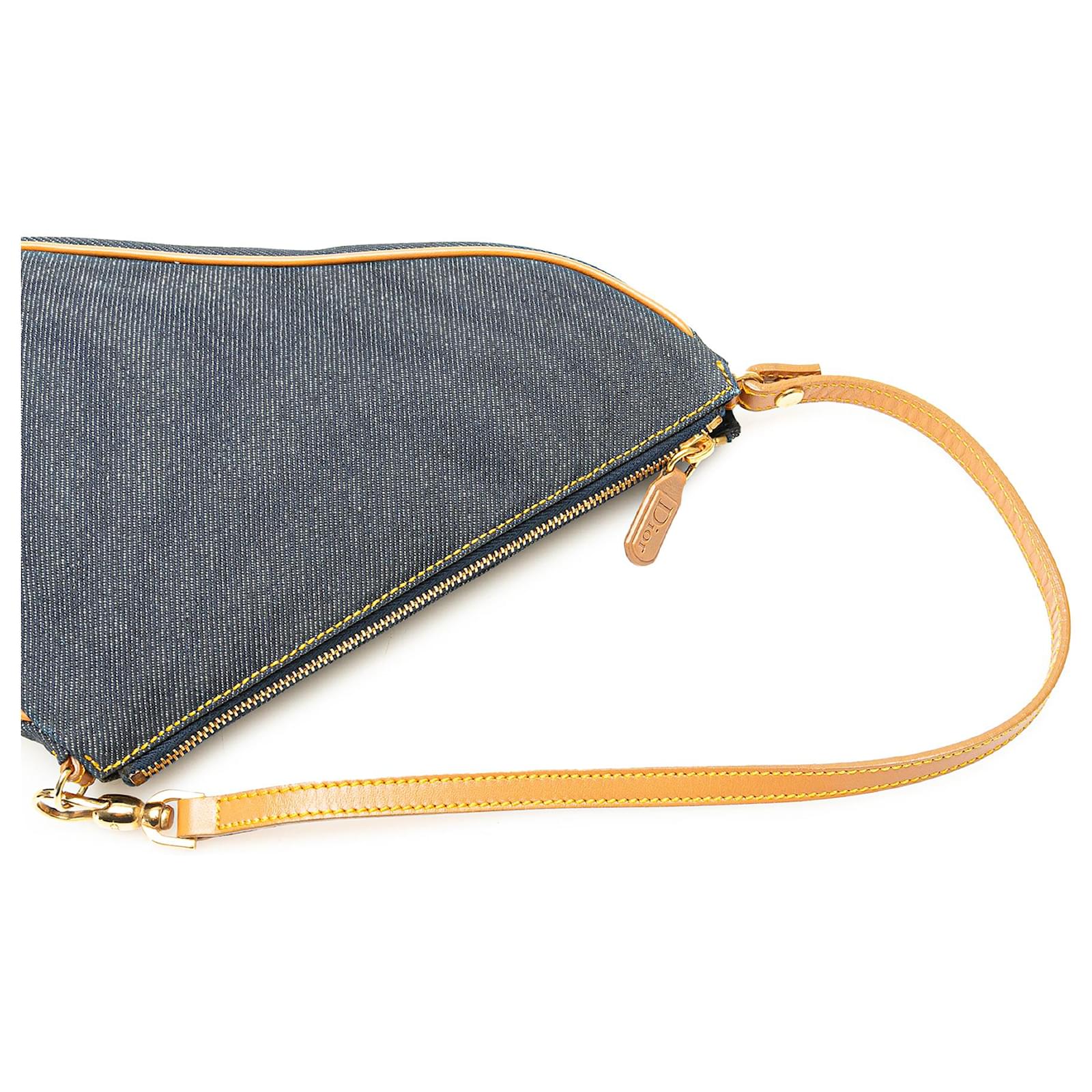 The Saddle Pochette features a denim body with leather trim, a flat leather strap, and a top zip closure. It carries a B+ condition rating.\r\n\r\nLock Scratched. Exterior Front stained with Other. Exterior Handle Cracked, Creased, Worn. Exterior Handle stained with Other. Interior Lining Cut Stitching. Interior Lining stained with Other. Practical Attachment Scratched. Exterior Side stained with Other. Exterior Top stained with Other. Zipper Scratched. \r\n\r\nDimensions: \r\nLength: 16 cm\r\nWidth: 21 cm\r\nDepth: 5 cm\r\nDrop: 18\r\n\r\nInclusions: No longer comes with original accessories.\r\n\r\nColor: Blue x Denim\r\n\r\nMaterial: Fabric x Denim\r\n\r\nCountry of Origin: Italy\r\n\r\nSerial: PZ0701\r\n\r\nBoutique Reference: PJC307693F956 \r\n