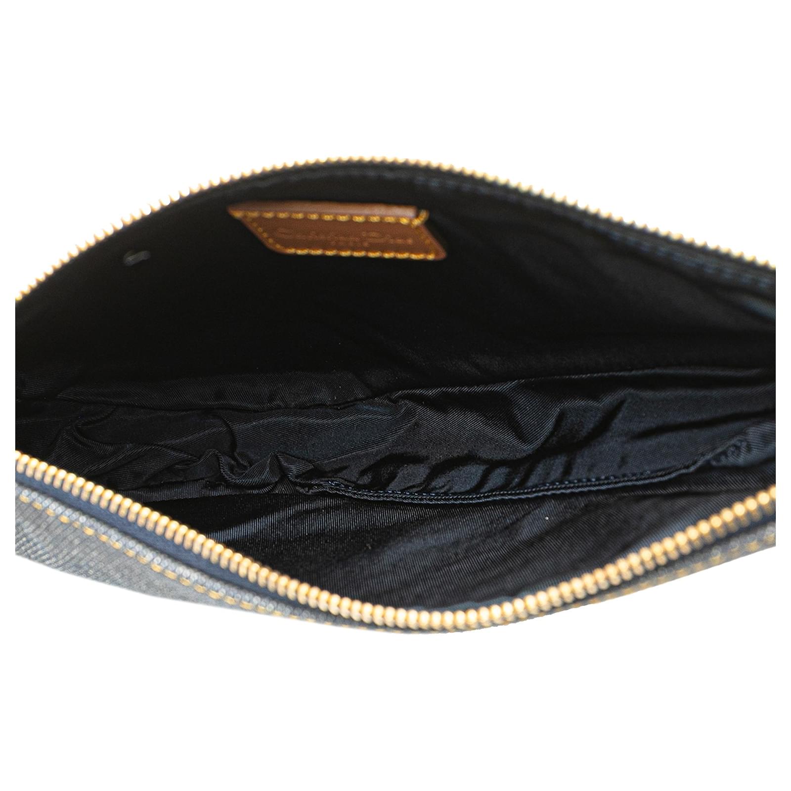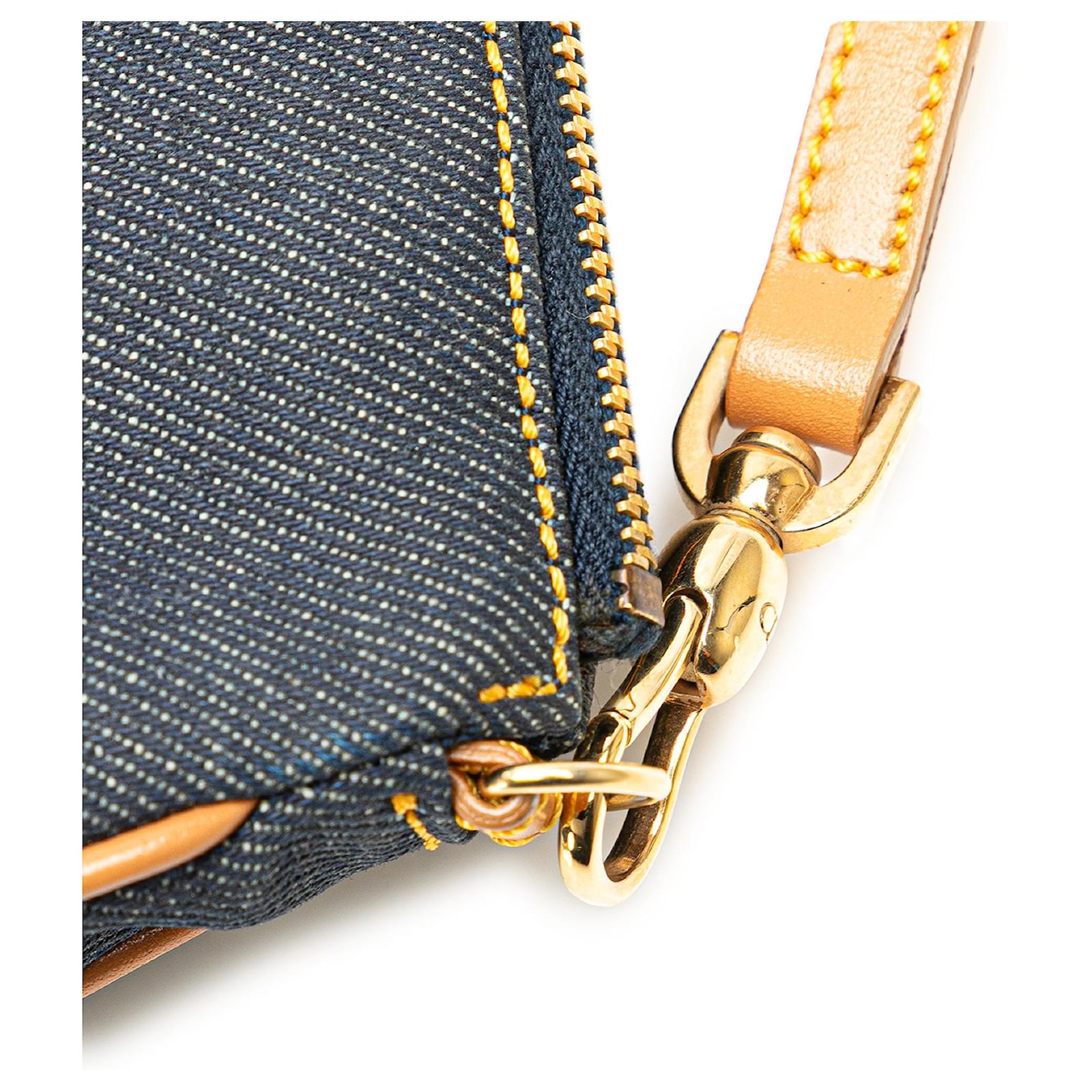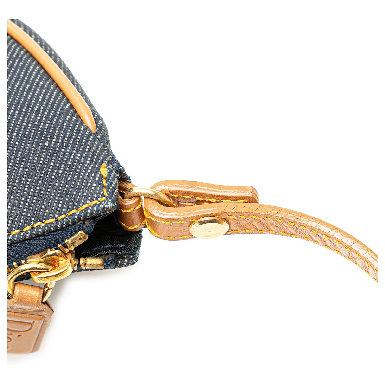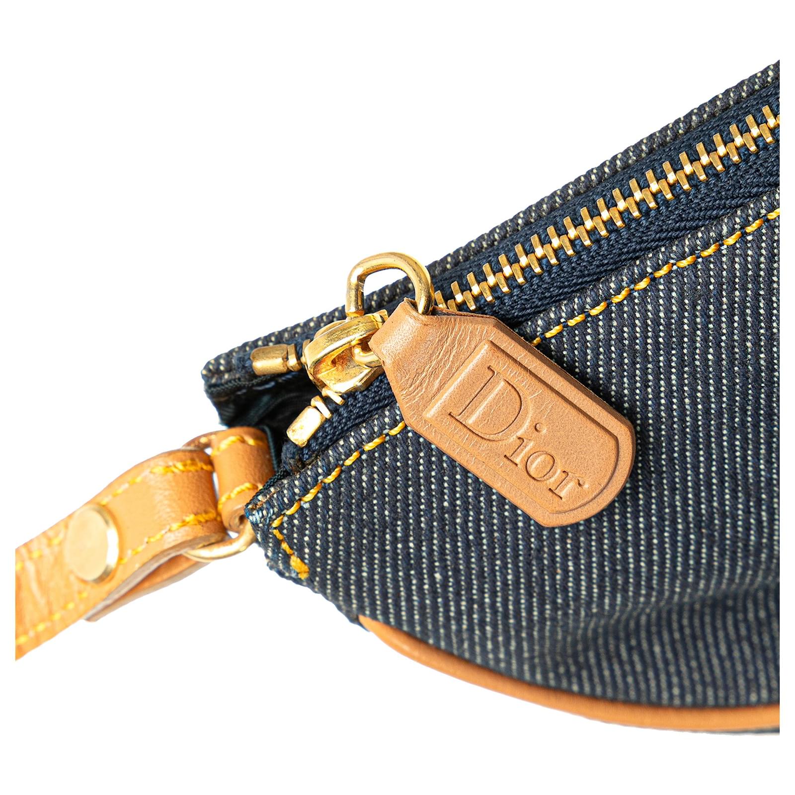 The Saddle Pochette features a denim body with leather trim, a flat leather strap, and a top zip closure. It carries a B+ condition rating.\r\n\r\nLock Scratched. Exterior Front stained with Other. Exterior Handle Cracked, Creased, Worn. Exterior Handle stained with Other. Interior Lining Cut Stitching. Interior Lining stained with Other. Practical Attachment Scratched. Exterior Side stained with Other. Exterior Top stained with Other. Zipper Scratched. \r\n\r\nDimensions: \r\nLength: 16 cm\r\nWidth: 21 cm\r\nDepth: 5 cm\r\nDrop: 18\r\n\r\nInclusions: No longer comes with original accessories.\r\n\r\nColor: Blue x Denim\r\n\r\nMaterial: Fabric x Denim\r\n\r\nCountry of Origin: Italy\r\n\r\nSerial: PZ0701\r\n\r\nBoutique Reference: PJC307693F956 \r\n