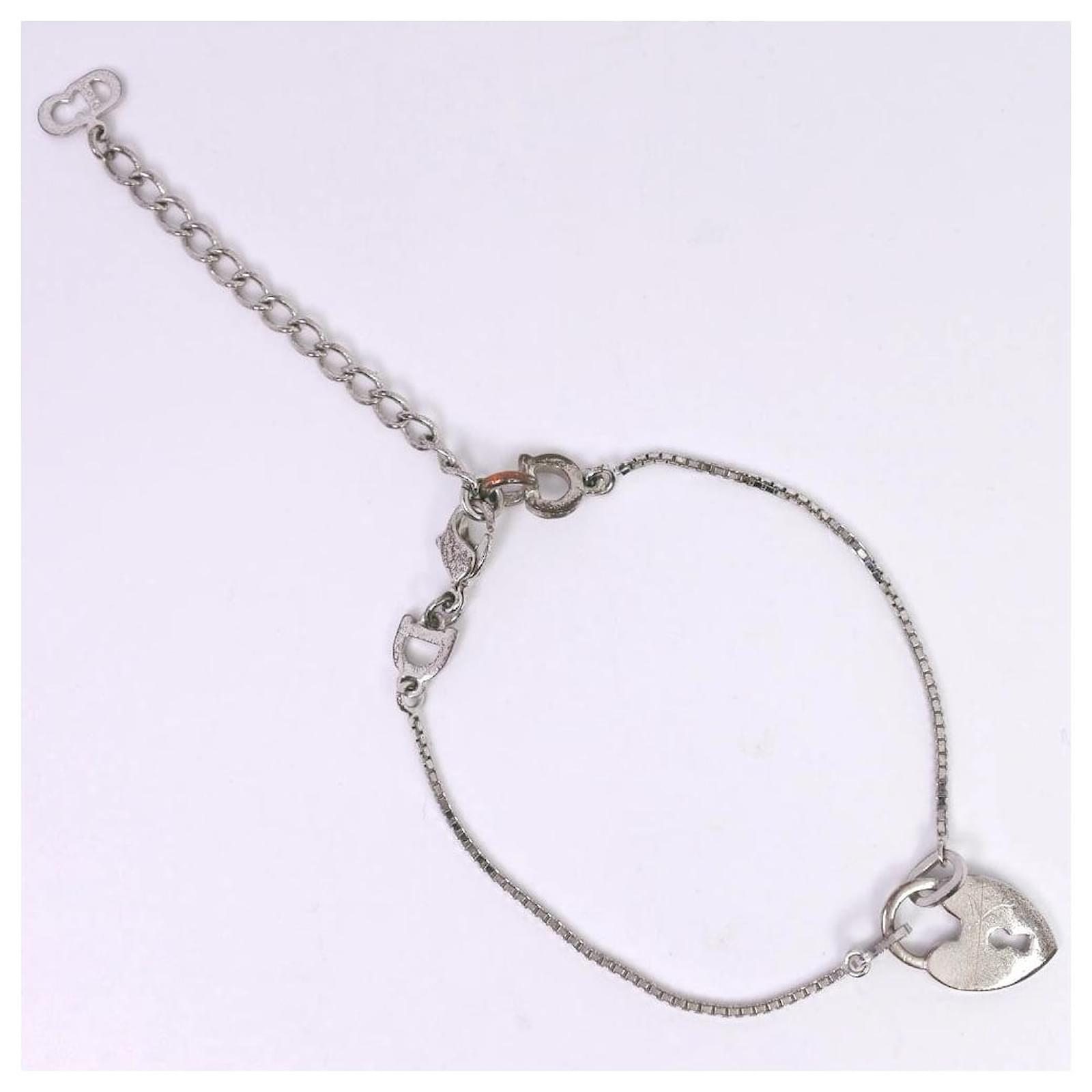 – General information -\nBrand : Dior\nItem name : Dior Silver Heart Key Bracelet\nModel number :\n- Design -\nType : Bracelet\nMaterial : Metal\nColor : Silver\nGender : Female\n- Size -\nSize :\nWeight : 5.2\n- Inventory -\nSerial Number : null\nSKU : 120240000215325A0025504972\n- Included Items -\nAccessories : null\n*Before purchasing, please refer to the images of the accessories included with the item.\n- Condition -\nCondition : Good Condition\nRank : Used A Used condition with obviously scratches and stains.\nCondition Notice : Before purchasing, please refer to the images for the exact condition of the item.