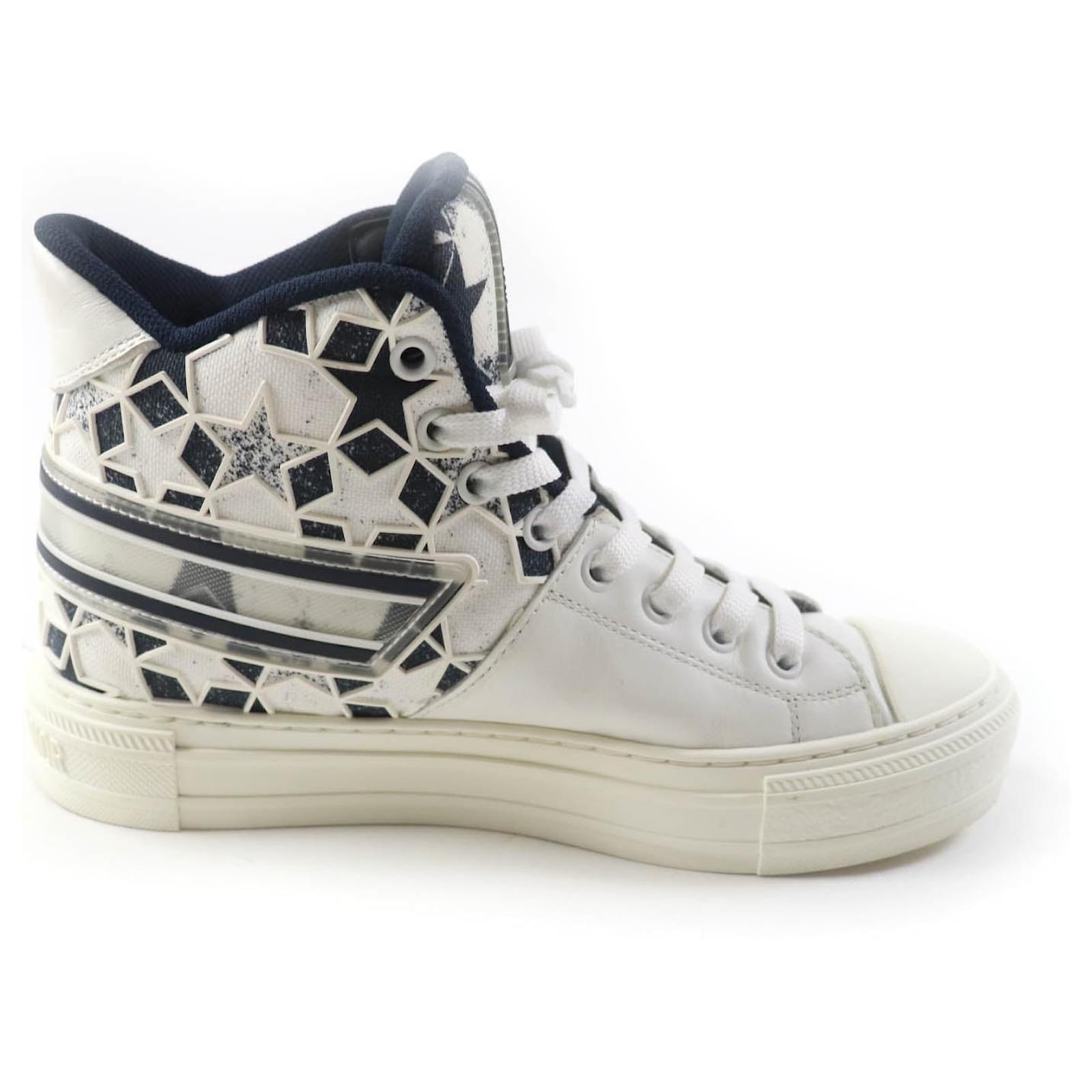 – General information – Brand : Dior Item name : Dior Star Canvas Leather High Cut Sneakers Model number : – Design – Type : Shoes Material : Canvas Color : White Gender : Female – Size – Size : Shaft height : 14 Instep width : 9 Insole total length : 25 Shoe size(JP) : 36 Color : White navy Material : Canvas leather – Inventory – Serial Number : null SKU : 120250000884400A0025478722 – Included Items – Accessories : null *Before purchasing, please refer to the images of the accessories included with the item. – Condition – Condition : Great Condition Rank : Used A Good used condition with slight scratches and stains. Condition Notice : Before purchasing, please refer to the images for the exact condition of the item.