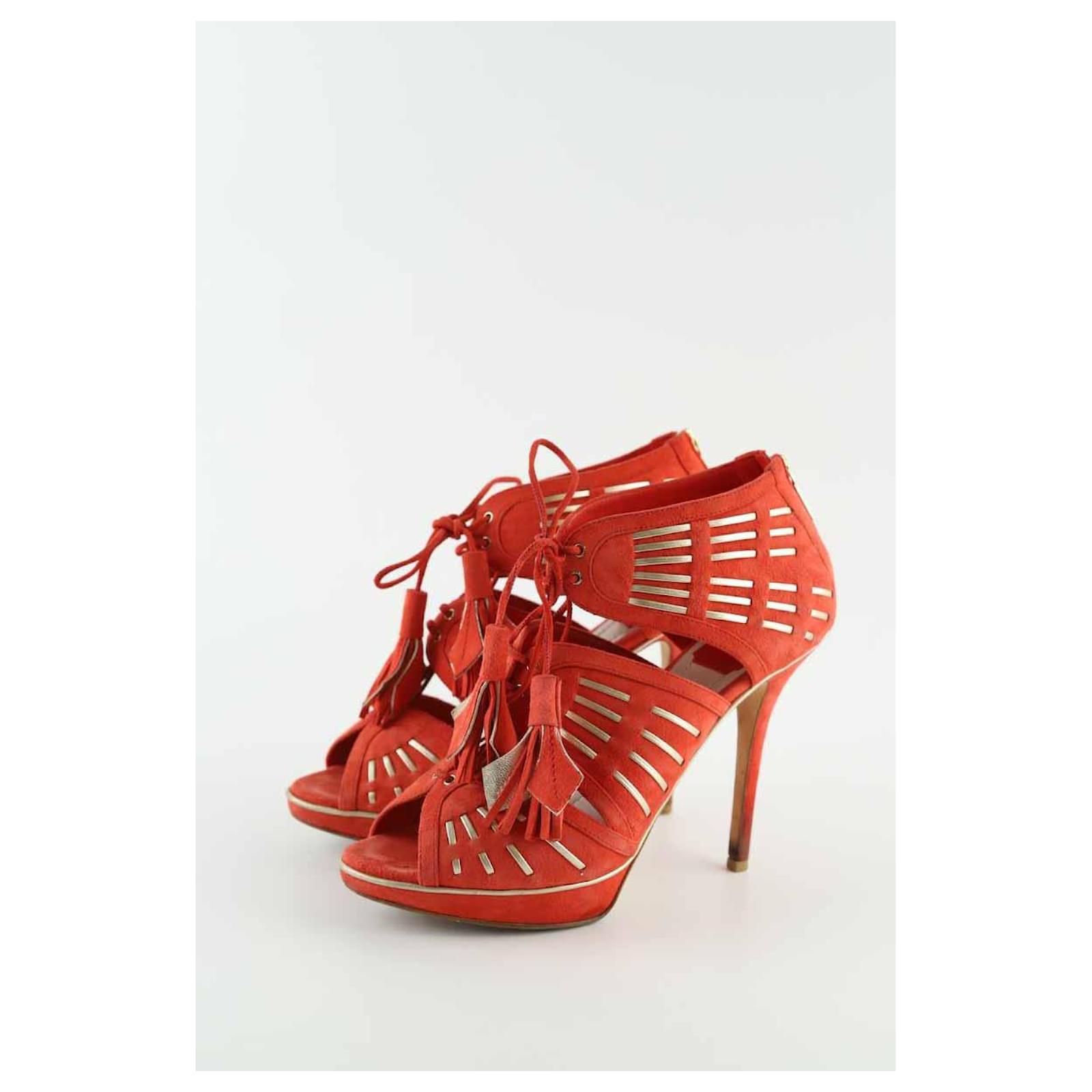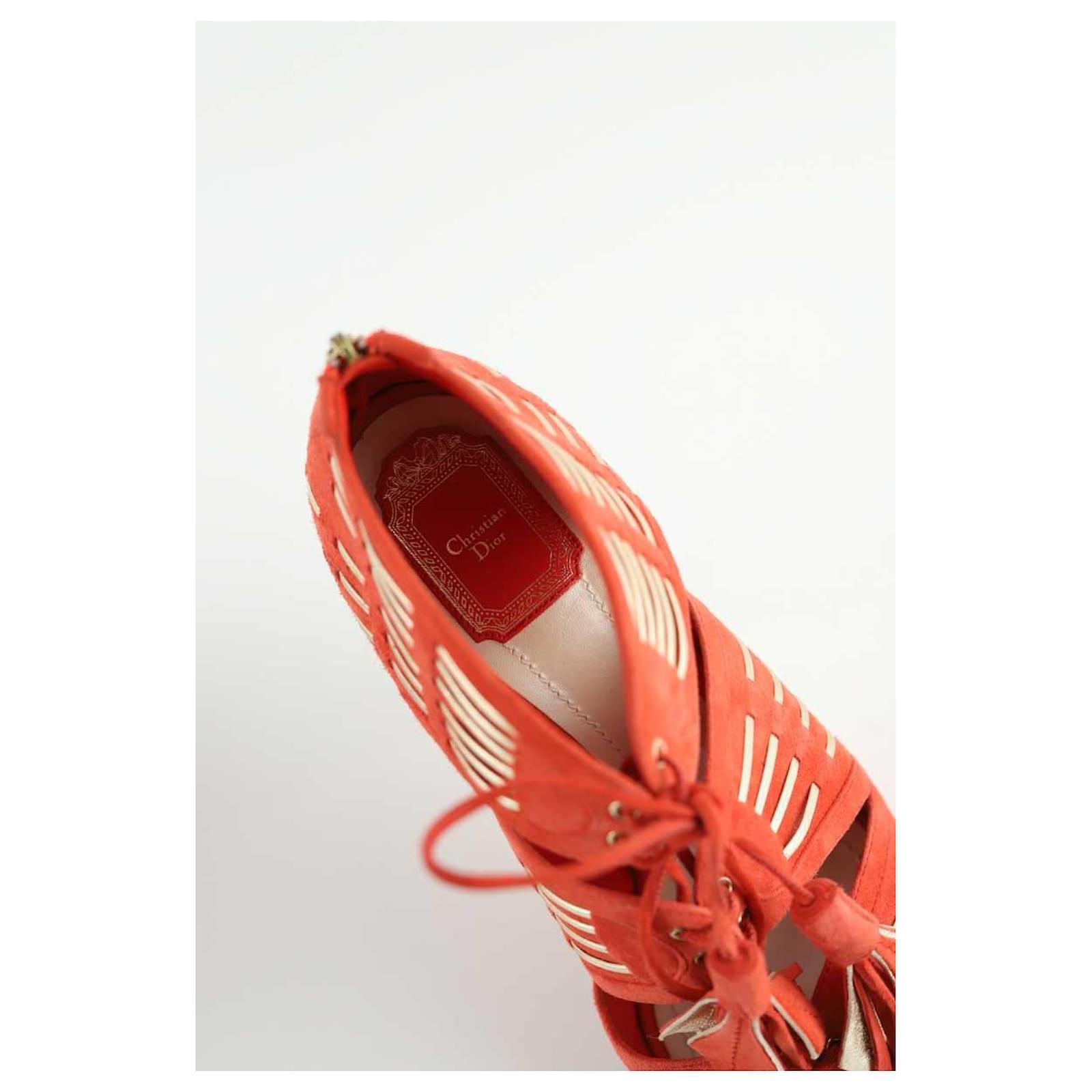 Second-hand orange Dior heels. Main material suede. Size 41. Heel height: 13cm. Women’s collection. Good condition. Signs of wear. Reference: 040880003.