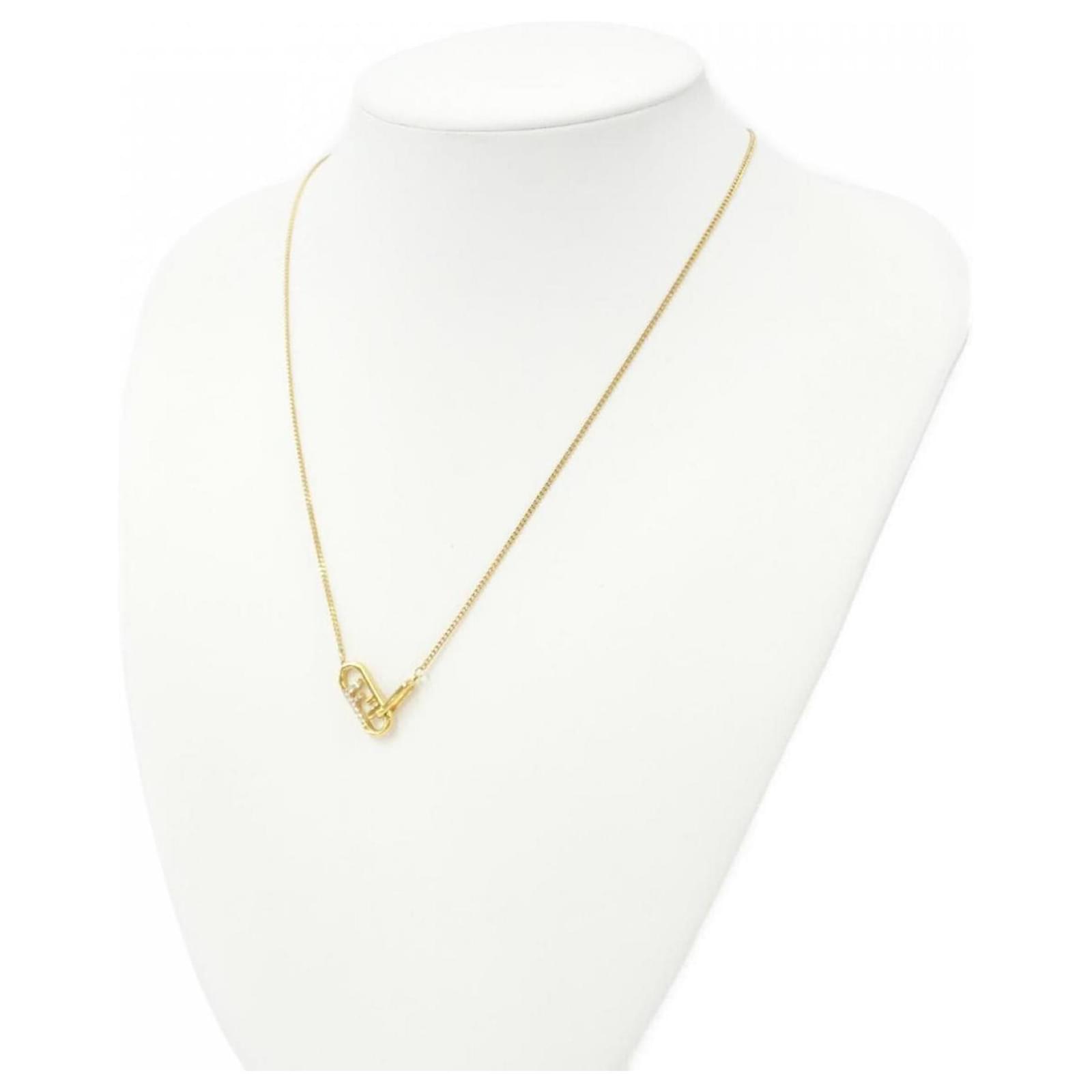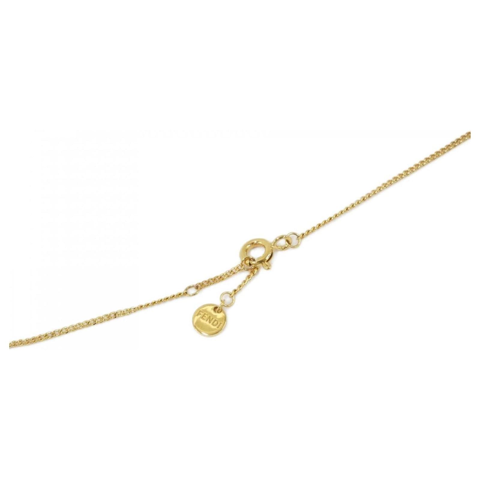 The Fendi 8AH321 A44G Necklace features a crystal stone and is designed as a classic necklace. The pendant measures 7mm x 25mm (0.27” x 0.98”), and the neck circumference ranges from 45 cm to 47 cm (17.71” to 18.5”). This item is in very good used condition, classified as Rank A, with only slight traces of use, including insignificant scratches and dirt. It comes with a box, and potential buyers are encouraged to review the images for a detailed view of the item’s condition and included accessories.