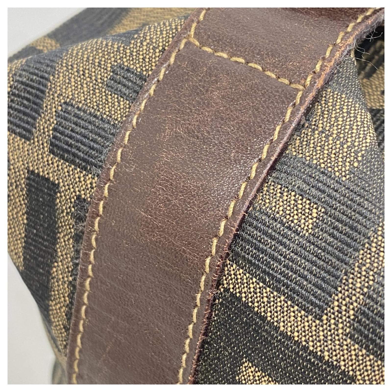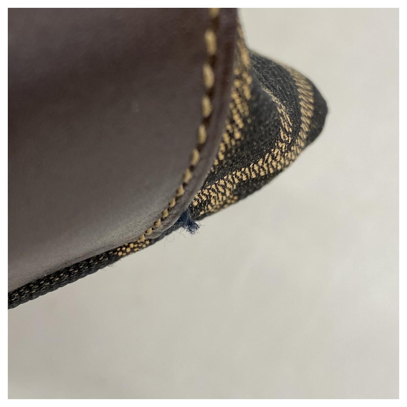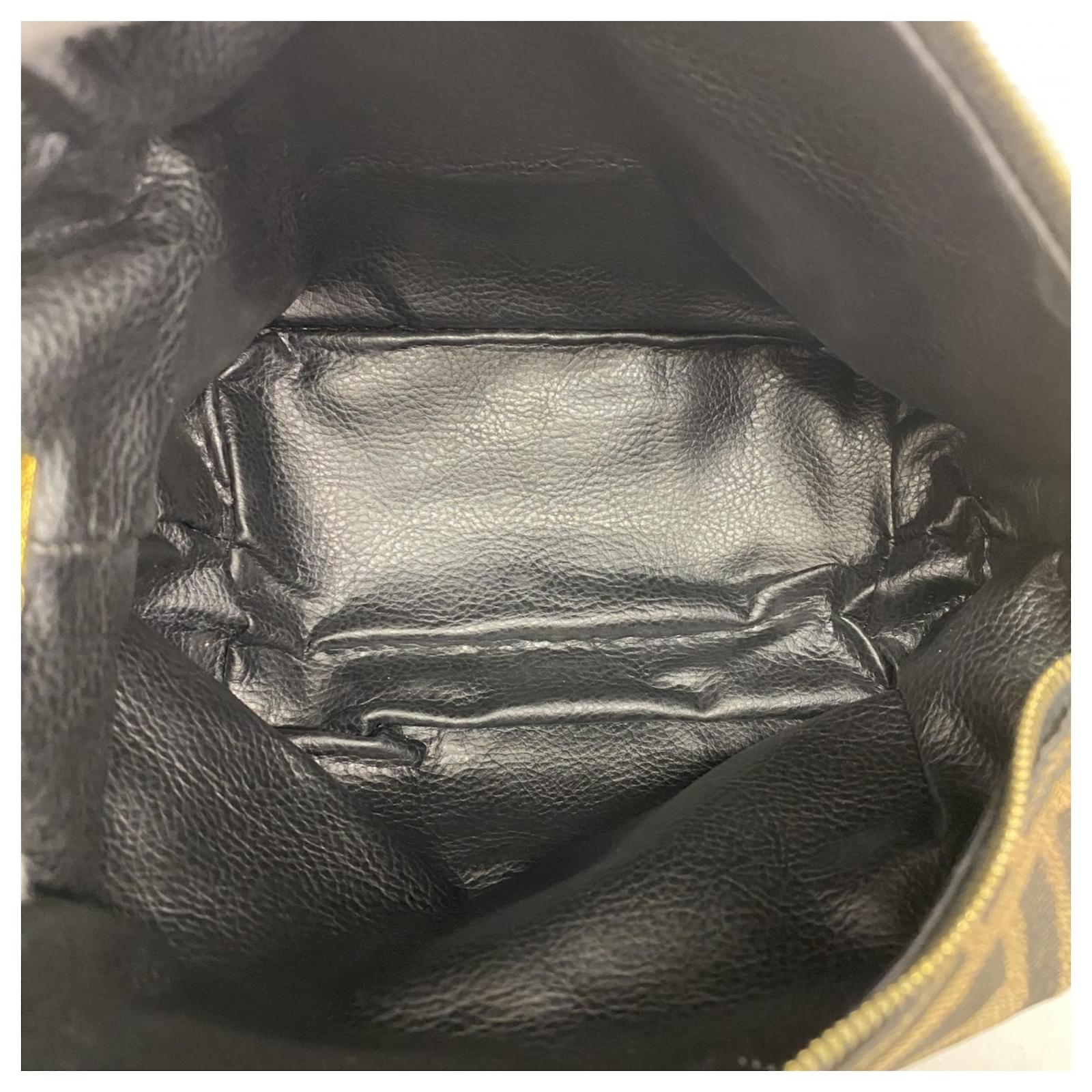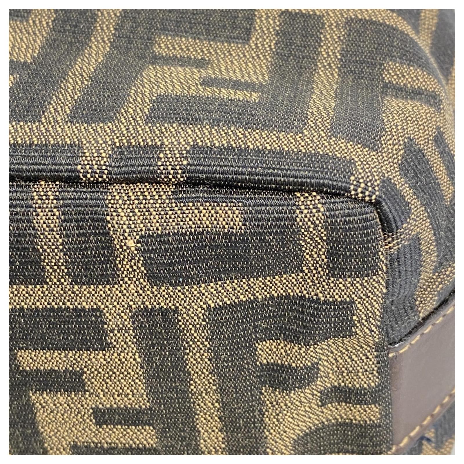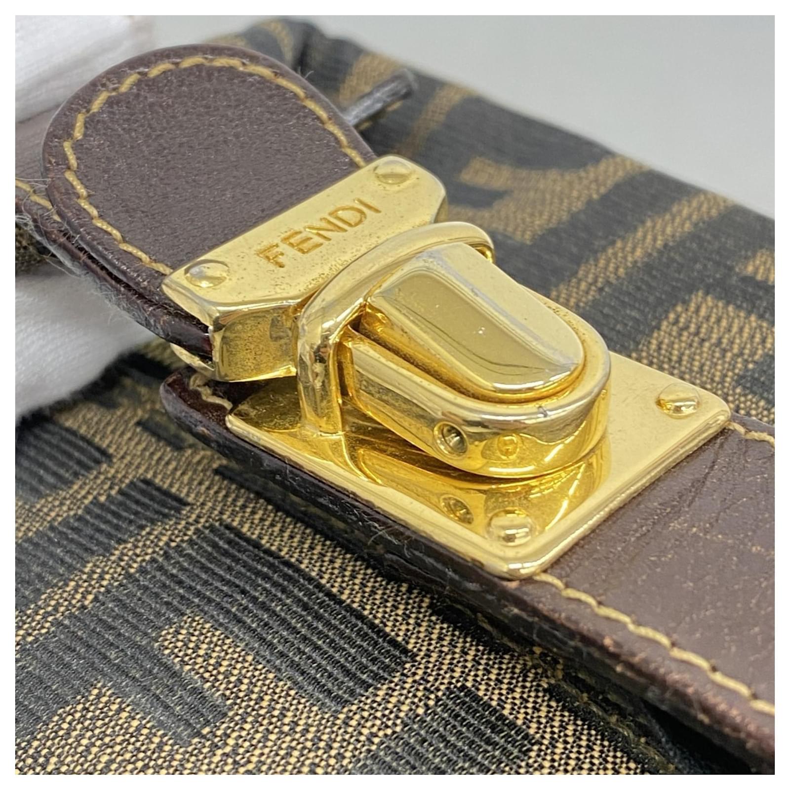 This Fendi pouch is crafted from brown nylon canvas and features gold hardware, making it a stylish accessory for everyday use. Measuring 10cm x 14.5cm x 10cm (approximately 3.93” x 5.7” x 3.93”), it is designed for practicality while maintaining a chic appearance. \n\nThe pouch is classified as used but remains in good condition, with slight traces of usage, scratches, and dirt. It is advisable to review the provided images for a clear understanding of its condition. Please note that no additional accessories are included with this item.