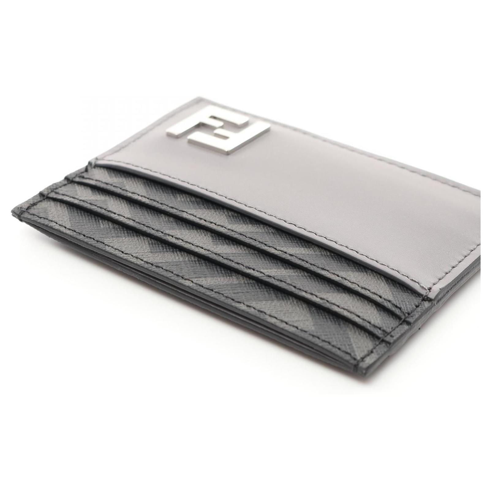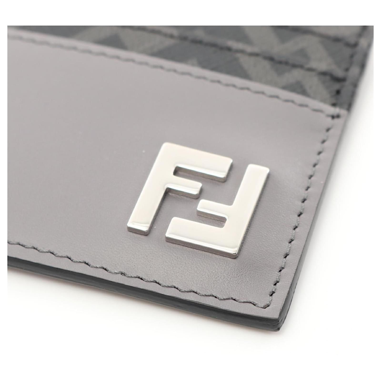 Brand Name: Fendi; Condition: Pristine; Category: Wallet; SubCategory: Card Case; Product Name: Fendi FF Logo Card Case Leather PVC; Model Number: 7M0164AFF2F; Style: Gentleman; Height (cm): 8; Width (cm): 0.3; Length (cm): 10; Color: Grey; Material: Leather × PVC Coated Canvas; Measurments: width: 3 mm length: 100 mm height: 80 mm \n Product Id: 515827 \n