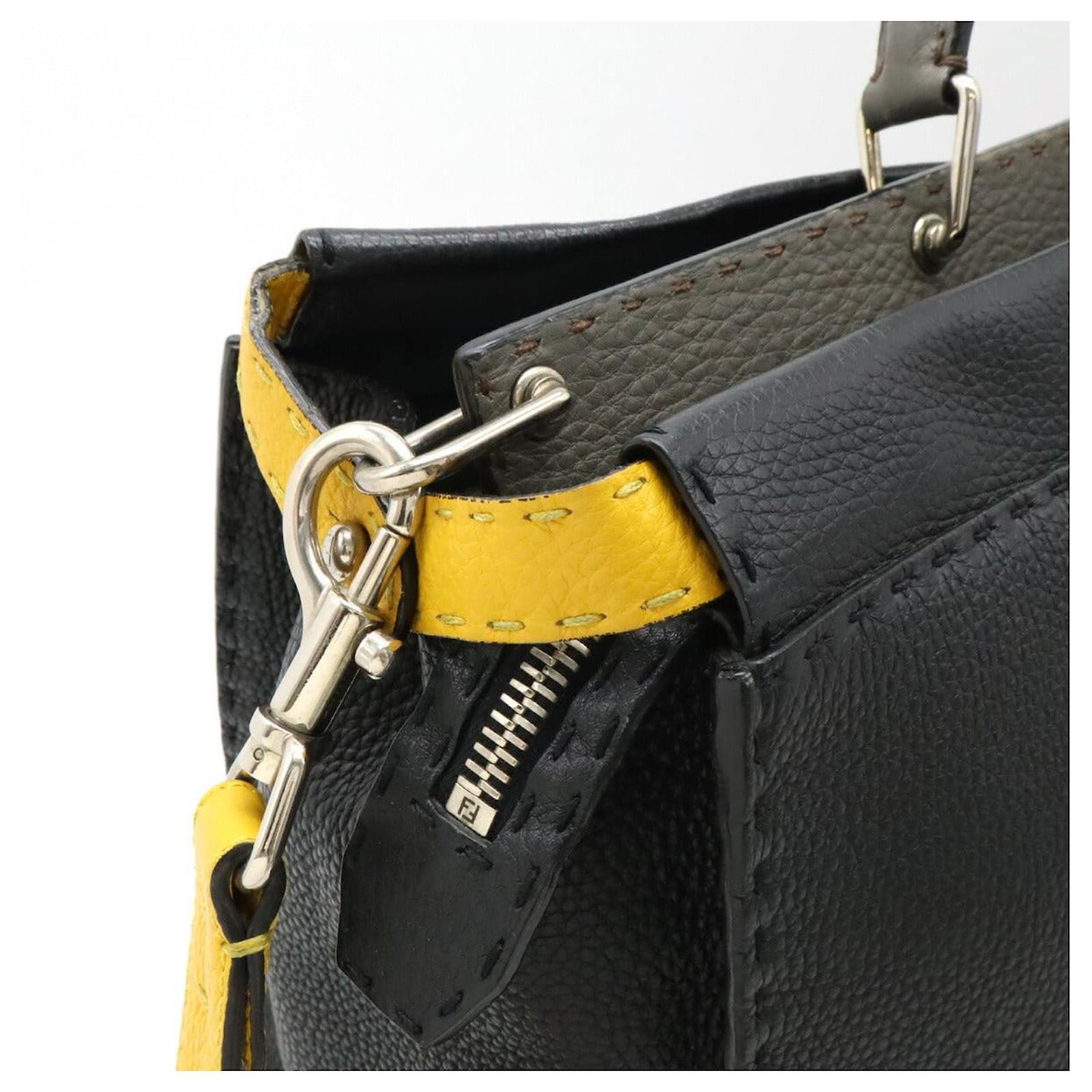 – General information -\nBrand : FendiItem name : Fendi Peekaboo Sellaria Leather 2way BriefcaseModel number : 7VA388 – Design -Type : Business BagMaterial : LeatherColor : BlackGender : Male- Size -Size : Length : 40.5Depth : 17Height : 30Shoulder strap : 113Item Material : leatherItem Series : PeekabooItem Color : Black/YellowInterior : Divider x 1, Zipper pocket x 1, Pocket x 1- Inventory -Serial Number : SKU : 120210026946000A0025790179- Included Items -Accessories : Shoulder Strap*Before purchasing, please refer to the images of the accessories included with the item.- Condition -Condition : Very Good ConditionRank : Used A Used condition with some scratches and stains.Condition Notice : Before purchasing, please refer to the images for the exact condition of the item. Measurments: width: 170 mm length: 405 mm height: 300 mm strap length: 1130 mm \n Product Id: 508476 \n