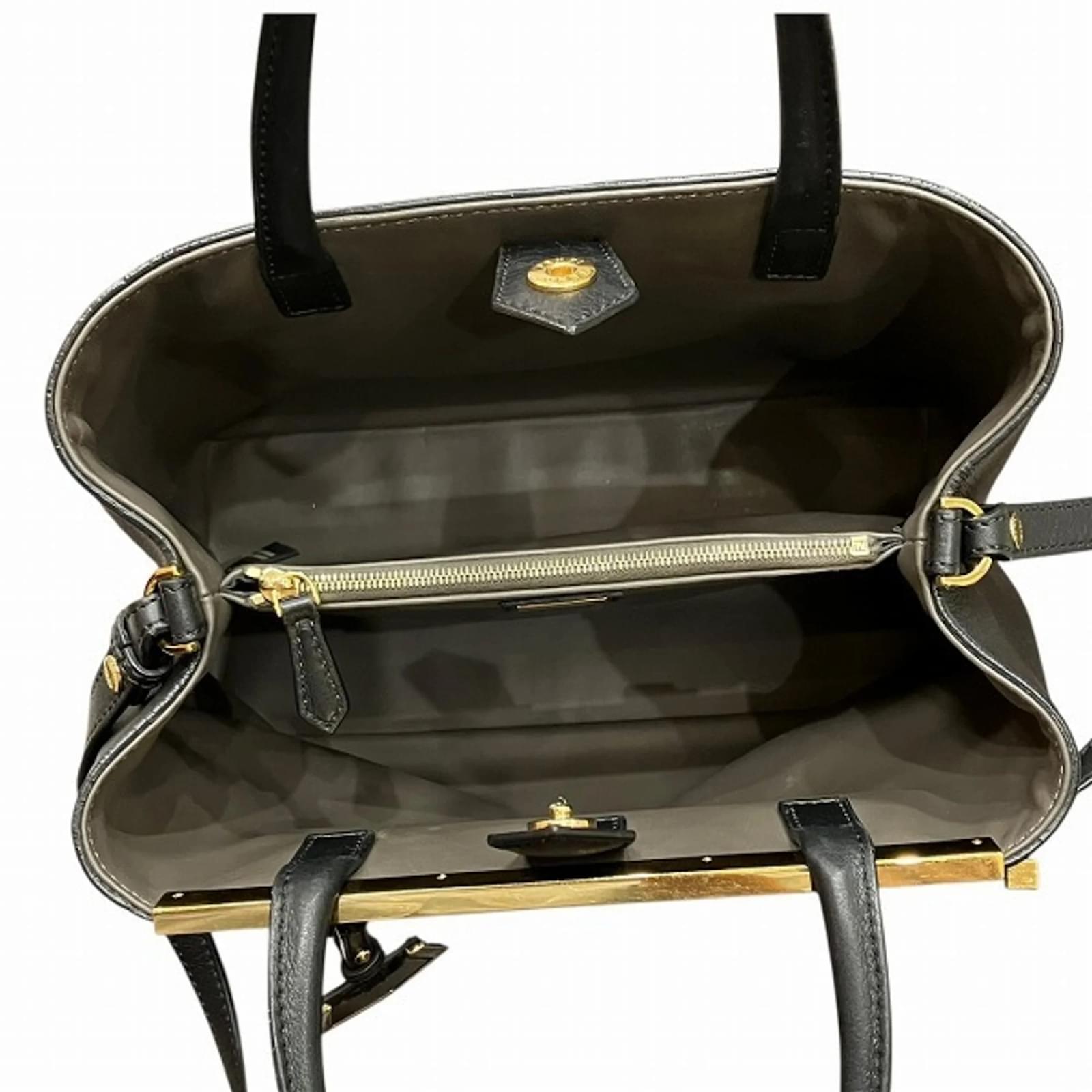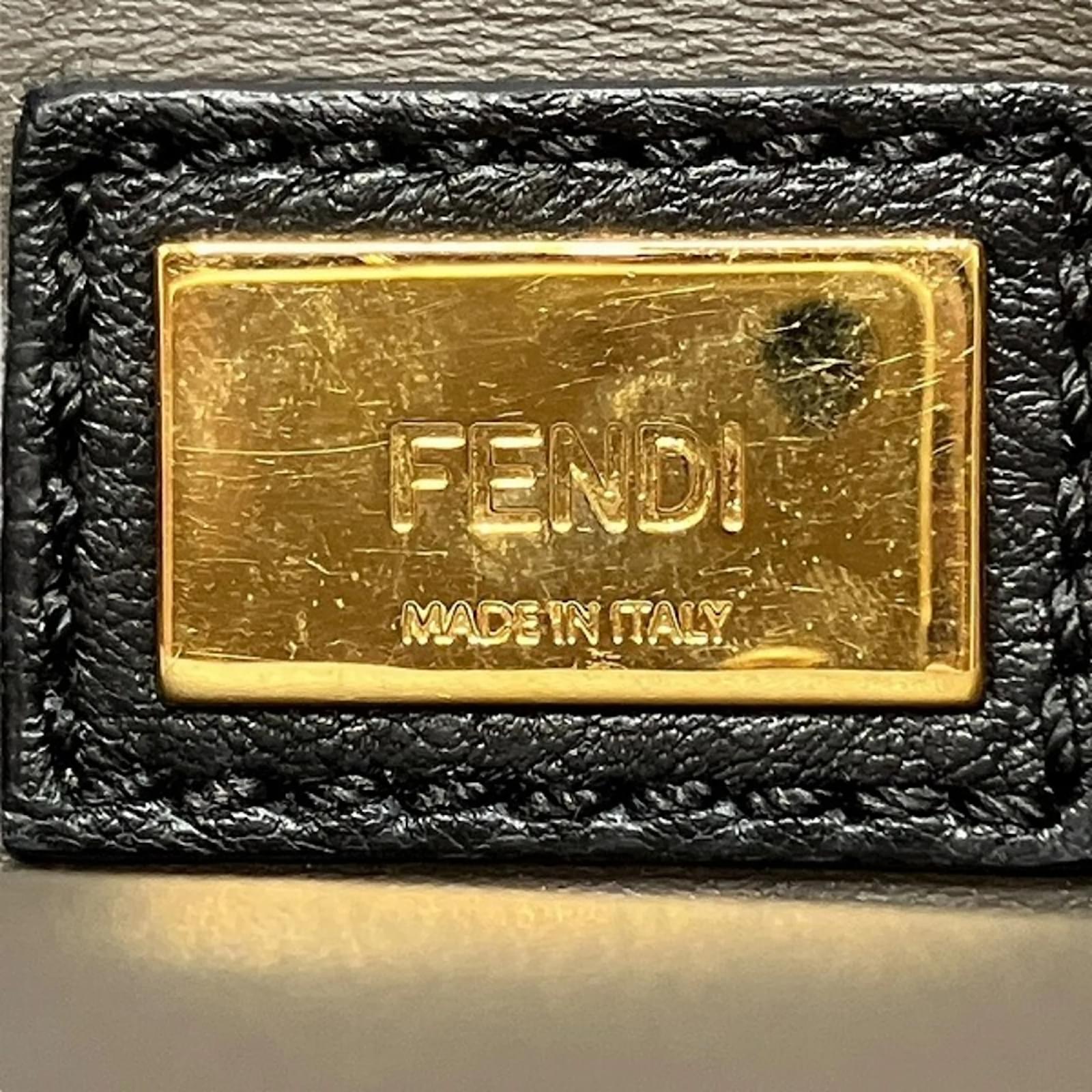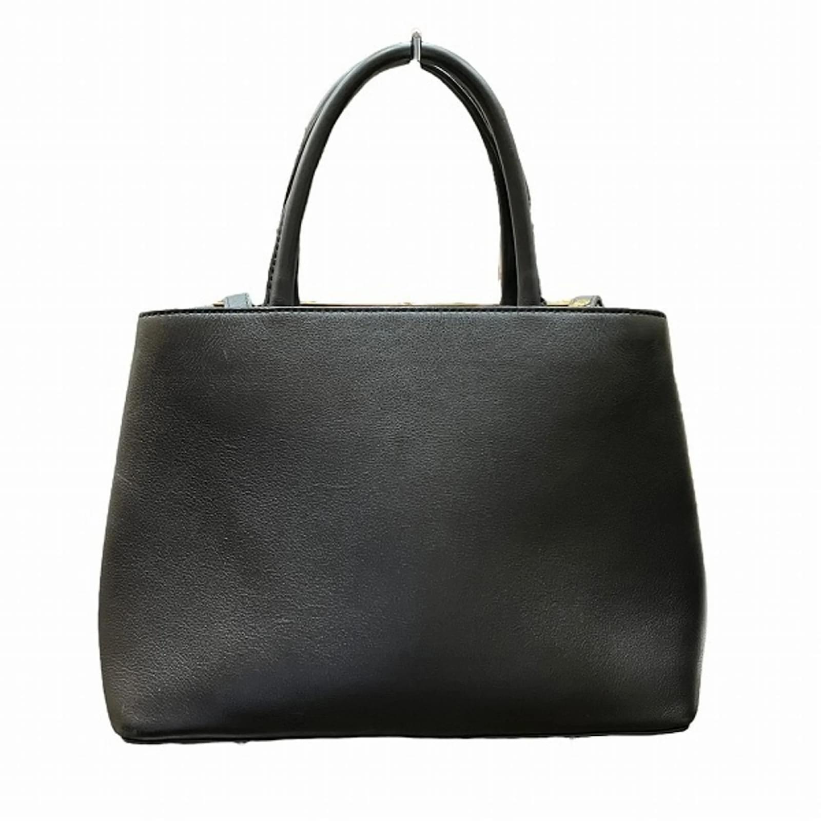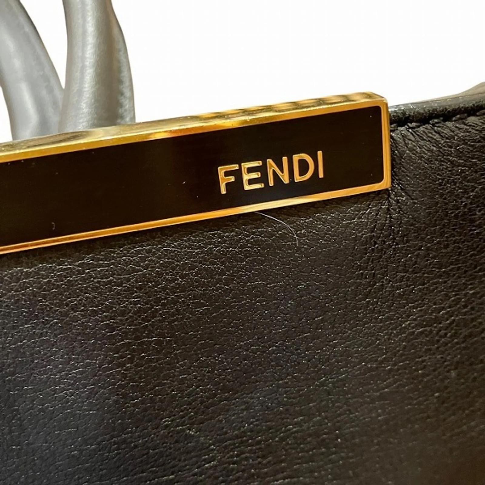 The Fendi Petit Two Jours handbag, model code 8BH253, is a stylish accessory designed for women. This shoulder bag is crafted from black leather, offering a sleek and sophisticated look. It measures 20cm in height, 27cm in width, and 13cm in depth, with a handle length of 31cm and an adjustable strap that ranges from 110cm to 122cm. \n\nThis item is pre-owned and classified as being in good condition, with some visible traces of usage, including slight scratches and dirt. The overall exterior may show minor cracks and misshaping, while the interior exhibits some wear. Potential buyers are encouraged to review the provided images for a detailed view of the bag’s condition and included accessories.