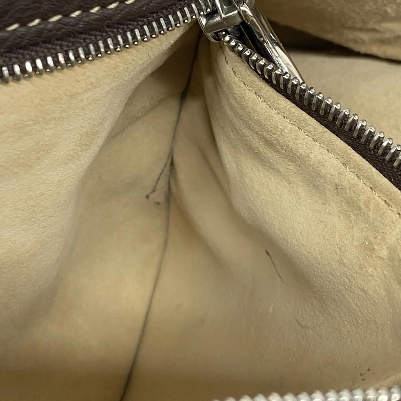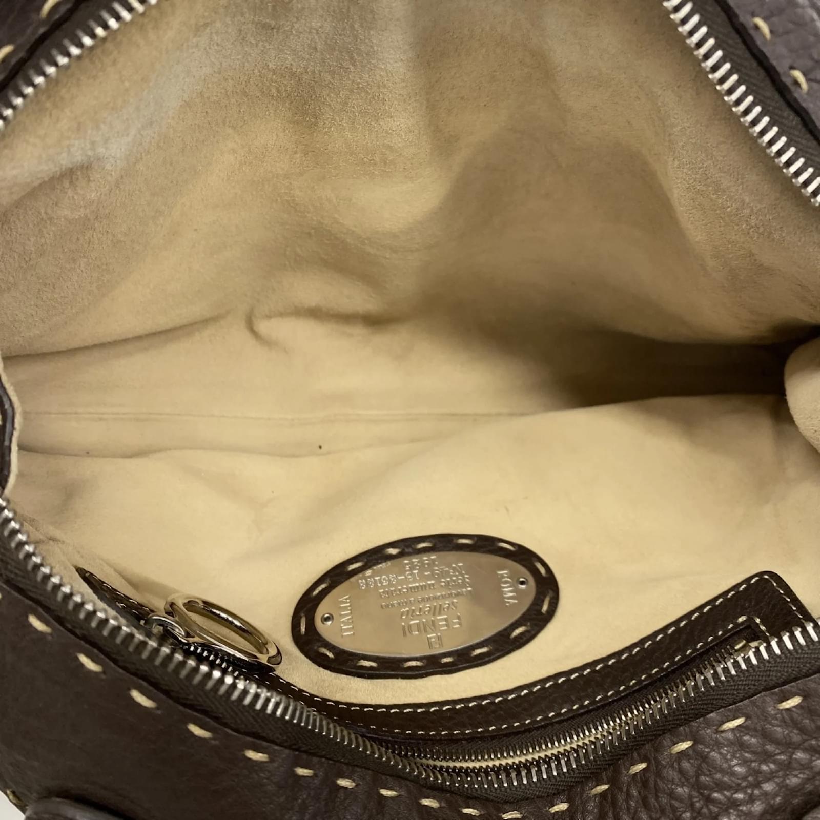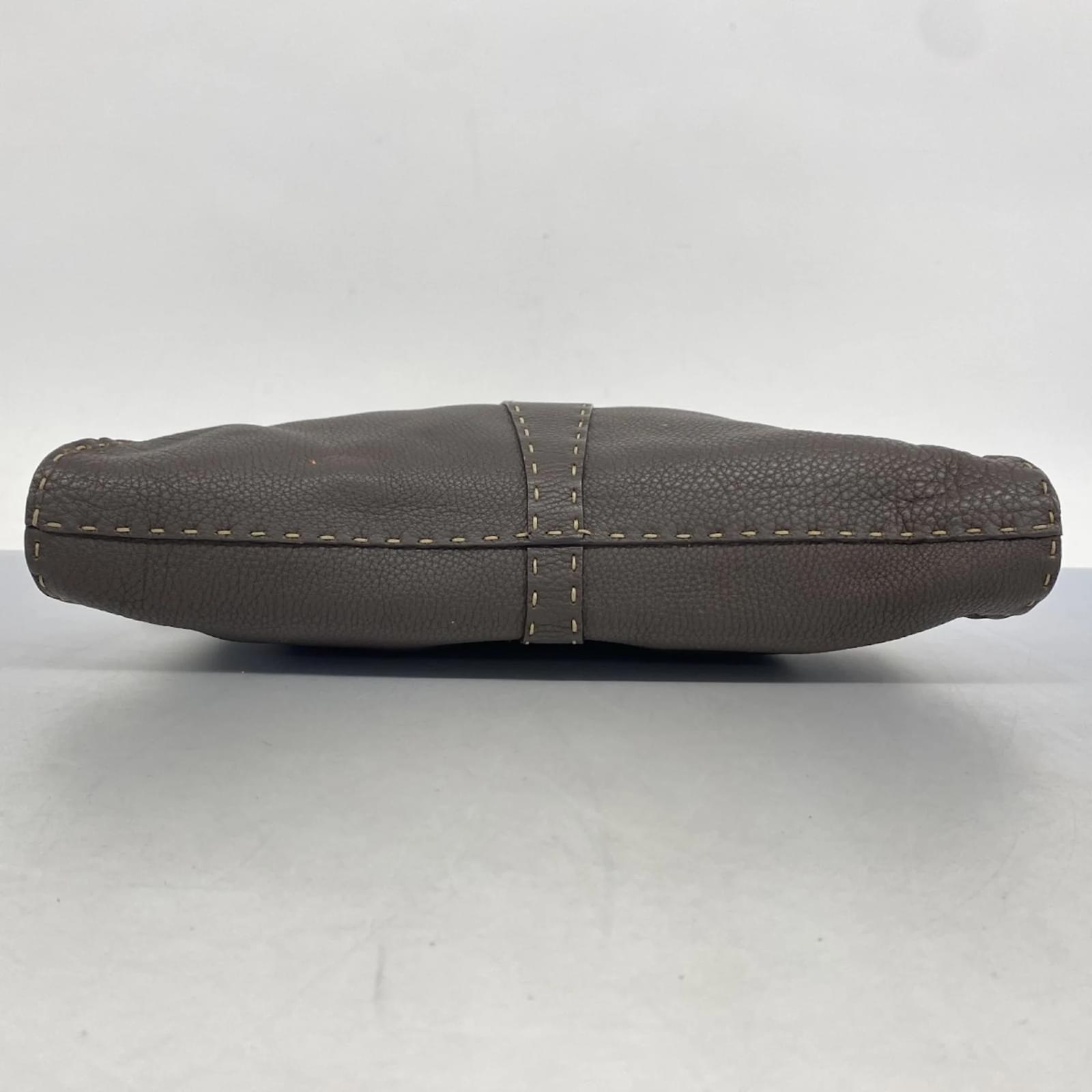 This Fendi handbag is crafted from brown Selleria leather and features silver hardware. With dimensions of 20cm x 34cm x 6cm, it is designed for everyday use. The bag is classified as used but remains in good condition, showing slight traces of use, including minor scratches and dirt. It is important to review the provided images for a clear understanding of its condition. No additional accessories are included with this item.