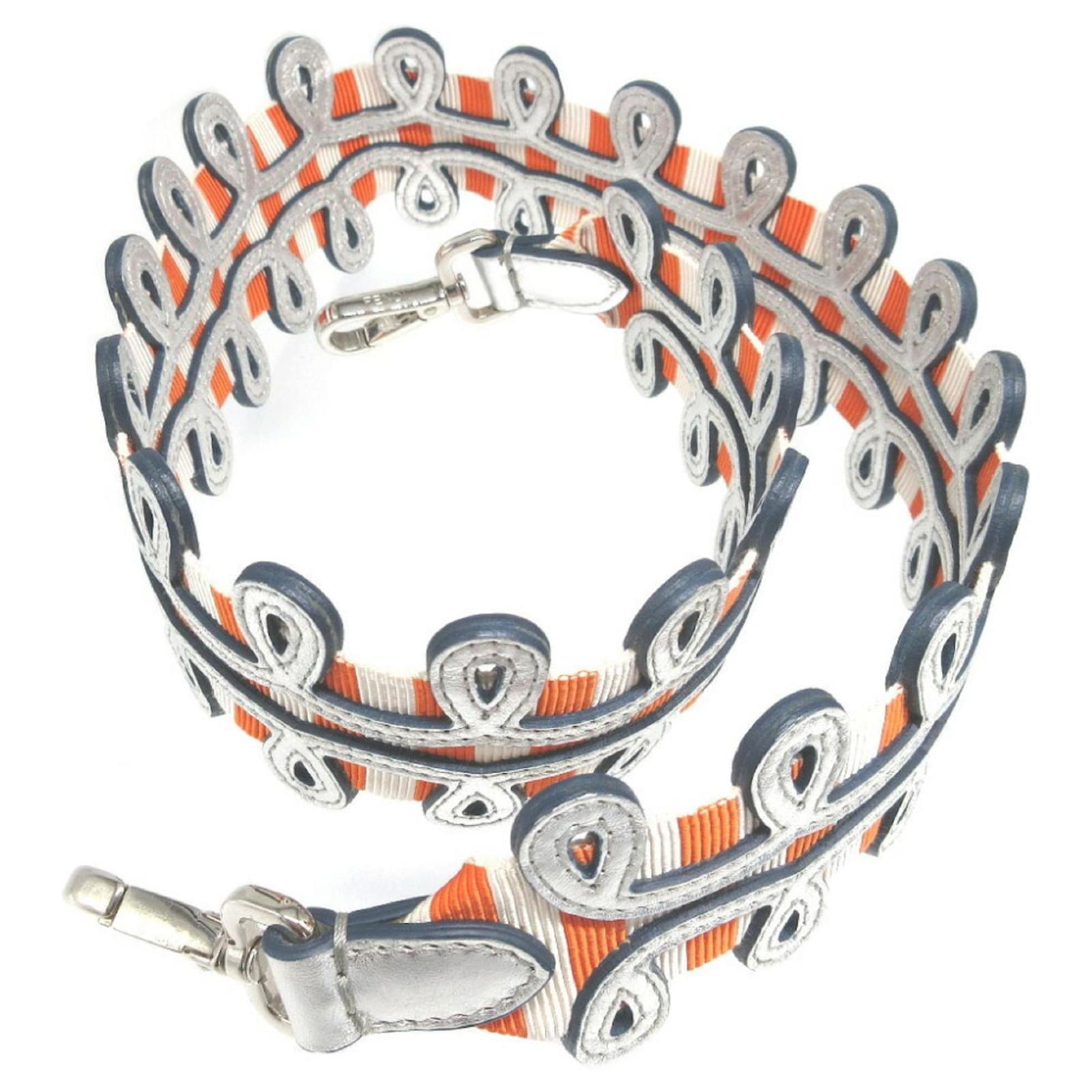 This Fendi Strap You shoulder strap features a combination of orange and silver colors, crafted from durable canvas and leather materials. Measuring 90cm in length and 6.5cm in width, it is designed for versatility and style. The item is classified as used but is in like-new condition, with insignificant traces of use, scratches, and dirt. It is important to review the provided images for a clear understanding of the item’s condition. No additional accessories are included with the strap.