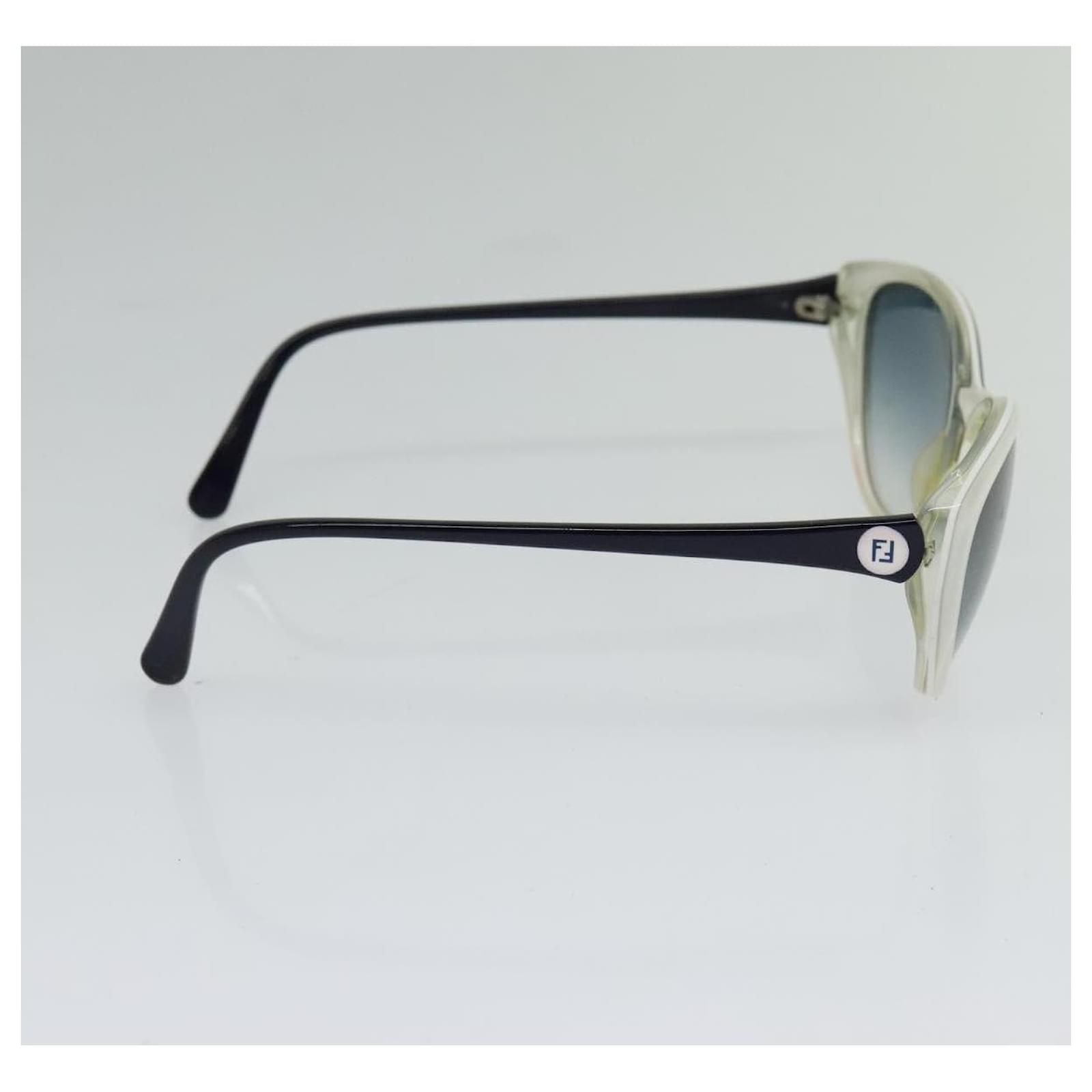 BRAND : FENDI\n Color : White\n Material : Plastic \n Size(cm) : W13.5cm x H4.8cm(Approx)\n Size(inch) : W5.3 x H1.9inch(Approx)\n Style : Sunglasses\n Accessory : There is no item box and dust bag. We will send only the item which is put in the photo.\n Product No. : -\n Serial No. : ** **\n Made in : -\n RANK : C\n SKU : bs26338\n Condition : \n Outside : SurfaceFscratches\n Metal fittingsFscratches\n Inside : -\n Pocket : -\n Corners : -\n Odor : There is keeping(storage) smell.\n Other Remarks : –