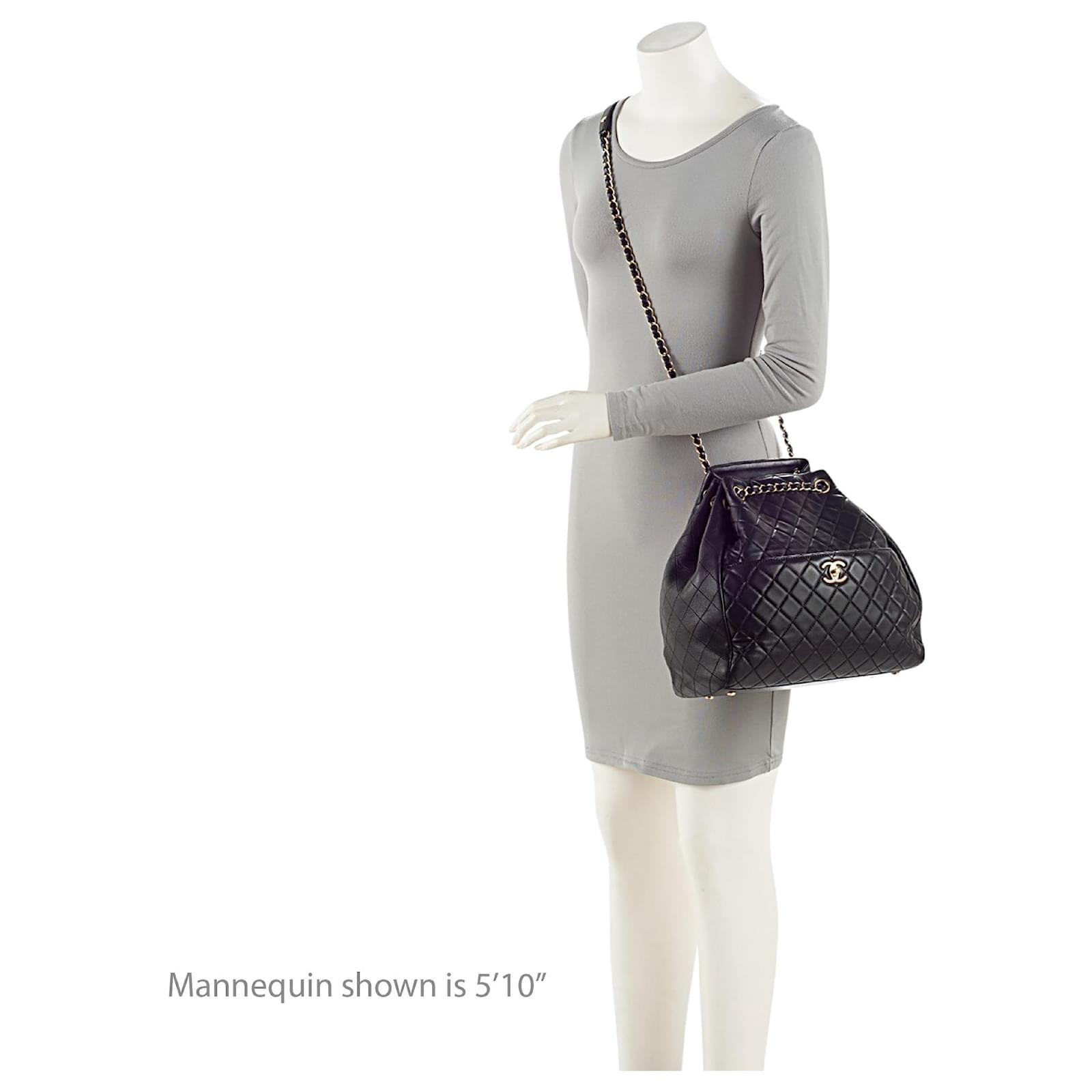 The interlocking CC logo is synonymous with elegance and high French style. Gabrielle \”Coco\” Chanel first opened a Parisian millinery shop in the early 1900s. By the 1920s she was revolutionizing the world of women’s fashion. World-renowned fashion icon Karl Lagerfeld was the creative director from 1983 until his death in 2019. New Creative Director Virginie Viard, had worked alongside Karl for 32 years. The House of Chanel continues to set the standard for designer quality and desirability.Condition Notes: Creasing throughout exterior causing light loss of structure. Scuffs to exterior bottom corners. Light creasing and scuffs throughout lambskin woven into shoulder strap. Visible surface scratches to hardware. Marks and wear throughout interior. Peeling to interior hologram.Width (at base): 11\”Height: 11.25\”Depth: 5\”Shoulder Strap Drop: 10\”, 21.5\”Circa: 2016 – 2017Type of Material: LambskinColor: BlackLining: Black Fine TextilePockets: Three Interior, One ExteriorHardware: Gold ToneClosure: Magnetic SnapOrigin: ItalyIncludes: Dust Bag Measurments: width: 279 mm height: 285 mm strap length: 546.1 mm handle drop: 254 mm \n Product Id: 509146 \n
