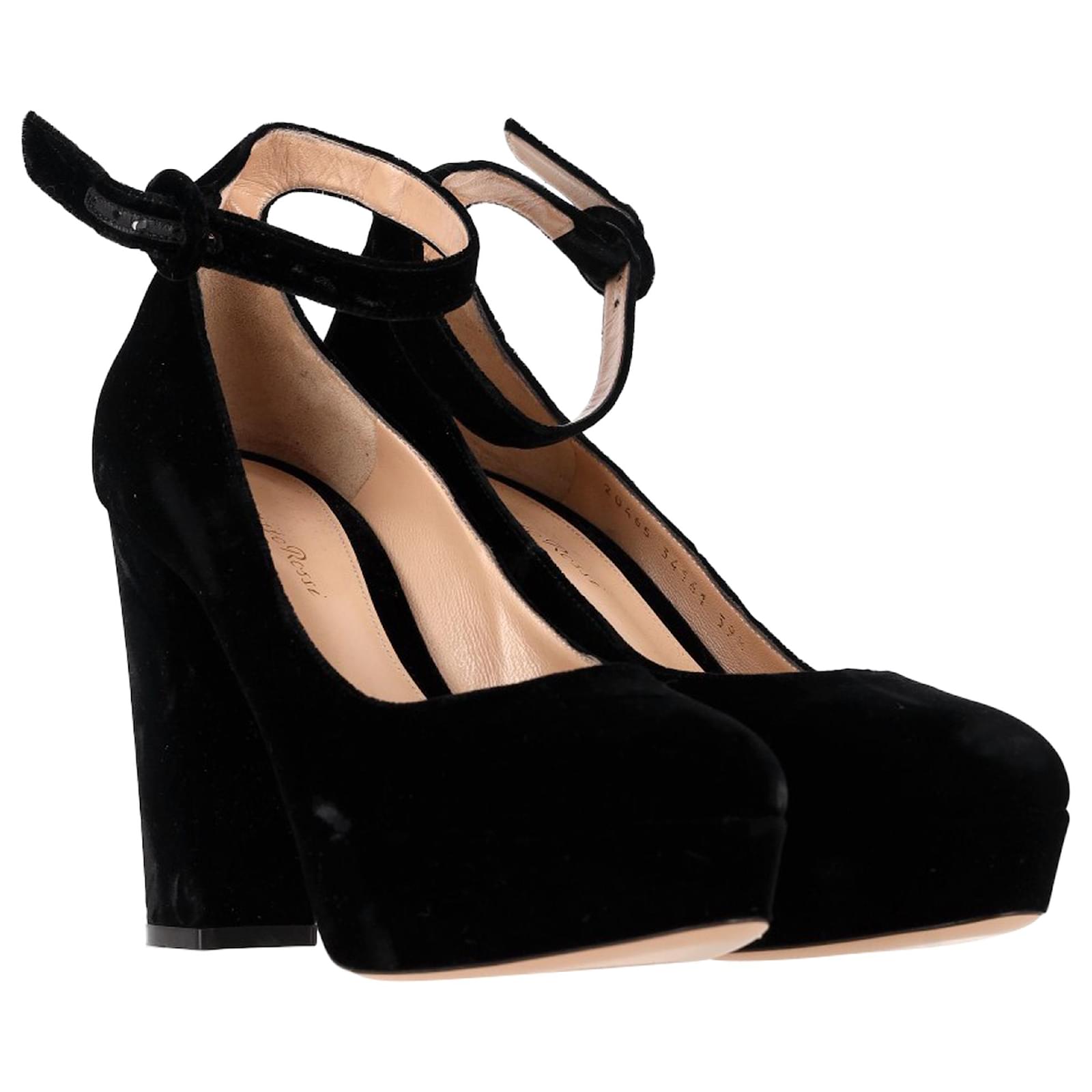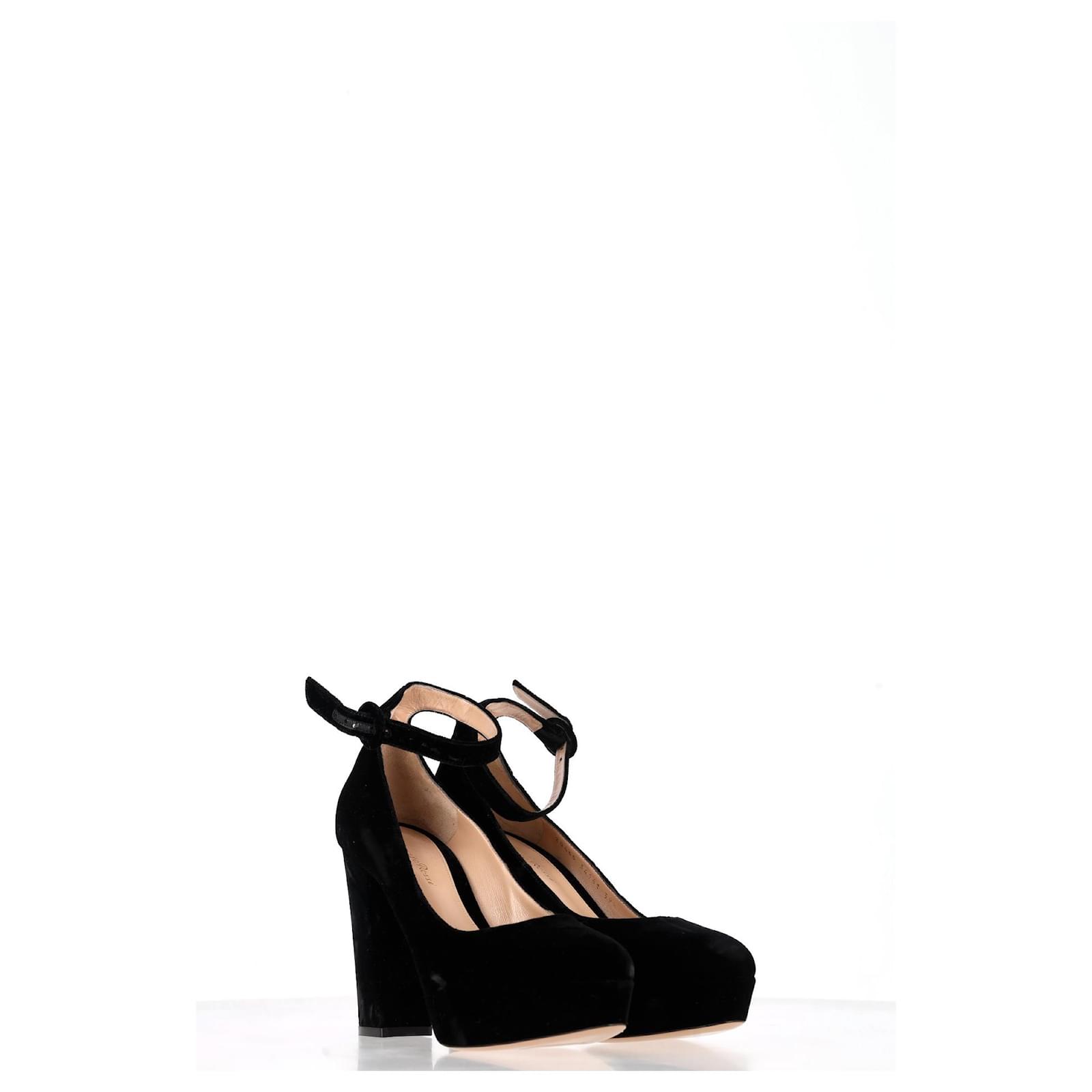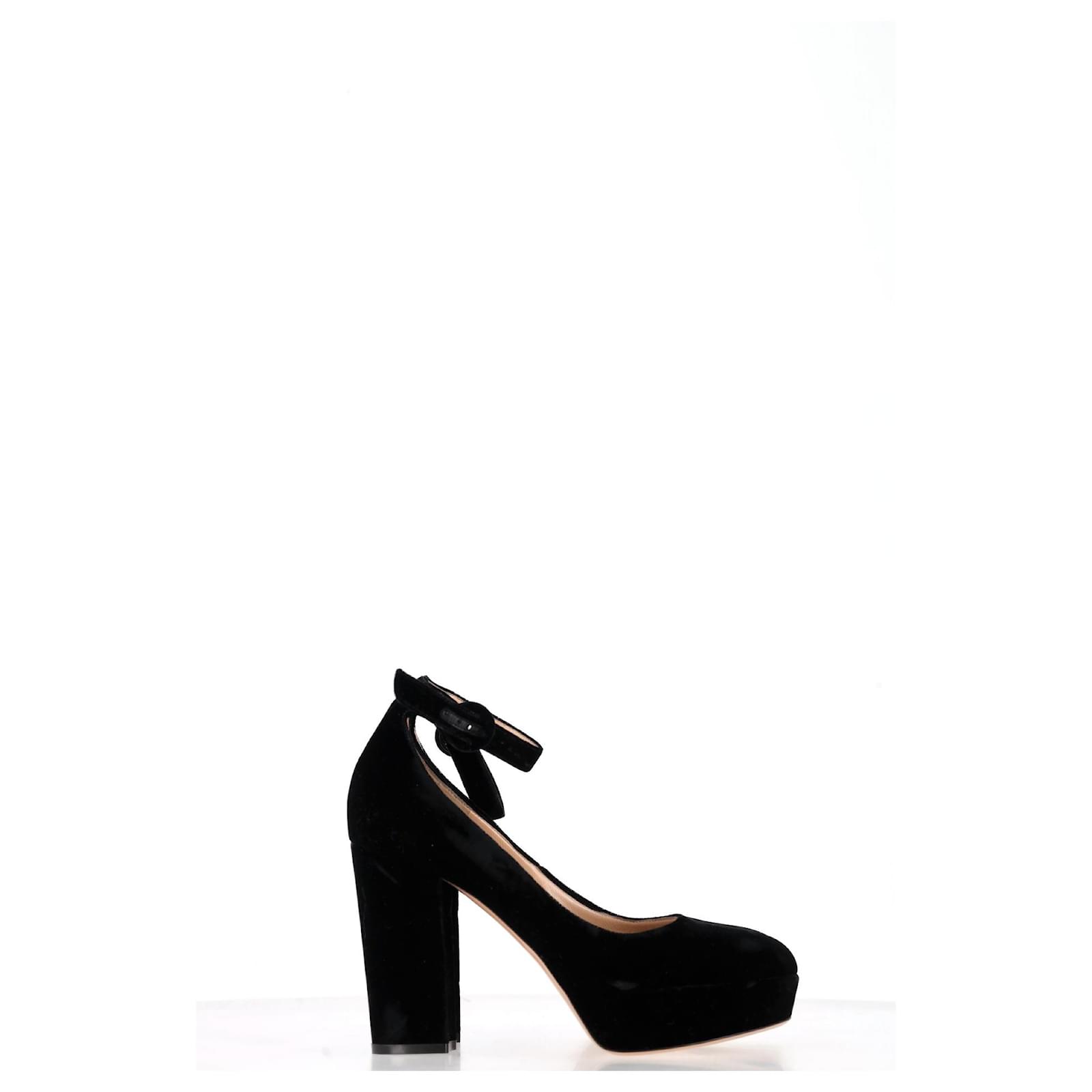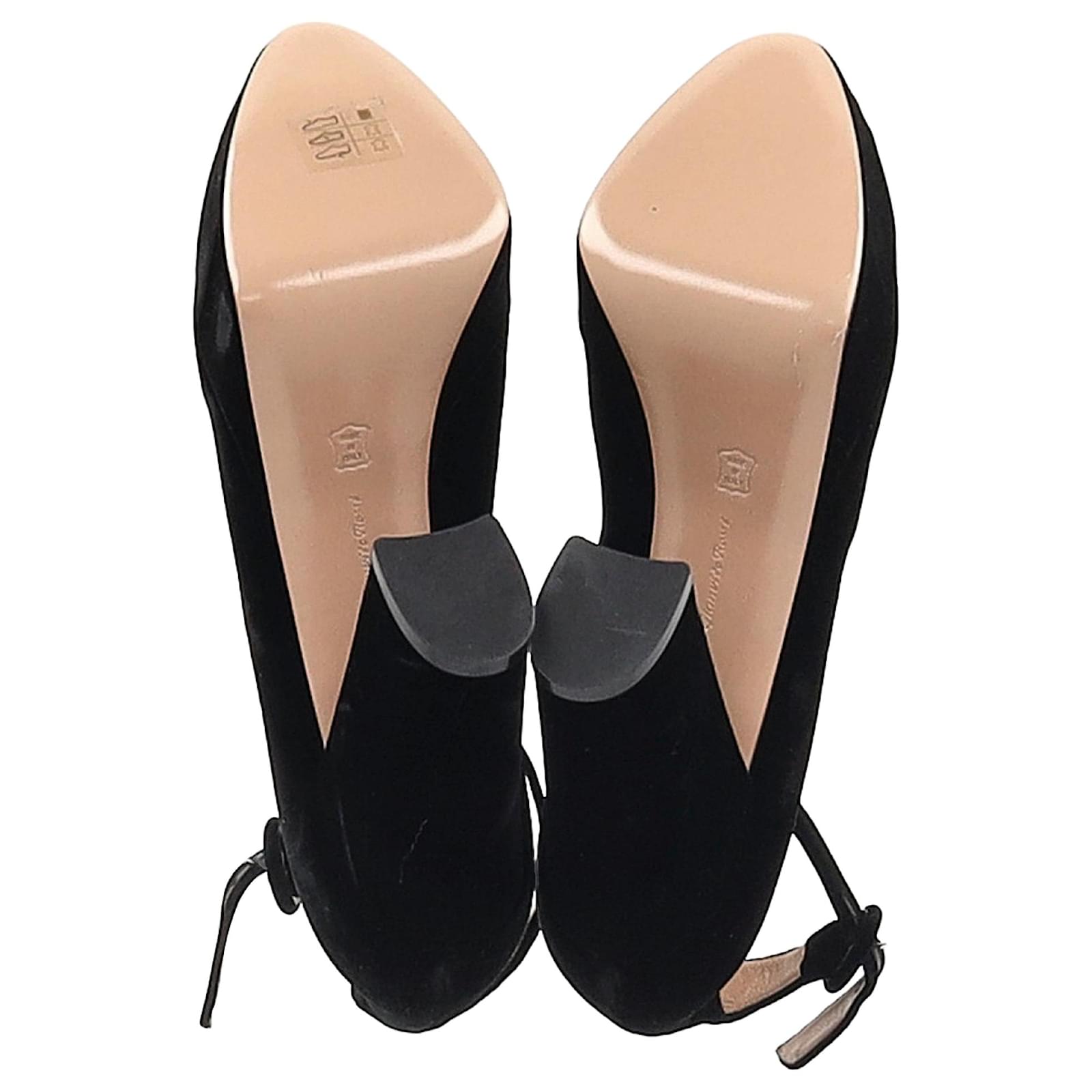 Timeless sophistication meets modern allure with the Gianvito Rossi Mary Jane Pumps in Black Suede. Crafted from sumptuous suede, these iconic heels feature a classic Mary Jane strap for a flattering fit, paired with a sleek stiletto heel that exudes refined femininity. The understated black hue makes them versatile enough to elevate any look — from tailored office wear to a night out. A signature style that speaks to effortless elegance and endless versatility.\n\nGianvito Rossi Mary Jane Pumps in Black Suede \nCondition: Excellent\nSigns of wear: No visible sign of wear. No Mark at insole., Unused or used once, but as good as new. Very light mark at soles.\nPackaging: None\nColor: Black \nMaterial: Suede | suede\nSize: EU | 39.5\nMeasurements: Heel height: 115; Insole length: 280\nSKU: NAPPUGBSH474408W \n Product Id: 474408 \n