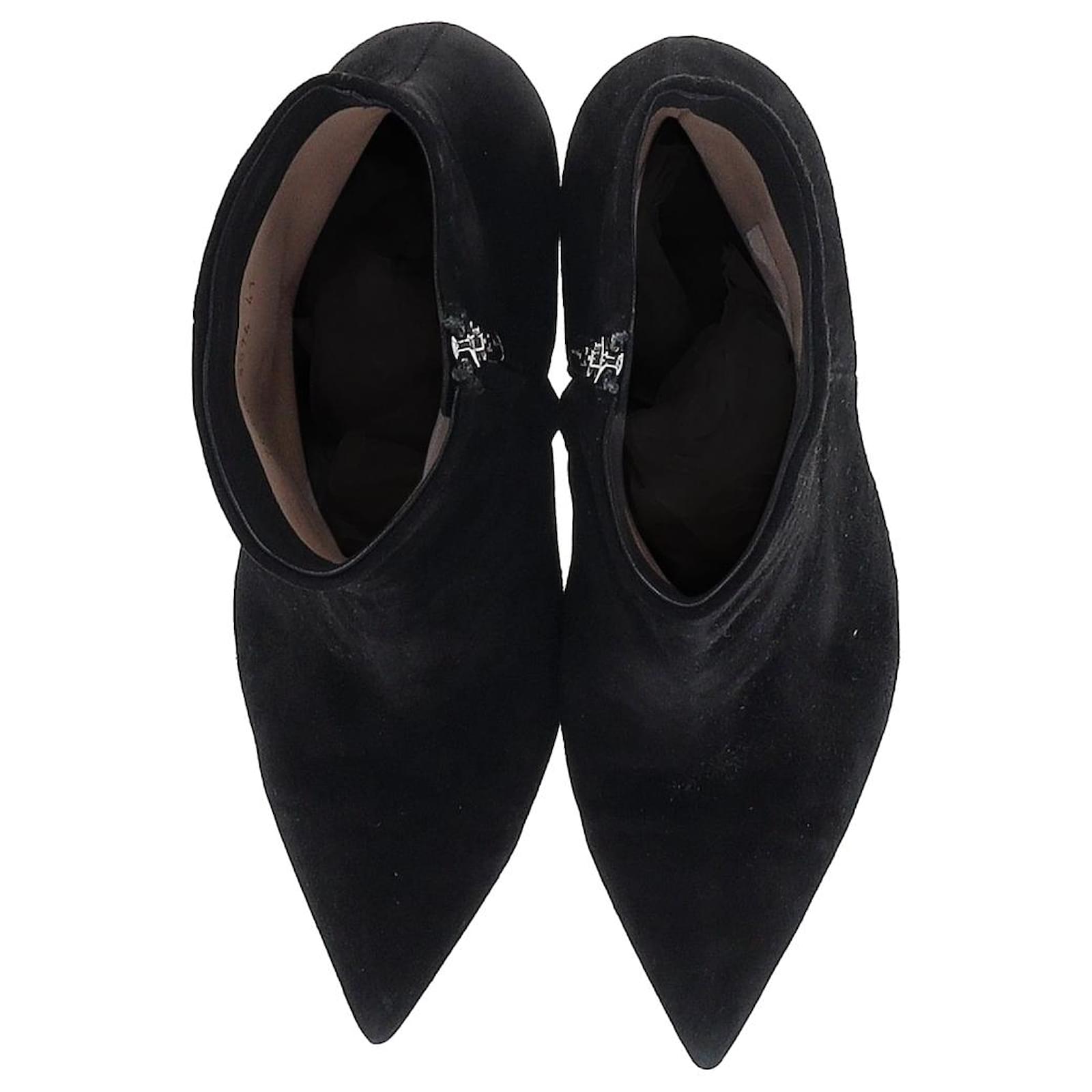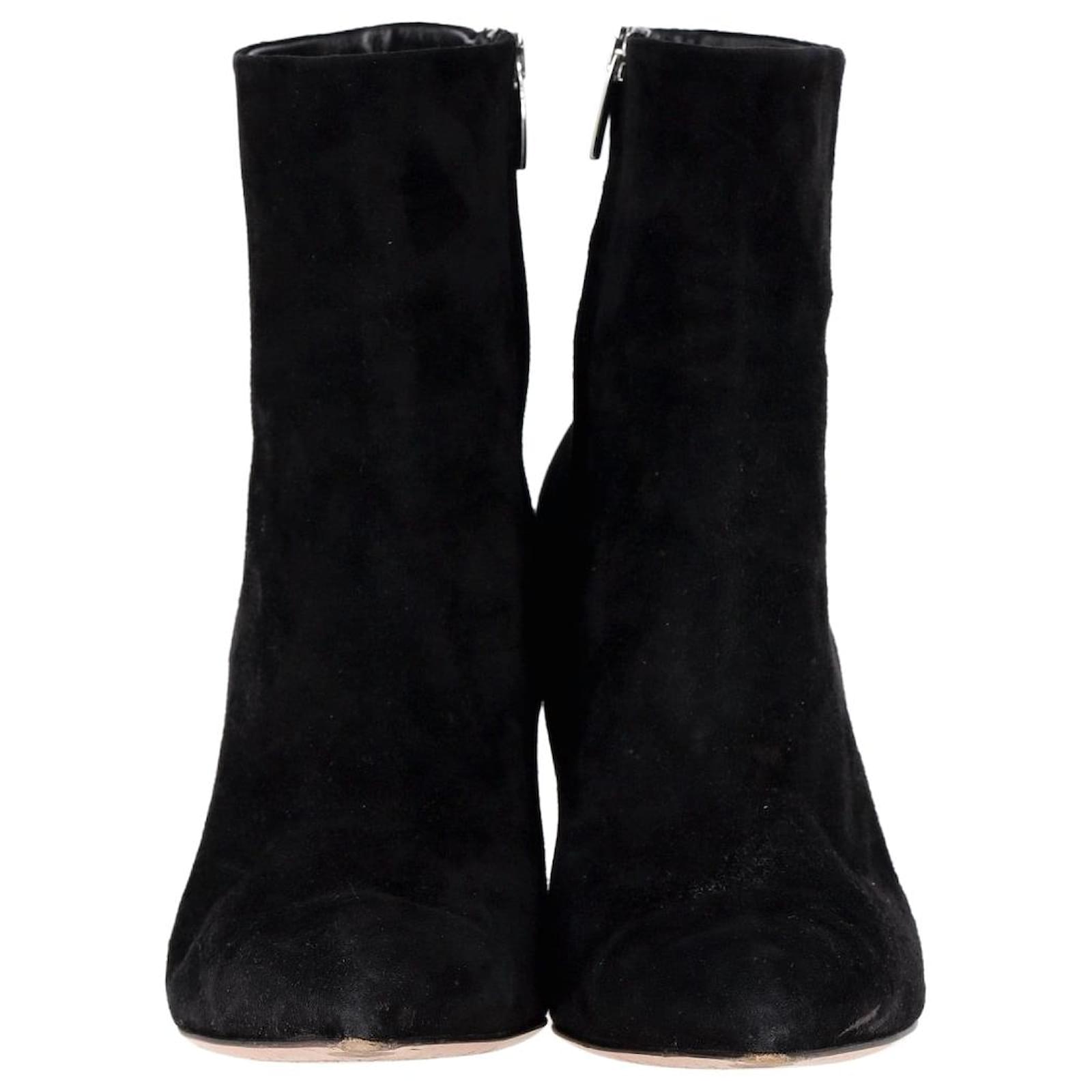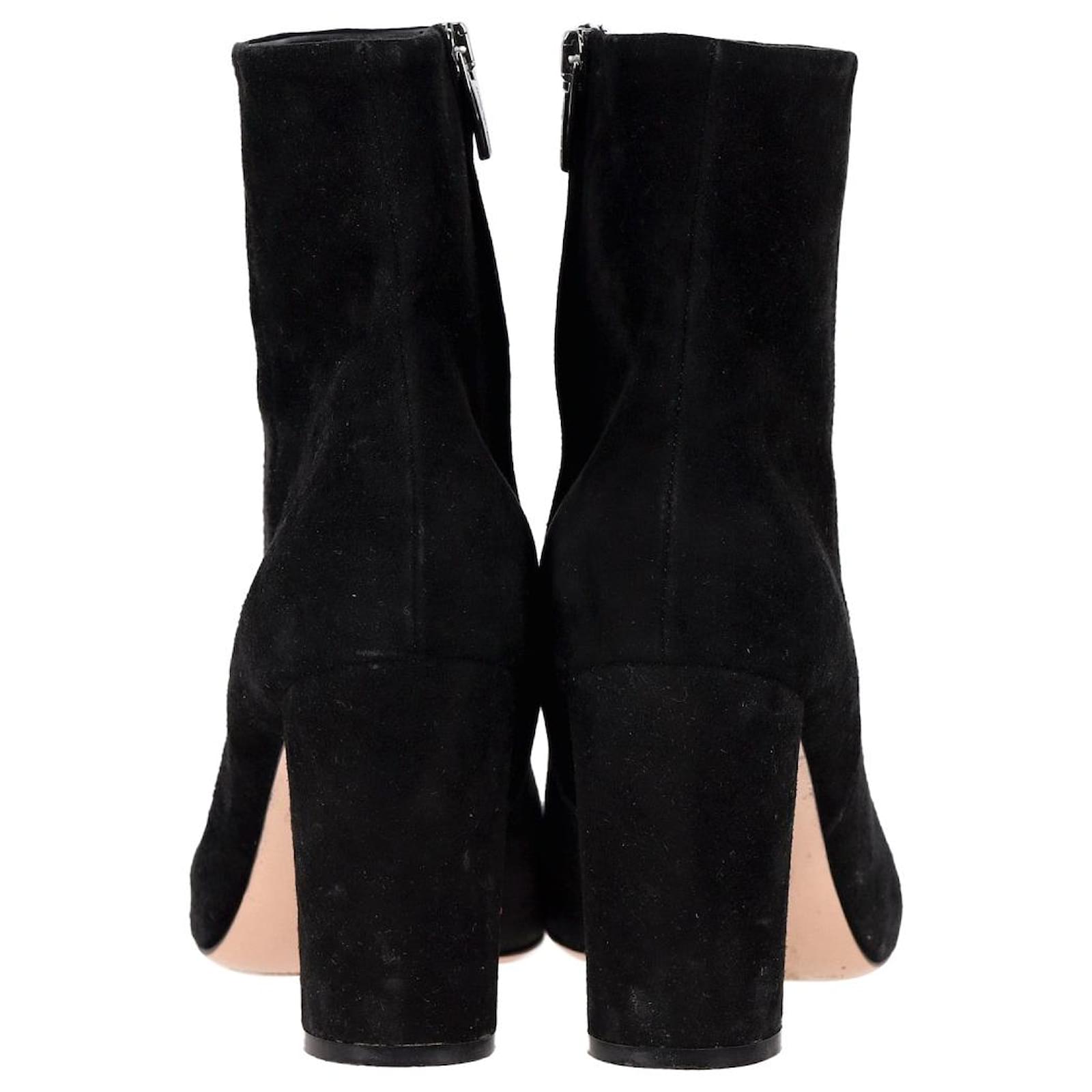Elevate your wardrobe with the Gianvito Rossi Pointed-Toe Ankle Boots. Crafted from smooth suede uppers in a classic black hue, these boots exude timeless charm. The pointed toes add an element of sophistication, while the high-block heels offer a comfortable height boost. With a convenient side zip, these boots offer both style and ease.\n\nGianvito Rossi Pointed-Toe Ankle Boots in Black Suede\nCondition: Very good\nsign of wear: Moderate wear on the soles, minor rubs on the suede, marks on the heels\nMaterial: Suede\ncolor: Black\nSize: it41 / US11 / Uk8\nSKU: 361762 \n Product ID: 361762 \n