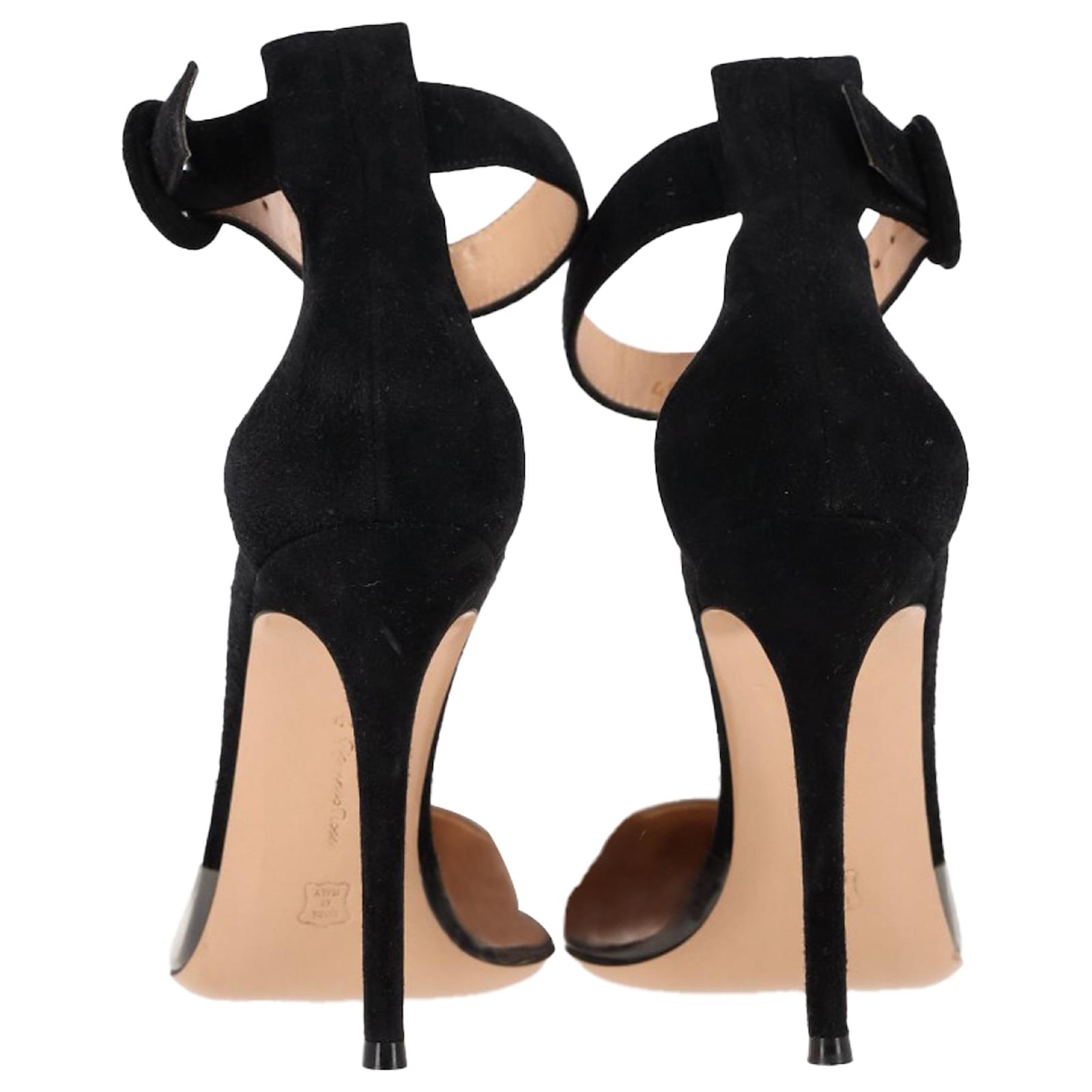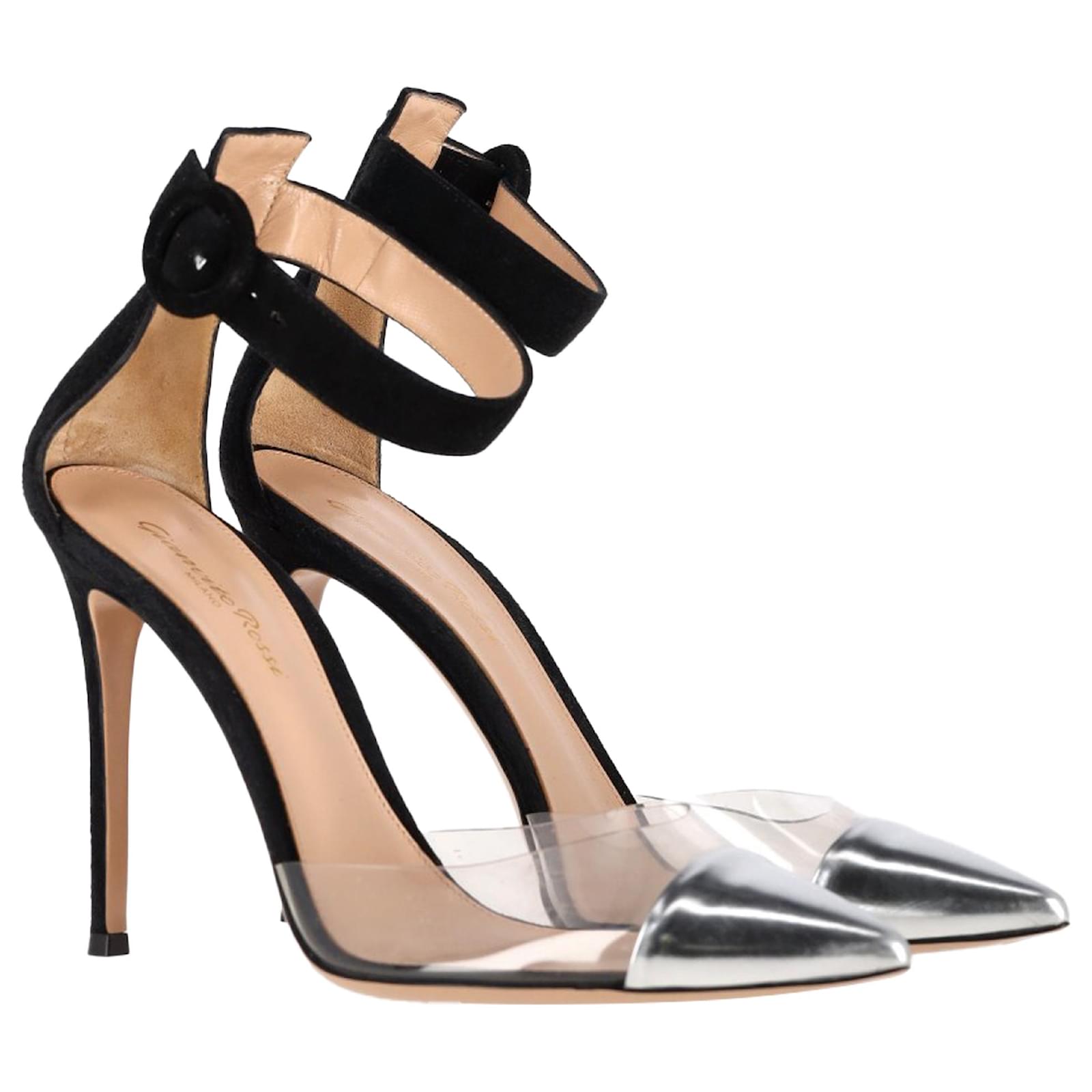 \nThese Gianvito Rossi sandals are artfully crafted in a combination of leather, suede and PVC that lend it a contemporary chic look. Featuring a pointed toe, this pair comes with an ankle strap and 10.5 cm heel. Look your fashionable best by styling them with a classy dress and statement accessory.\n\nGianvito Rossi PVC Ankle Strap Pumps in Black Suede\nCondition: Excellent\nSigns of wear: No visible sign of wear. No Mark at insole., Unused or used once, but as good as new. Very light mark at soles.\nPackaging: Dust bag\nColor: black\nMaterial: Suede | suede\nSize: EU | 39\nMeasurements: Heel height: 110; Insole length: 260\nSKU: NAPPUGBSH480444W \n Product Id: 480444 \n