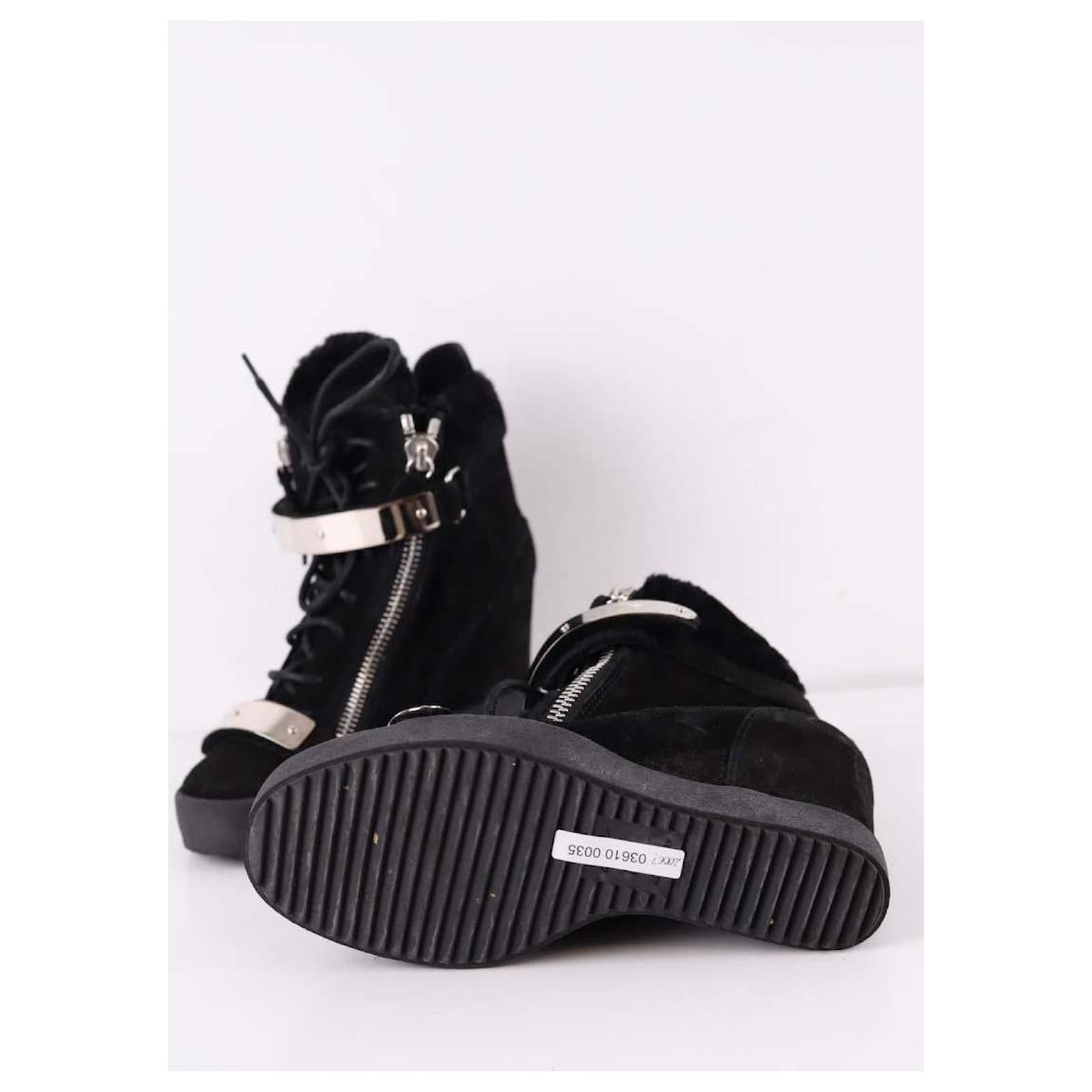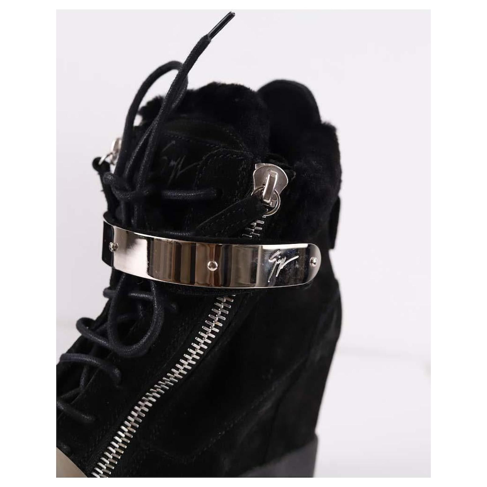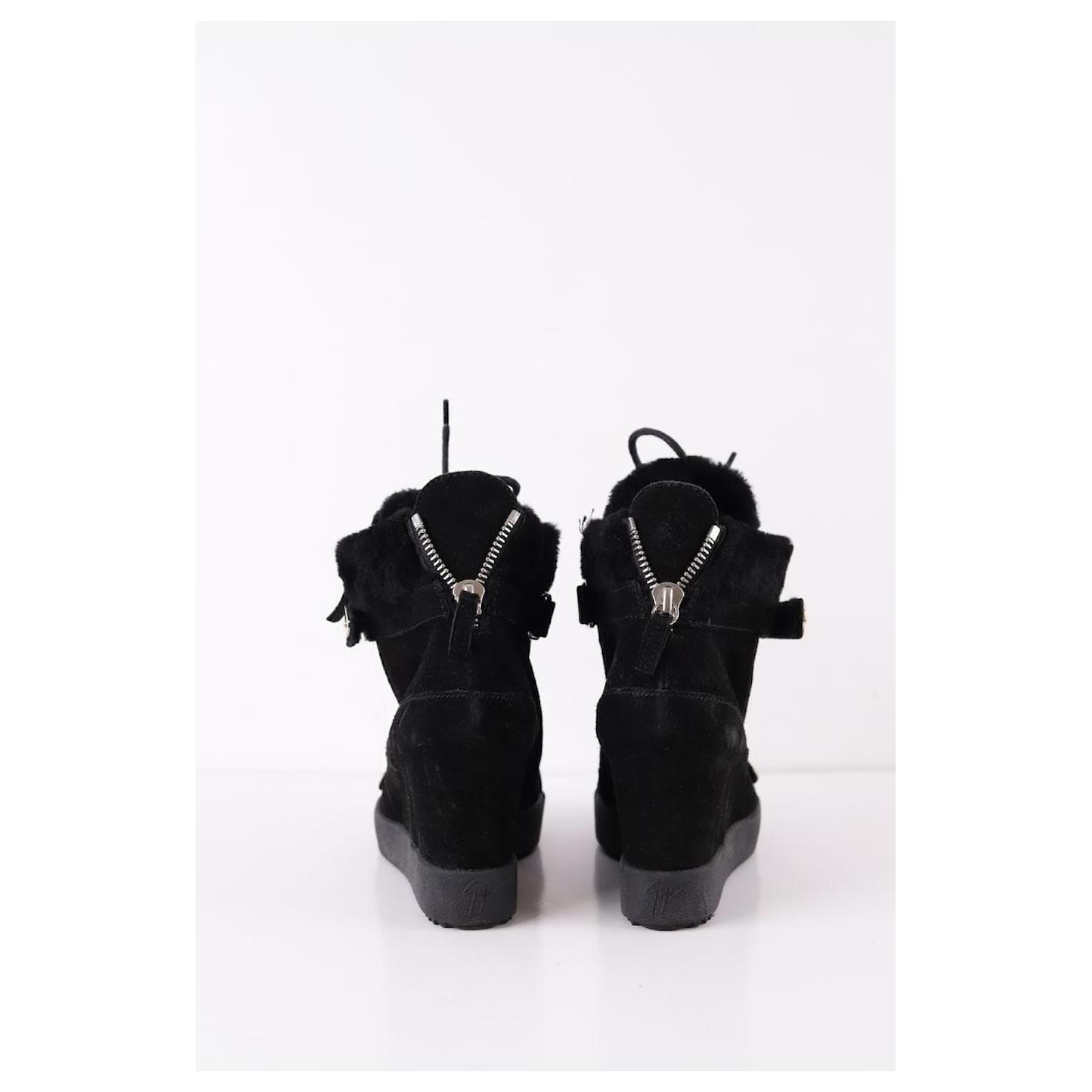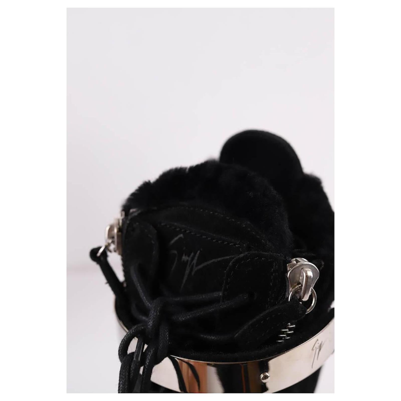 Second-hand Giuseppe Zanotti black boots. Main material suede. Size 38. Label size: 38 1/2. Platform: 20cm. With dust bag. Women’s collection. Very good condition. Reference: 036100035.