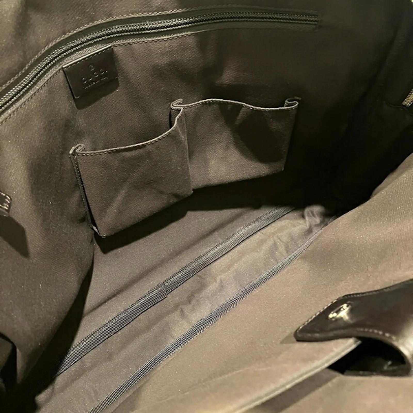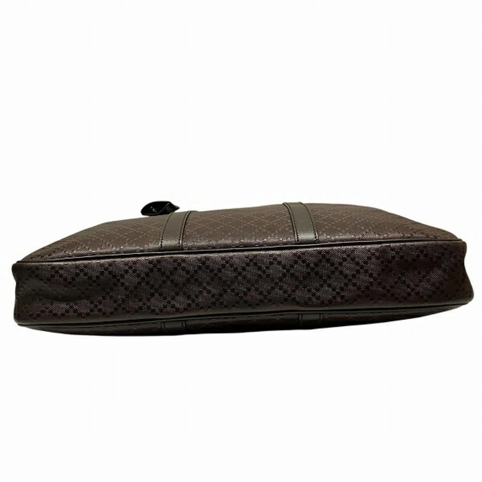 This Gucci Diamante briefcase is crafted from dark brown leather, offering a sophisticated look for professional settings. With dimensions of 33cm x 40cm x 5cm, it is designed to accommodate your essentials while maintaining a sleek profile. \n\nThe briefcase is in good used condition, classified as Rank AB, showing slight traces of usage, including minor scratches and dirt. It features a misshapen exterior and moderate wear on accessories. Included with the briefcase are a clochette, key, padlock, and shoulder strap. \n\nPotential buyers are encouraged to review the images for a detailed view of the item’s condition and included accessories.