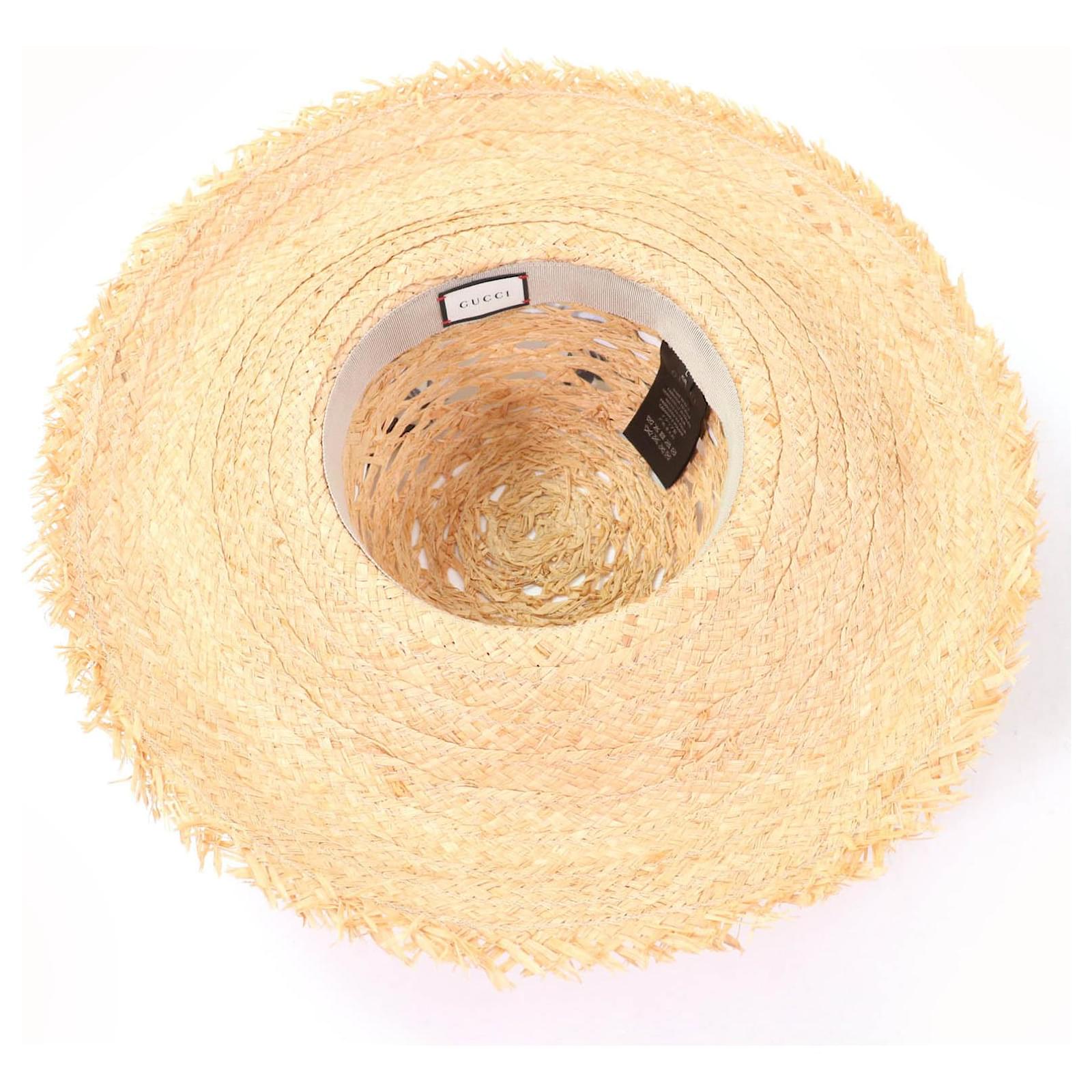 – General information -\nBrand : GucciItem name : Gucci Floral logo print ribbon Raffia wide brim hatModel number : 408789 – Design -Type : HatsMaterial : Natural MaterialColor : BeigeGender : Female- Size -Size : Size Chart : LMax inner circumference : 54Material : 13734100% / 1371350% / 1398550% / 13884100%Color : Natural- Inventory -Serial Number : SKU : 120250011906400A0025851132- Included Items -Accessories : Authenticity Card,Box*Before purchasing, please refer to the images of the accessories included with the item.- Condition -Condition : Pristine ConditionRank : Used A Unused. Storefront display.Condition Notice : Before purchasing, please refer to the images for the exact condition of the item. Measurments: width: 1 mm length: 1 mm height: 1 mm strap length: 1 mm handle drop: 1 mm \n Product Id: 526708 \n