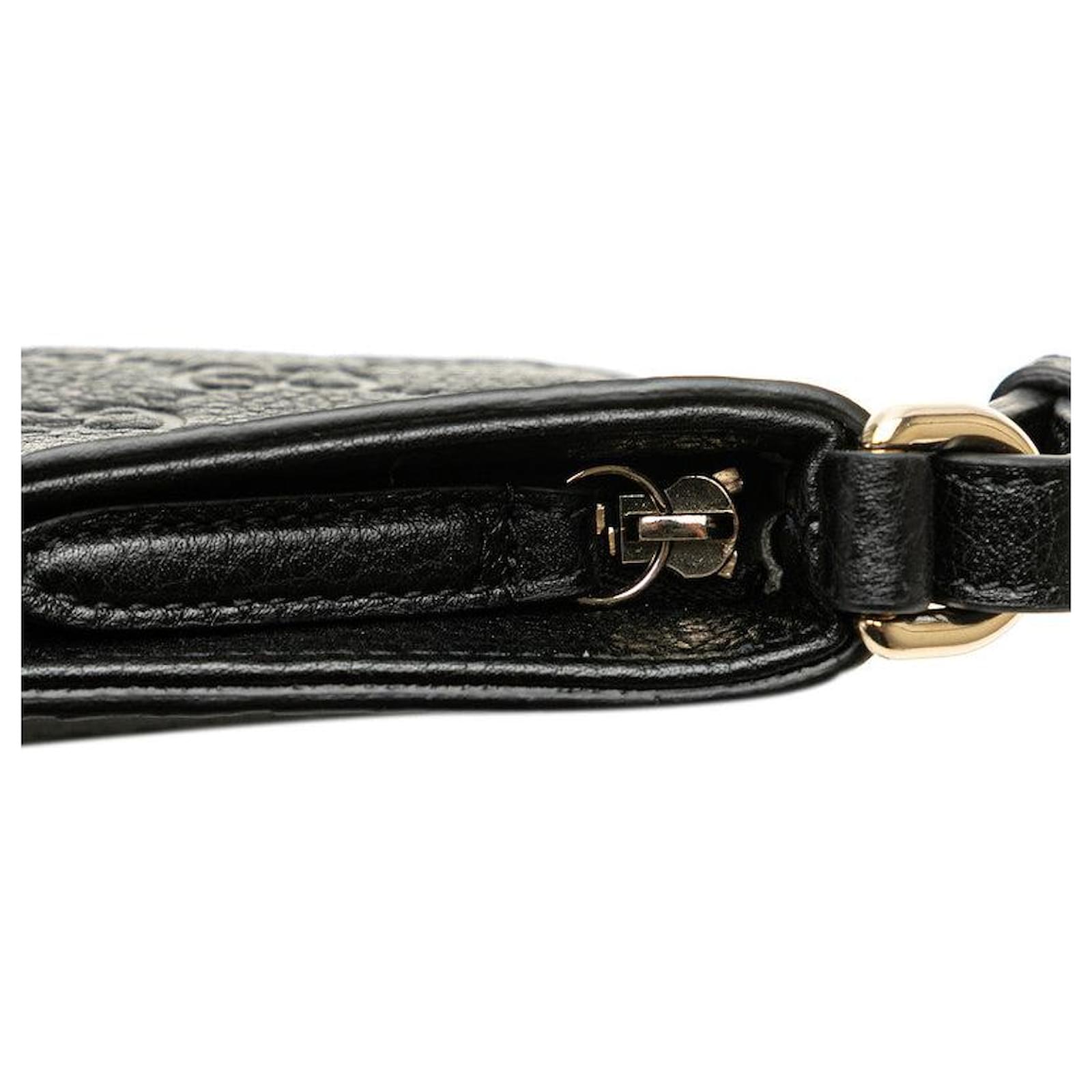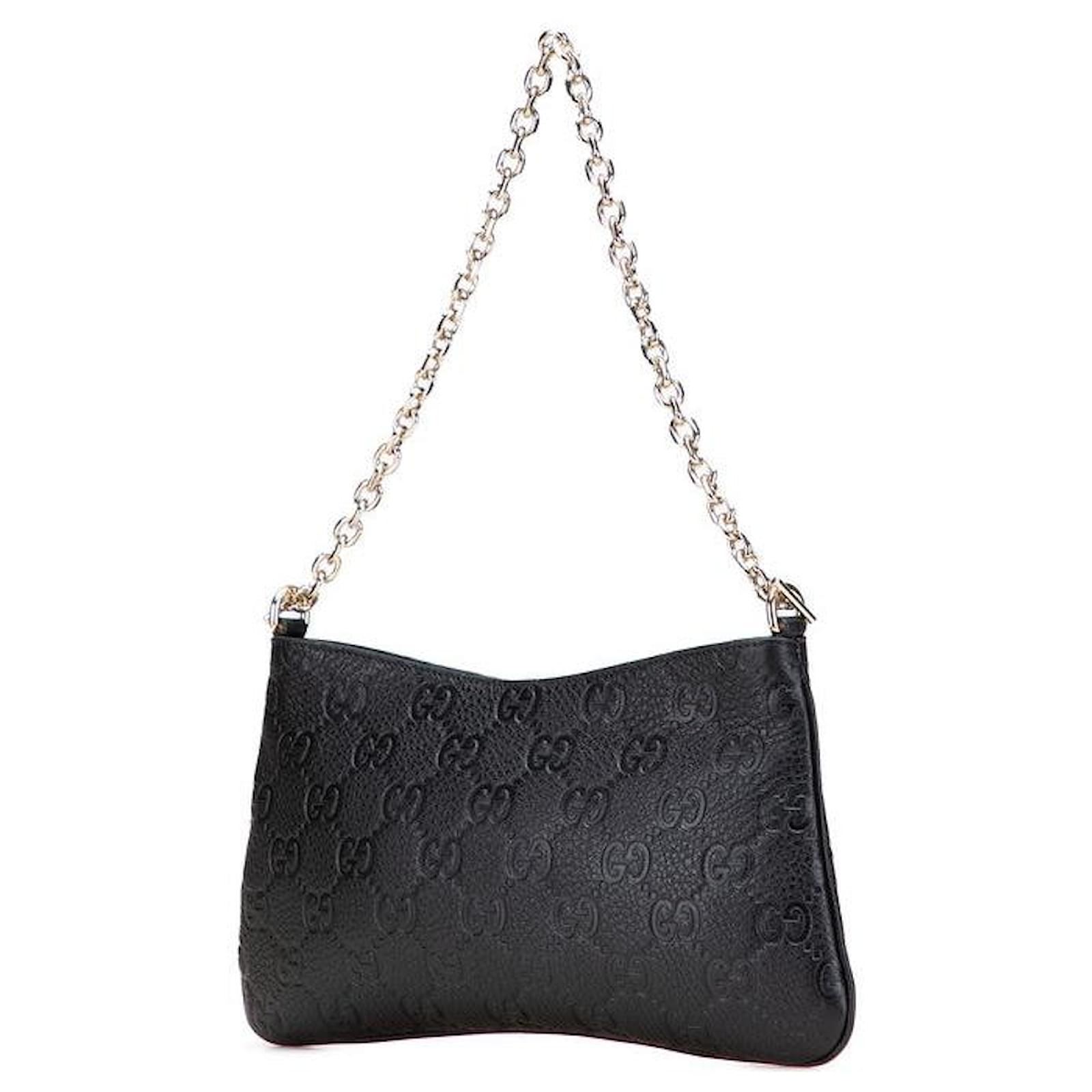 – General information -\nBrand : GucciItem name : Gucci GG Emblem 2way bagModel number : 815277 – Design -Type : Shoulder BagMaterial : LeatherColor : BlackGender : Female- Size -Size : Length : 29Depth : 2Height : 14.5Handle Drop : 23Shoulder strap : 50Item Material : LeatherItem Series : MediumItem Color : BlackClosure Type : ZipperInterior : Open pocket x 1- Inventory -Serial Number : SKU : 120210056160000A0025843712- Included Items -Accessories : Dust Bag,Shoulder Strap*Before purchasing, please refer to the images of the accessories included with the item.- Condition -Condition : Great ConditionRank : Used A Good used condition with slight scratches and stains.Condition Notice : Before purchasing, please refer to the images for the exact condition of the item. Measurments: width: 20 mm length: 290 mm height: 145 mm strap length: 500 mm handle drop: 230 mm \n Product Id: 525558 \n
