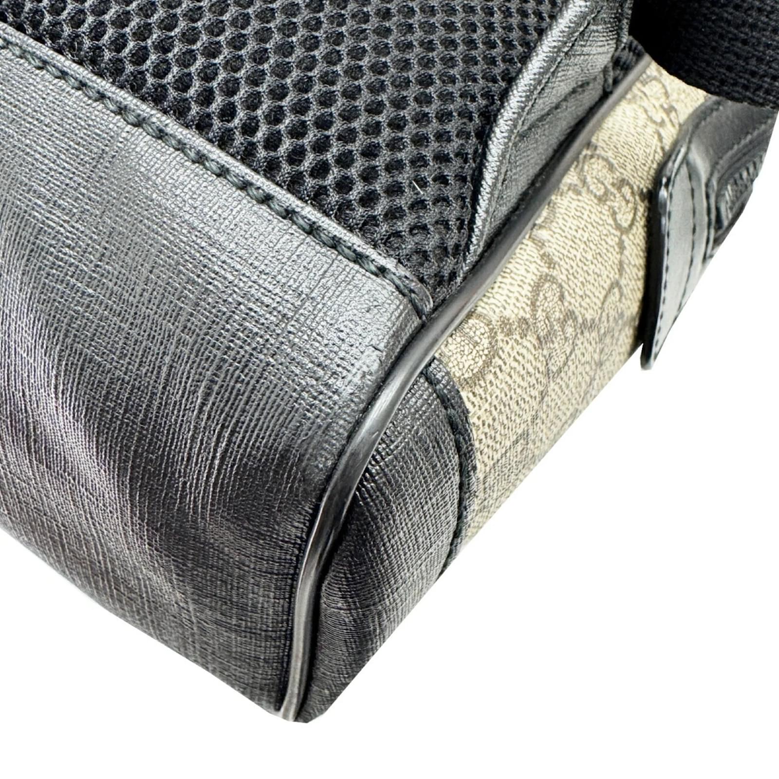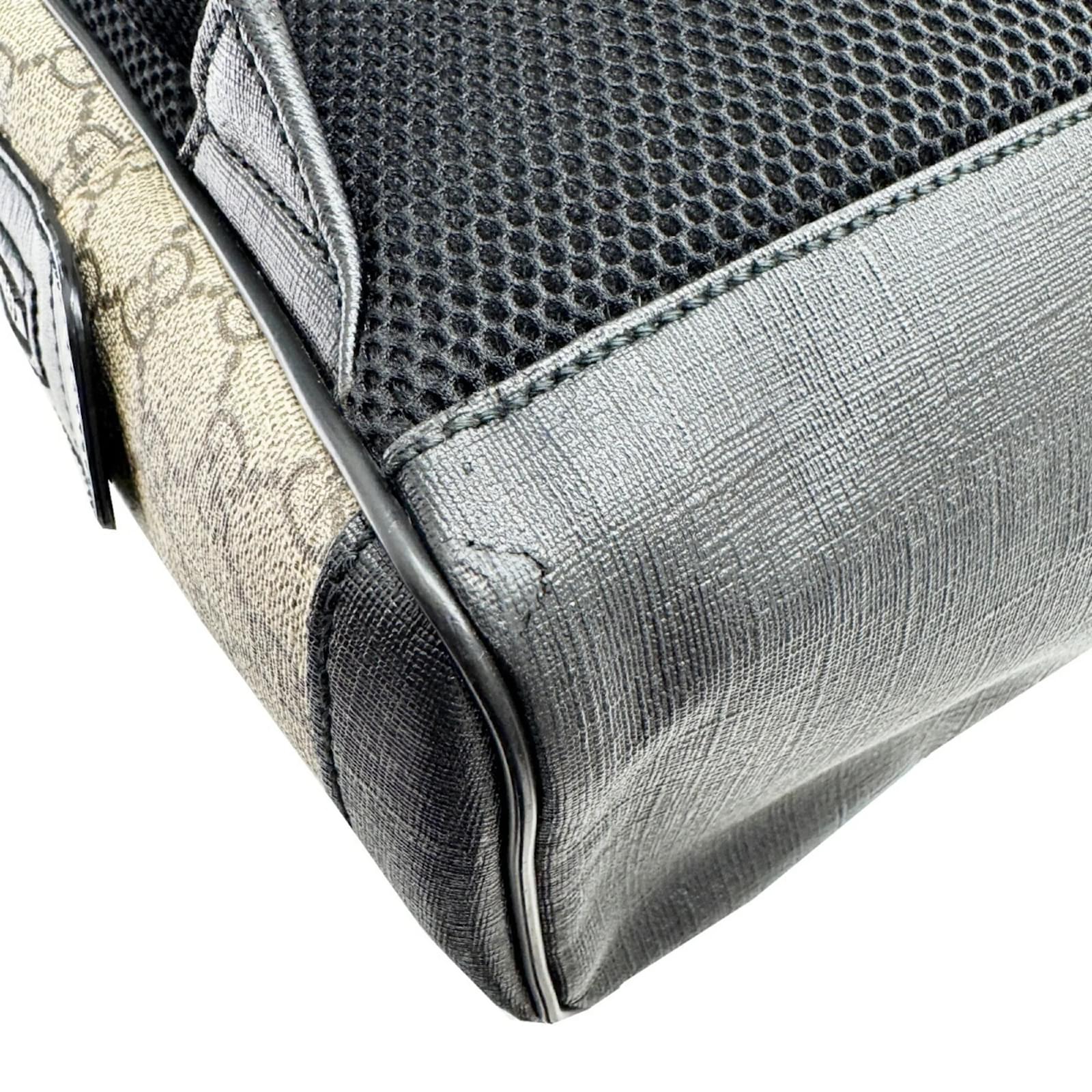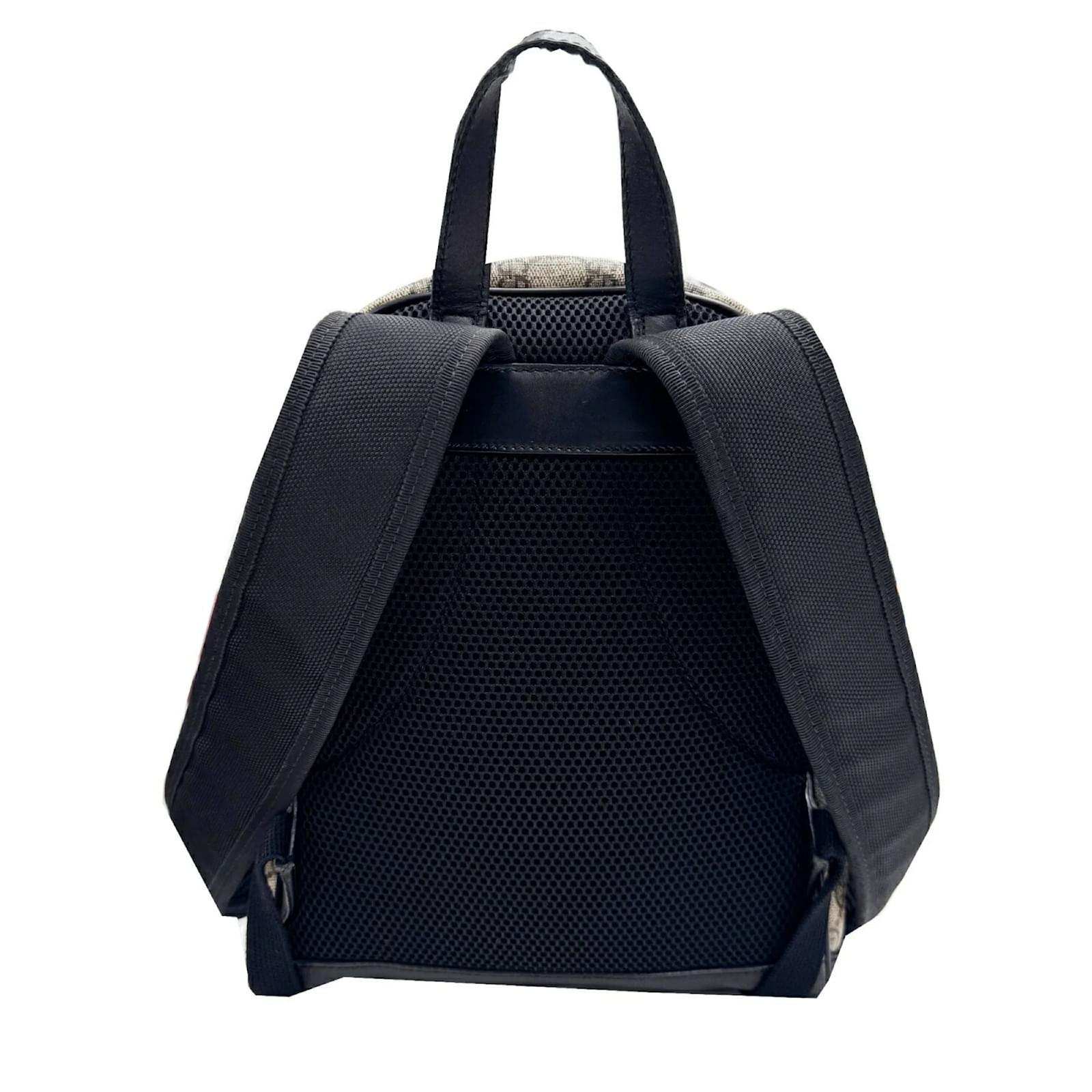 This Gucci backpack features a design crafted from GG Supreme fabric and leather, presented in a beige and black color scheme. With dimensions of 29cm x 22cm x 10cm, it is suitable for both men and women. The item is classified as used but remains in good condition, showing slight traces of usage, including minor scratches and corner peelings. Potential buyers are encouraged to review the provided images for a detailed view of the item’s condition. No additional accessories are included with this backpack.