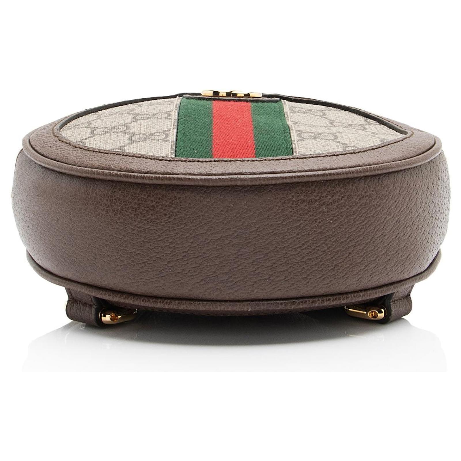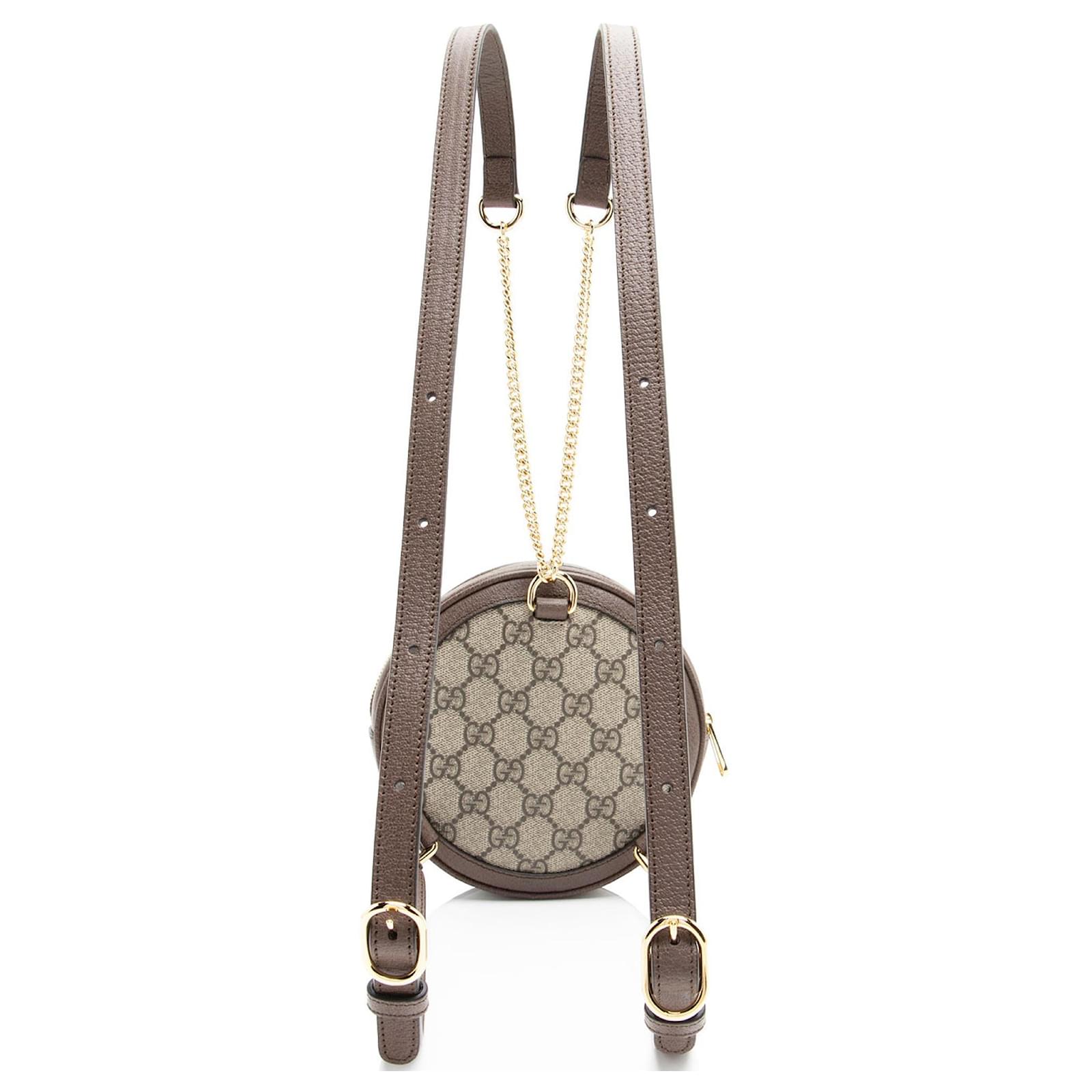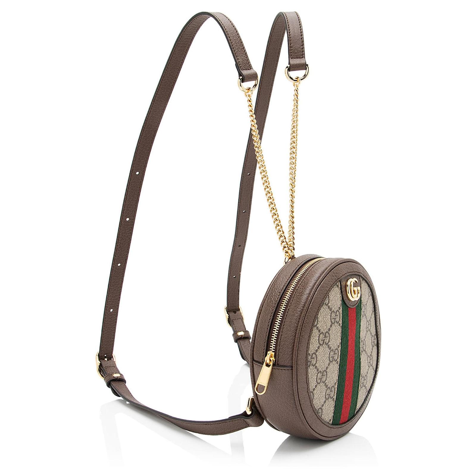 The Italian fashion house of Gucci continues to reinterpret its rich heritage under current Creative Director Alessandro Michele (2015). Maintaining a balance between historical reference and contemporary eclectic flare, the brand’s signature “double g” remains iconic. Gucci has been recognized as a worldwide leader in the luxury goods market for 90 years.Condition Notes: Minor warping throughout shoulder straps. Light surface scratches to hardware. Minor marks throughout interior.Width (at widest): 6\”Height: 6\”Depth: 1.75\”Shoulder Strap Drop: 17\”, AdjustableType of Material: Coated Canvas, Leather, NylonColor: Beige, BrownLining: Beige MicrofiberPockets: Two Credit Card SlotsHardware: Gold ToneClosure: ZipperOrigin: ItalyIncludes: Dust Bag Measurments: width: 152 mm height: 152 mm \n Product Id: 510416 \n