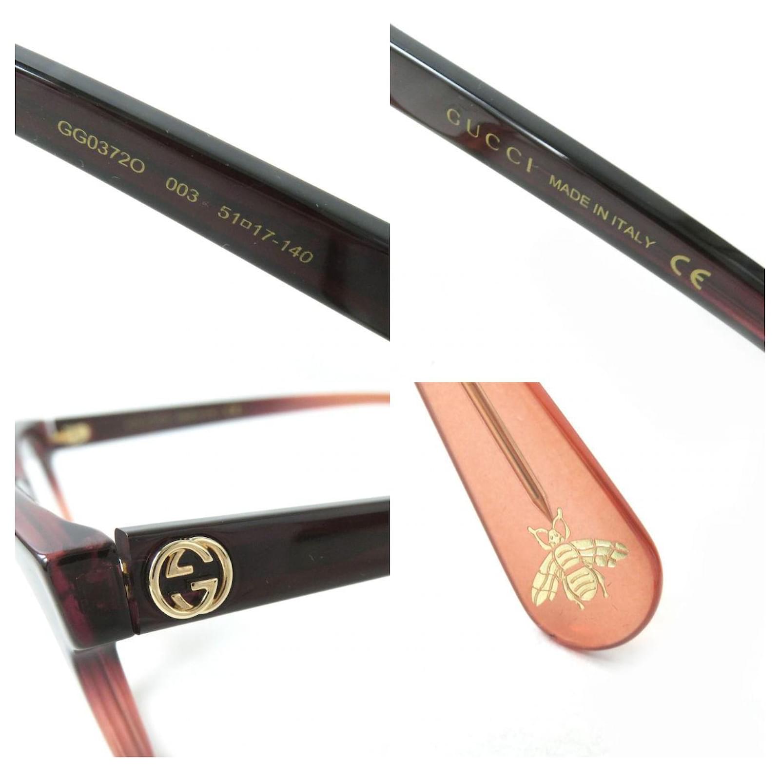 – General information – Brand : Gucci Item name : Gucci GG03720 Interlocking G Bee Eyeglasses Model number : GG03720 – Design – Type : Glasses Material : null Color : Brown Gender : Female – Size – Size : Temple length : 13.00 Lens height : 3.60 Lens width : 4.80 Bridge width : 17.00 Color : Bordeaux gradation – Inventory – Serial Number : null SKU : 120250000303600A0025468948 – Included Items – Accessories : null *Before purchasing, please refer to the images of the accessories included with the item. – Condition – Condition : Pristine Condition Rank : Used A Unused. Storefront display. Condition Notice : Before purchasing, please refer to the images for the exact condition of the item.