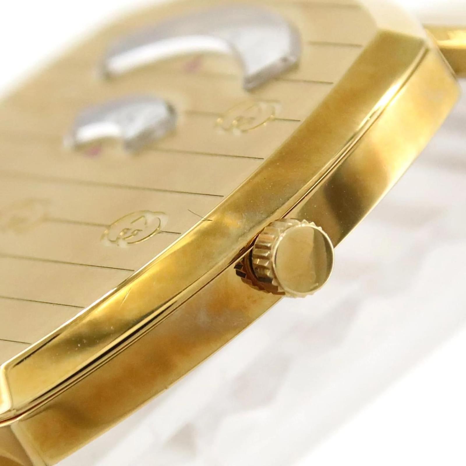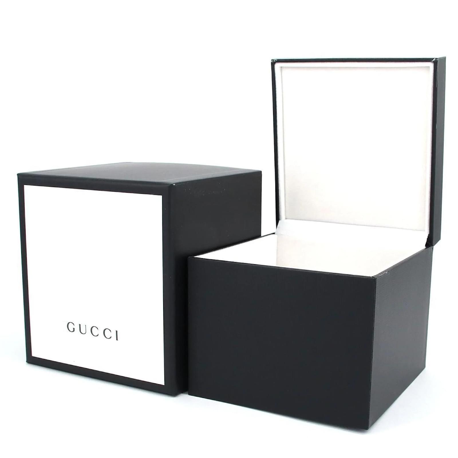 The Gucci Grip GP 157.3 YA157409 is a stylish wristwatch featuring a white dial and a gold-plated case and band. It operates on a reliable quartz movement and is designed to fit a wrist size of 19cm (7.48 inches) with a case diameter of 38mm (1.5 inches). This used watch is in very good condition, showing insignificant signs of wear, including minor scratches on the bezel and case. The battery has been replaced, ensuring it is ready for use. Included with the watch are both the inner and outer boxes. For a detailed view of its condition and included accessories, please refer to the provided images.